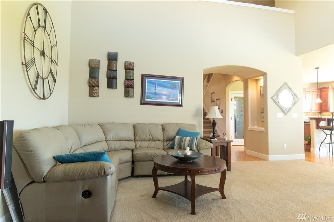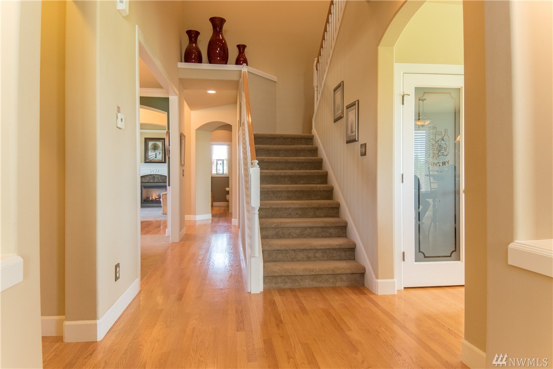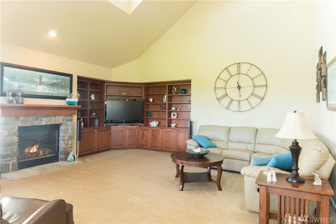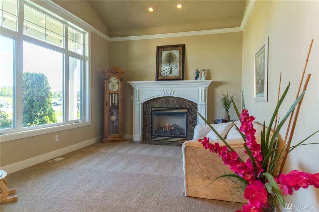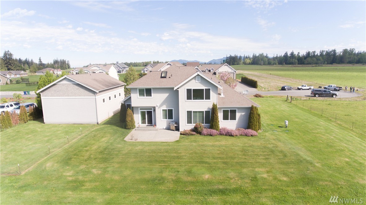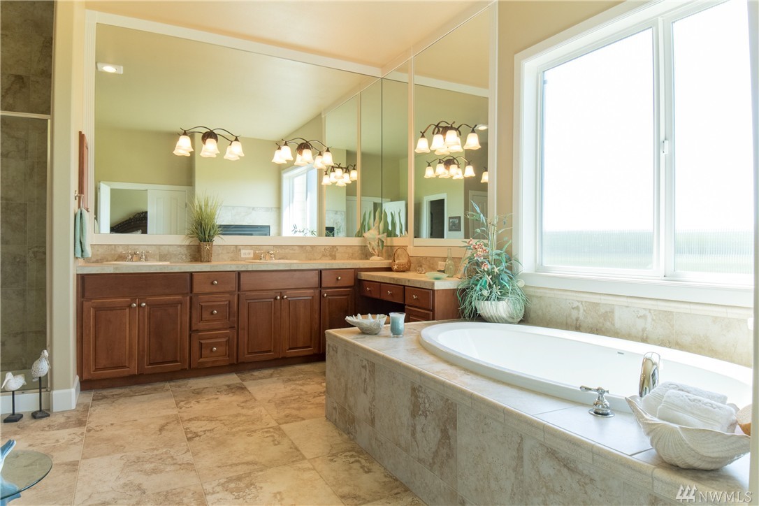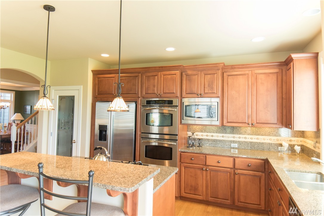 Bayview Meadows spacious 4 bedroom home with luxurious Master suite on the main floor, formal dining, living & great room; Multiple fireplaces. Numerous high end upgrades throughout. Gourmet kitchen offering slab granite w/ full backsplash, all stainless appliances, double ovens, bar & eating space. Elevated ceilings, hardwood floors, a large bonus room. Quiet & peaceful location at the end of a cul-de-sac on 1.25 acres, Over 3,340 Sq ft. w/ a 3 car garage & detached heated RV shop with loft.
