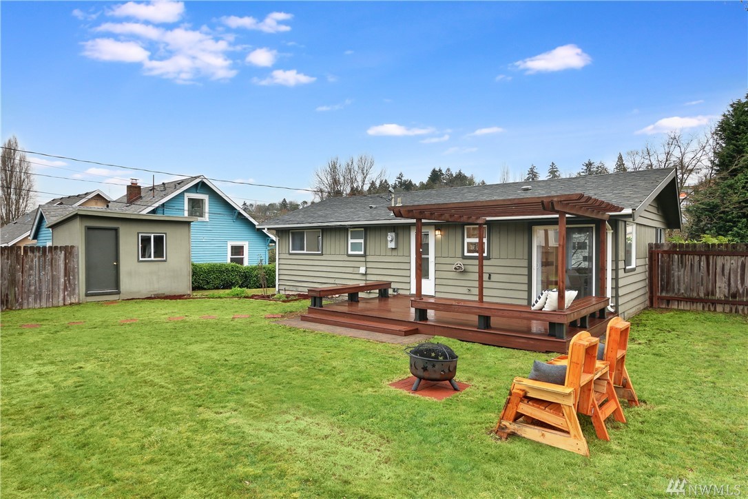 Pandemic-proof rambler on 9,600sf lot offers oodles of outdoor living space. And, yes, you can add a DADU (or split the lot). Convert the 12x8 shed to a work studio (it's served by light/electricity). Newer roof, laundry machines and Trex decking. Swing around back for off-alley parking and level entry through the back door. Efficient mid-century floor plan makes great use of the 960sf footprint. Huge living room w/large double-pane windows. Dutiful kitchen w/slab counters & pantry. Three bedrooms served by an updated bathroom. Steps to Cottage Grove Park, Playground & P-Patch. One block to Delridge Way (read: espresso, Westwood Vill & the 'back way' out of W. Seattle). Rapid Ride coming soon. Possibly sub-dividable lot. Inspections avail.