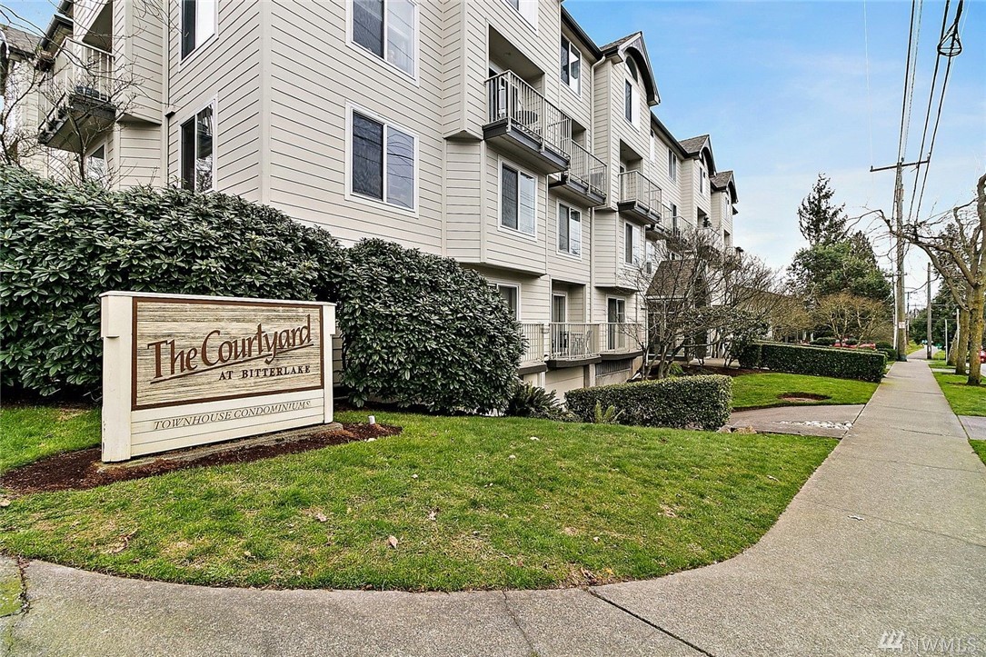 Want a fantastic condo in a great building? Welcome to the Courtyard at Bitter Lake. This well run and professionally managed association is pet friendly with NO RENTAL CAP. Just move right into this light and bright 1 bedroom/1 bath condo with an outdoor patio, in unit laundry and secure parking. Close to shops, restaurants, the Interurban Trail, Bitter Lake Park, bus line and upcoming light rail. Simply a great place to call home. Ready and waiting for one lucky buyer.