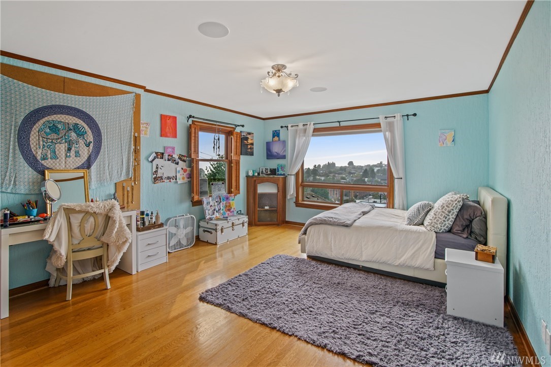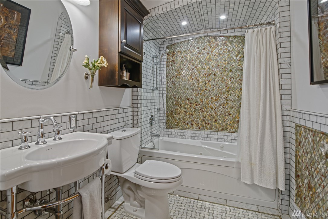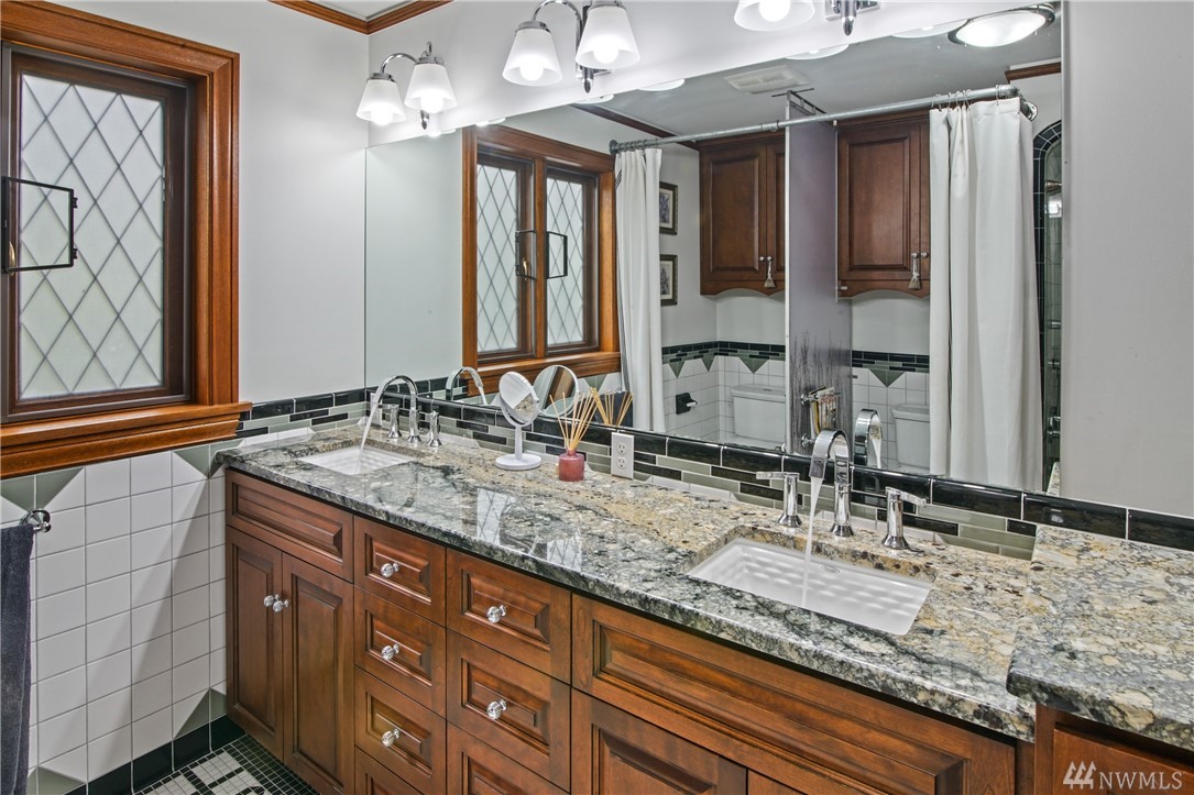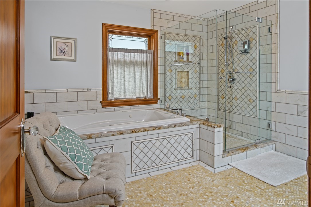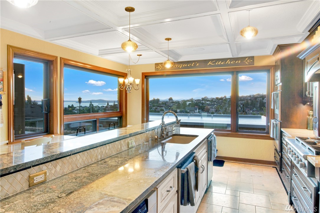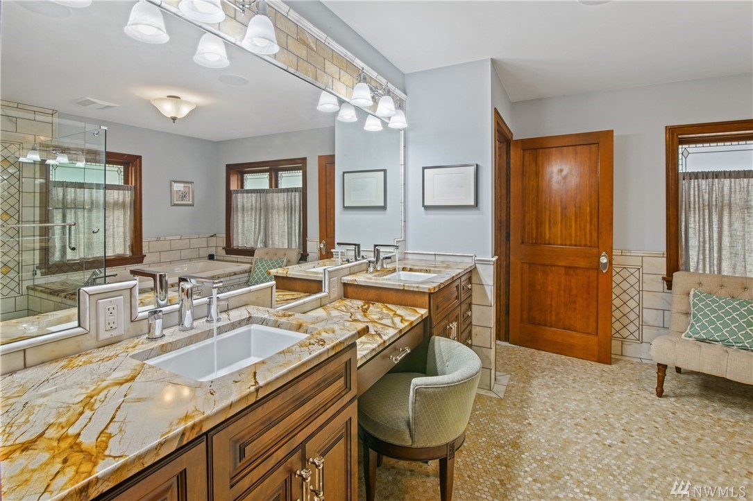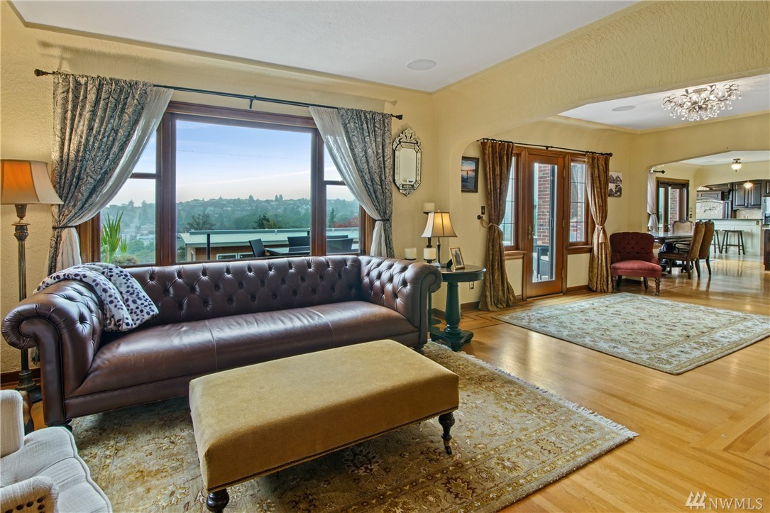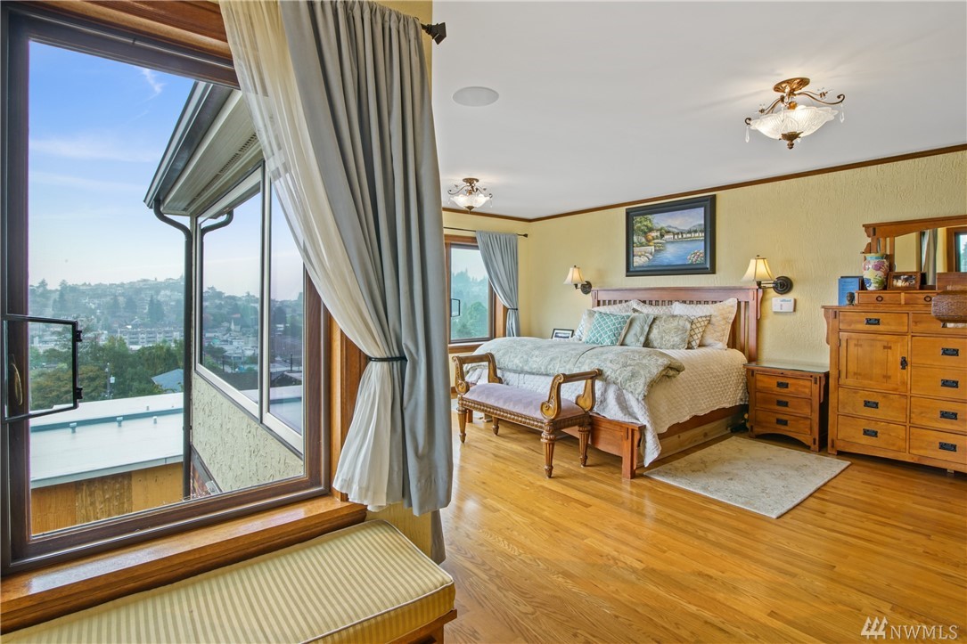 Charming, elegant 6bd home w/ 180* views. Extensively remodeled while keeping original design/detail, incl original Batchelder tile, new windows w/original design. Kitchen w/ coffered ceiling, lg island, granite, tile, db oven, desk & view! Bdrm & full bath on main; 5 more bdrms upstairs. Master features spa-like bath, sitting area, WIC, gas fp, views of the Sound. Extras incl tech nook, steam rm, wine cellar, covered patio, huge deck. Walk to Magnolia Vlg. Close to bus, downtown, waterfront pk!