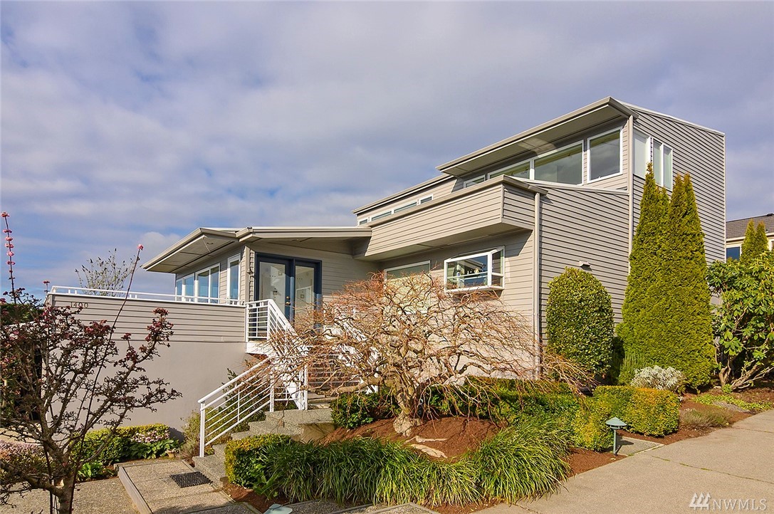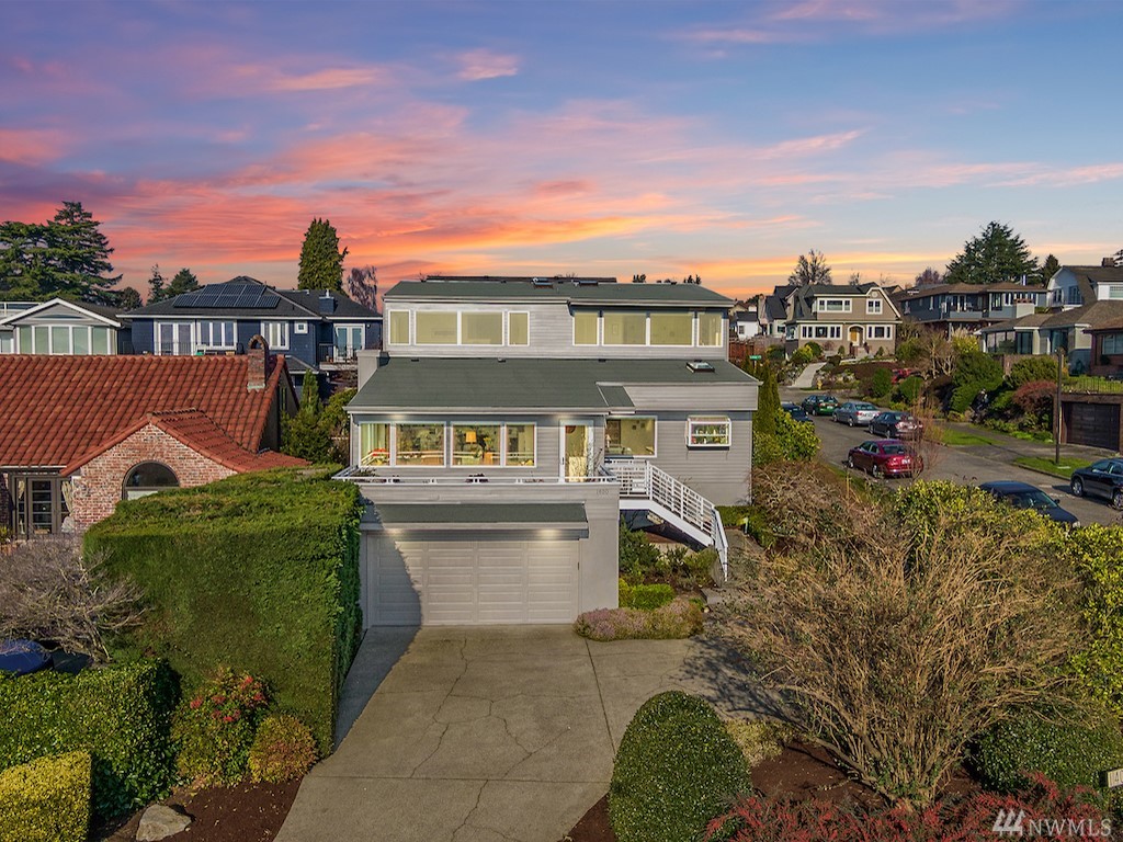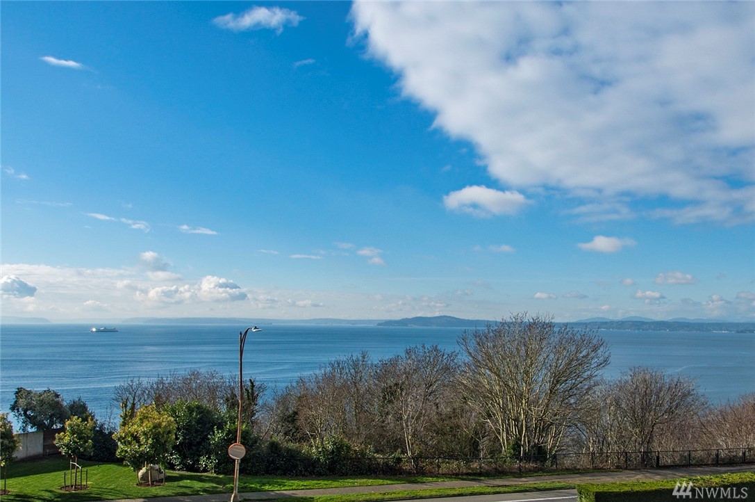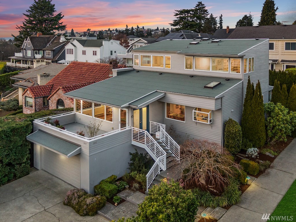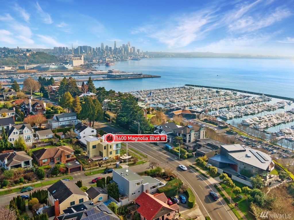 Designed to maximize stunning mountain, sound & island views, this elegant & inviting home provides panoramic views from Mt. Rainier to Bainbridge & beyond! Open-concept kitchen, dining & living rooms w/ hardwood floors, built-in bookcases & ample natural light throughout. Tranquil mstr w/ en suite bath. Fully finished downstairs w/ bedroom, bath & wet-bar offers great flex-space or M-I-L/ADU potential. View deck off living rm + secluded courtyard in back. Property is set on a highly-desirable street w/ underground utilities & maintains air rights to the west ensuring protected views. Professionally landscaped corner lot w/ off-st parking + 2-car attached garage. Steps to bus line, parks, Magnolia Village & Expedia; minutes to SLU/Downtown.