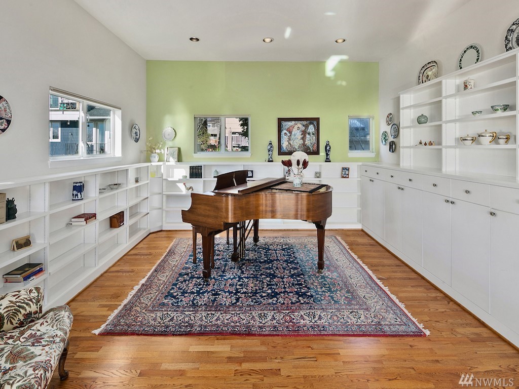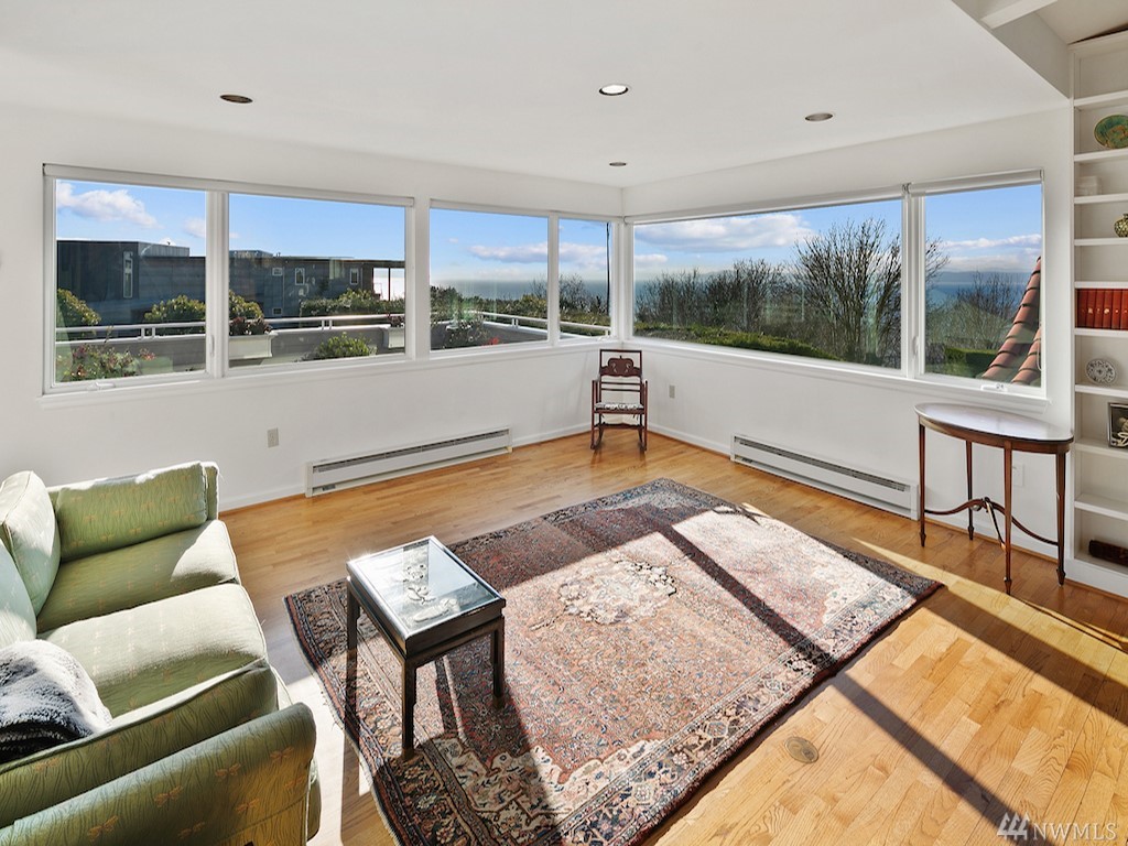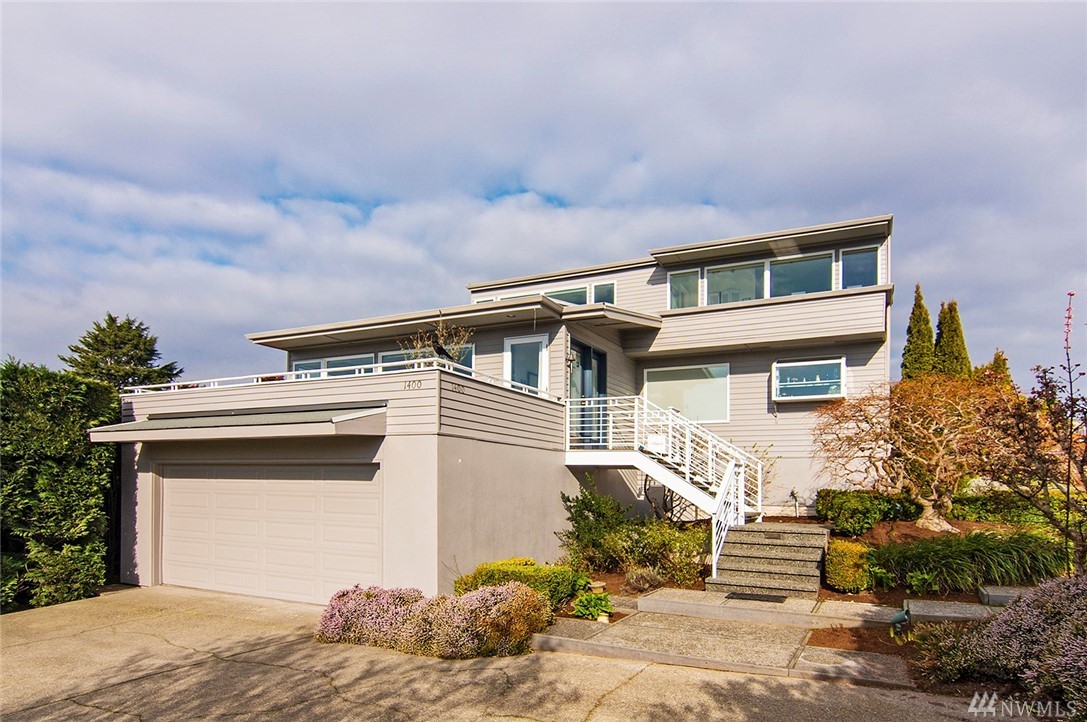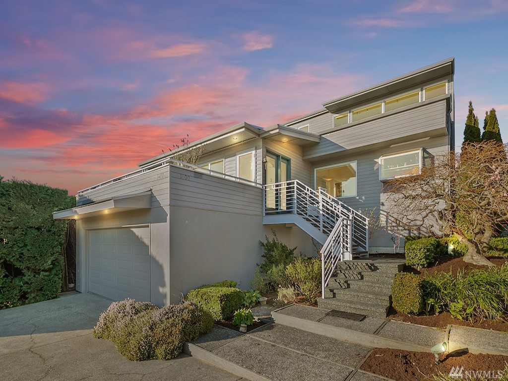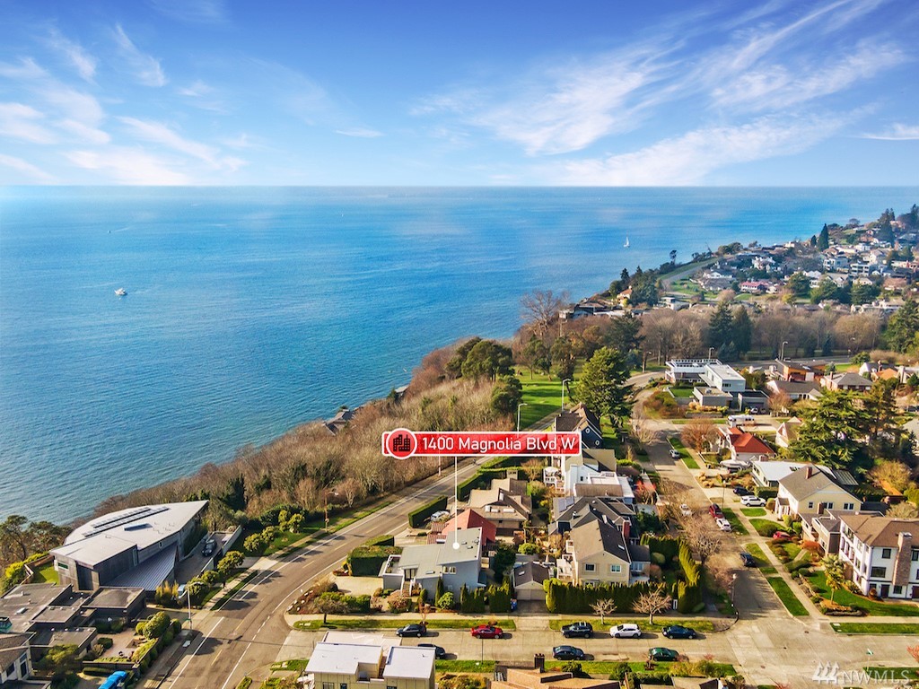 Designed to maximize stunning mountain, sound & island views, this elegant & inviting home provides panoramic views from Mt. Rainier to Bainbridge & beyond! Open-concept kitchen, dining & living rooms w/ hardwood floors, built-in bookcases & ample natural light throughout. Tranquil mstr w/ en suite bath. Fully finished downstairs w/ bedroom, bath & wet-bar offers great flex-space or M-I-L/ADU potential. View deck off living rm + secluded courtyard in back. Property is set on a highly-desirable street w/ underground utilities & maintains air rights to the west ensuring protected views. Professionally landscaped corner lot w/ off-st parking + 2-car attached garage. Steps to bus line, parks, Magnolia Village & Expedia; minutes to SLU/Downtown.