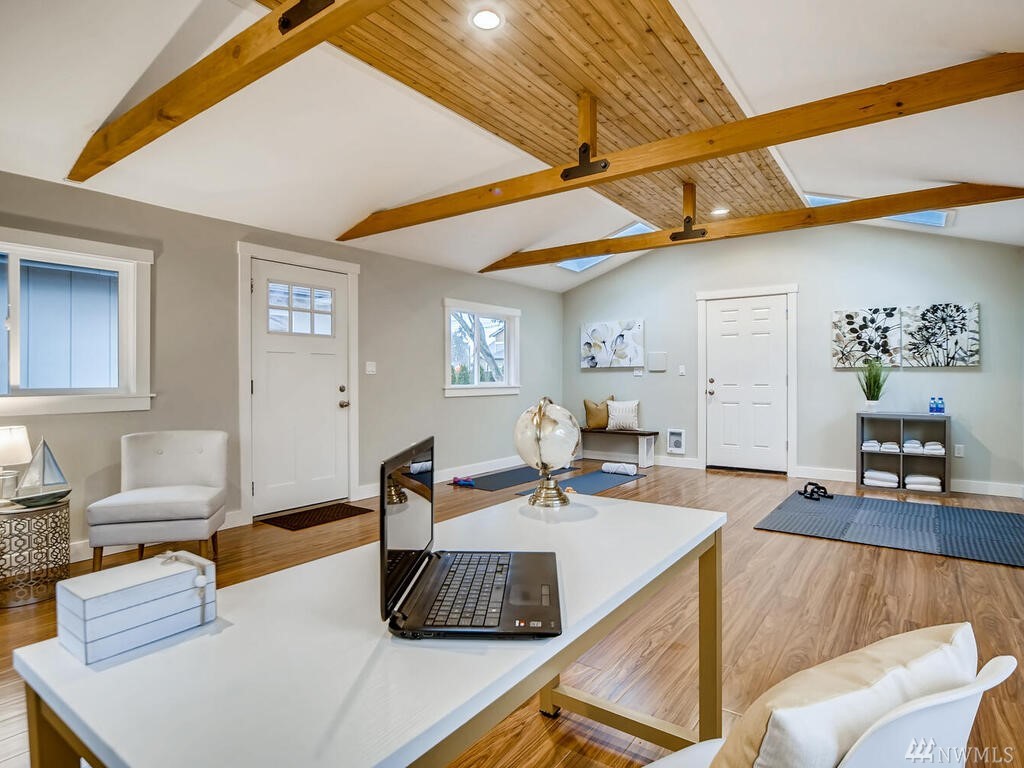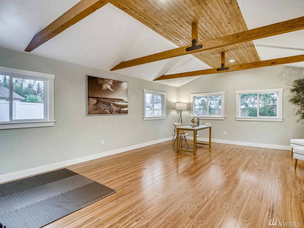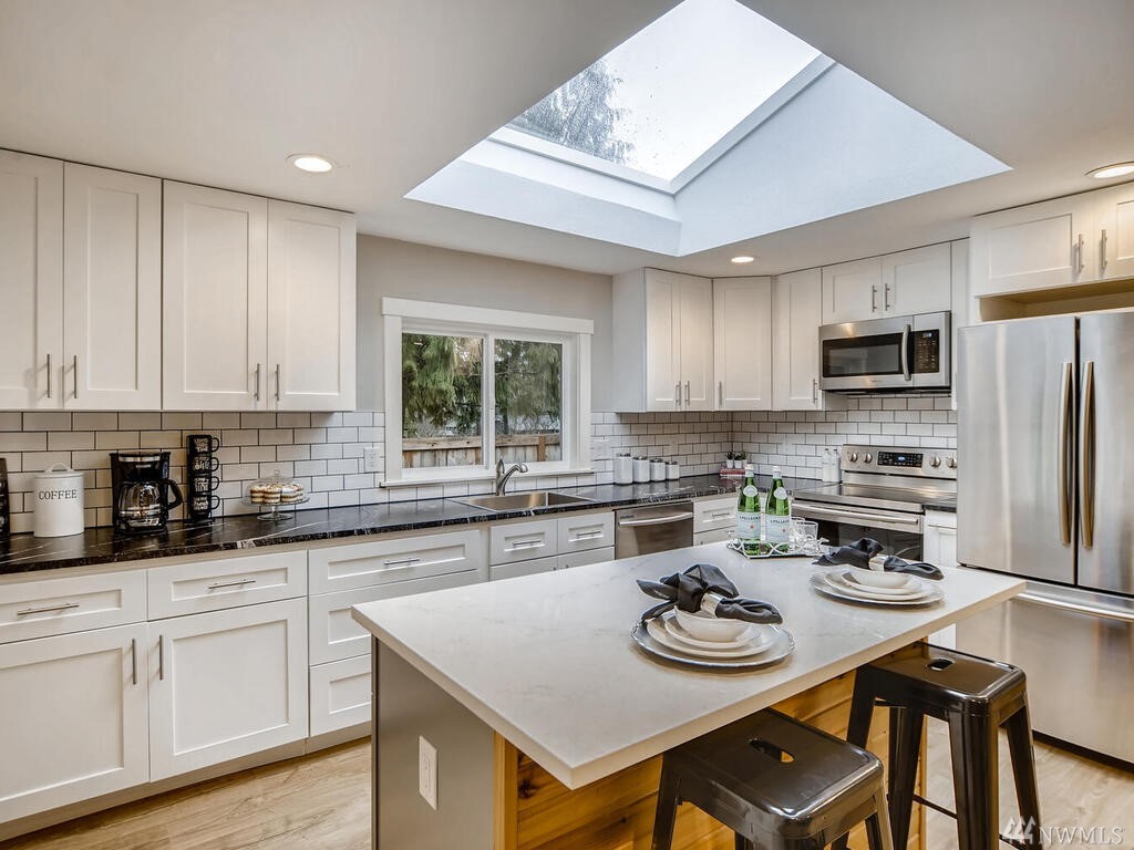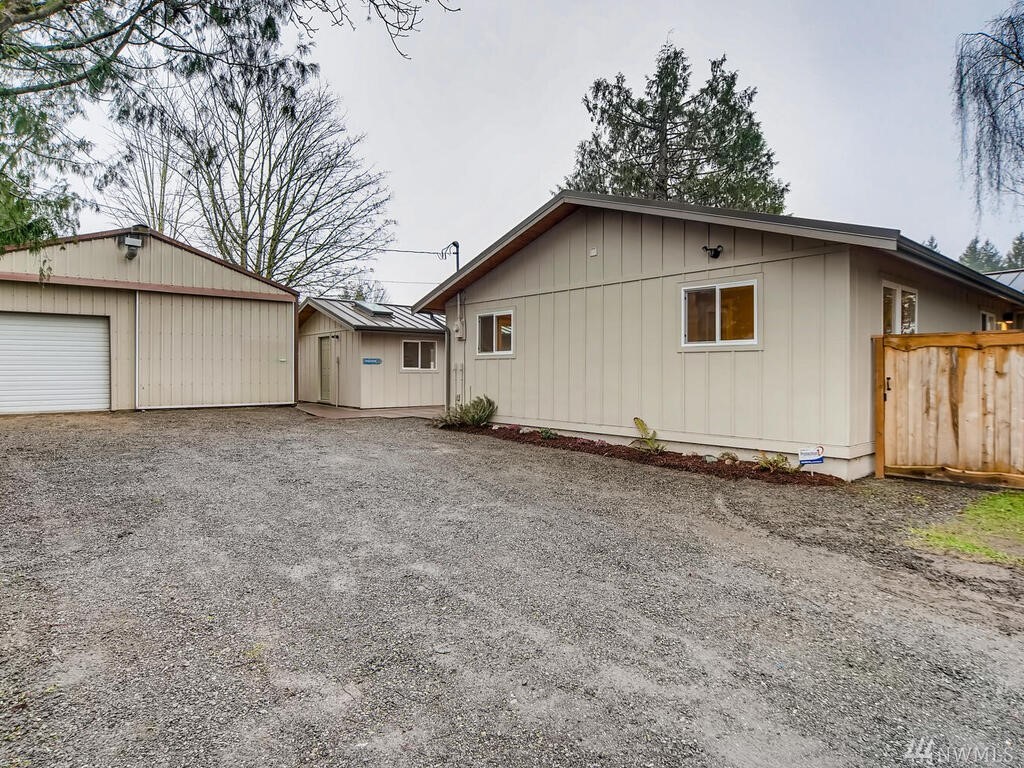 Beautifully remodeled rambler! Full renovation with all new kitchen, stainless steel appliances, stone countertops, master bedroom w/ walk-in closet, custom bath w/heated floors, and a deck off the master bedroom. Detached studio/office provides great space for home office, virtual school room, or art studio. Natural light in all rooms w/ large skylights. Enjoy the comfort of efficient ductless heat and air conditioning. Large private backyard w/new deck and an additional 650sf detached shop for parking or as a work shop. All conveniently located near schools, shopping and Paine Field/Boeing;