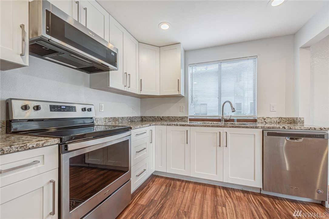 Move-in ready condo in the desirable Edmonds area. Close to I5 and Highway 99, Edmonds Woodway High School, and Swedish Hospital. Also minutes from shopping, light rail and Downtown Edmonds. Beautiful laminate floors throughout, white shaker cabinets and granite counters are amongst the upgrades in this adorable upper level unit. Enjoy the open floor plan to entertain guests and a living room view of grassy common area right outside your front door. In-unit laundry, up to 3 pets welcome and no rental cap. $1,750 Special Assessment paid by seller at closing. Any Offers due by 4:00 PM Monday 2/8/21