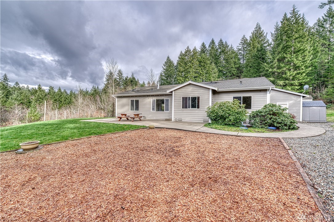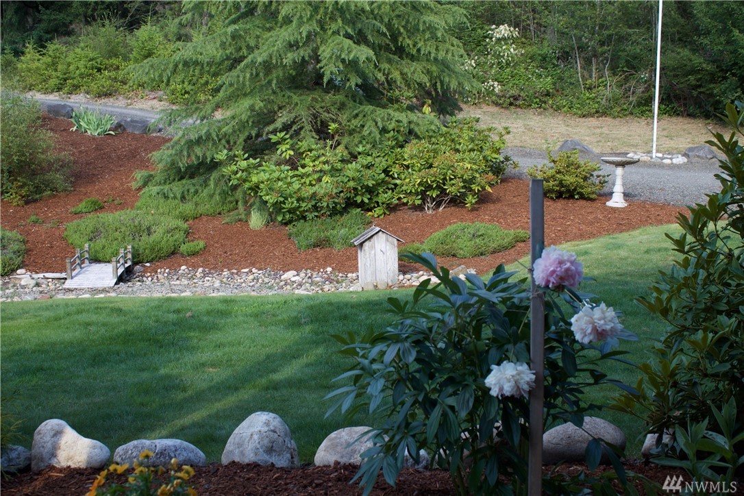 What is not love about this beautiful one story home on five acres. The setting is very private, when the gardens are in bloom you will be living in a beautiful Shangri-la. Enjoy Rocky Creek flowing through the property, in these stressful times, sit by the stream, let the sounds of nature sooth the soul. Enjoy the large concreate patio, that requires no maintenance. Entering you are greeted by a freshly painted interior, hardwood floors & vaulted ceilings and large windows for natural light. There is a formal dining rm. that makes an ideal den or office. The spacious living rm. has vaulted ceilings gas fireplace. Master suite is spacious with all the deluxe amenities. Kitchen has pantry, lots of cabinets and counters. This home has it all