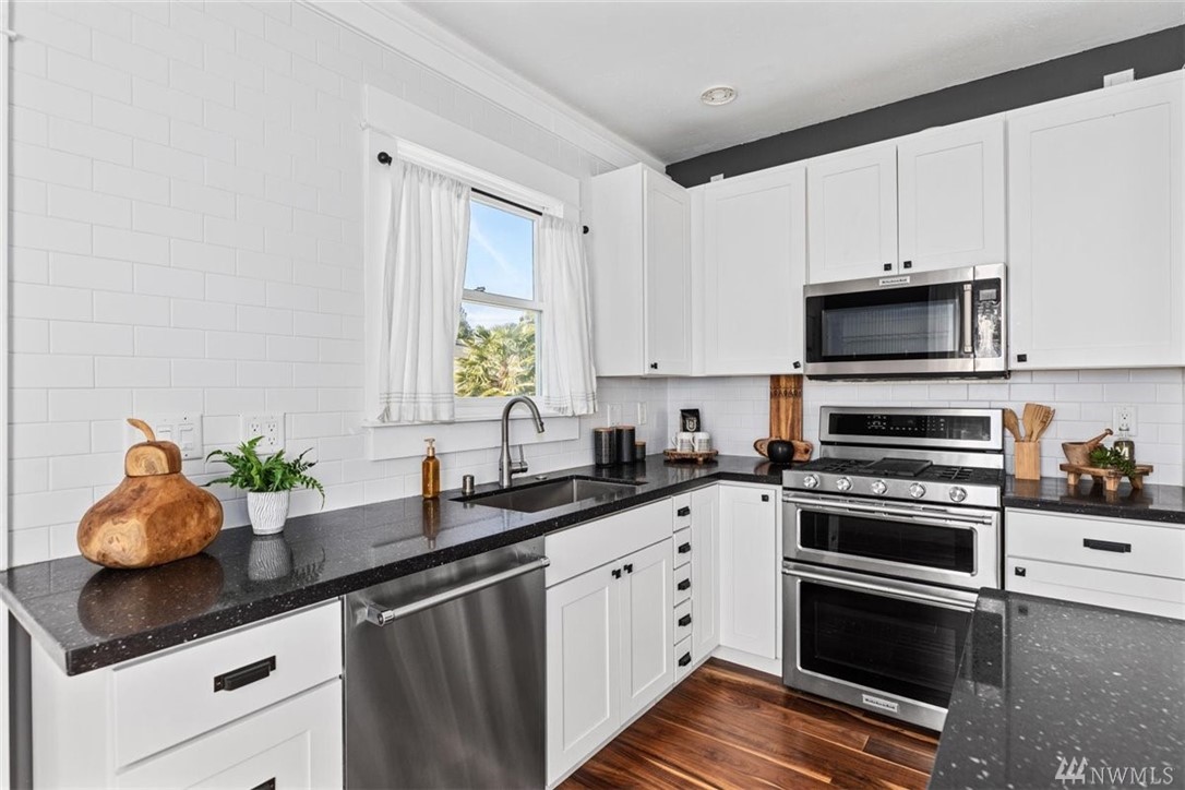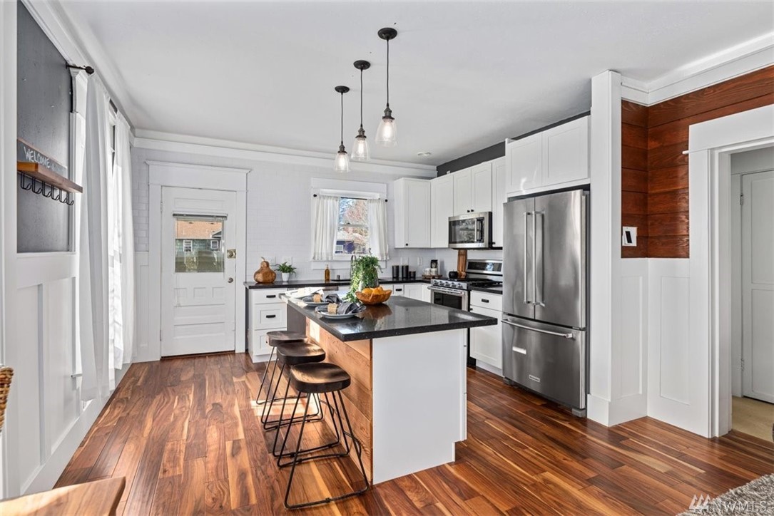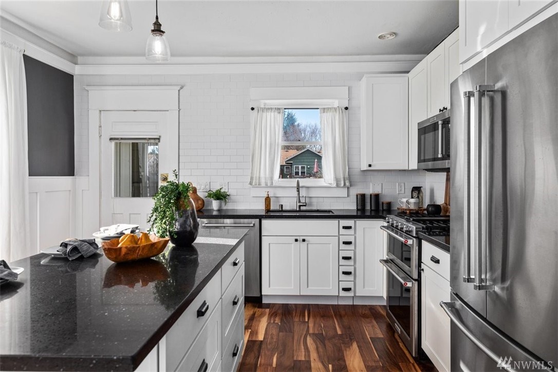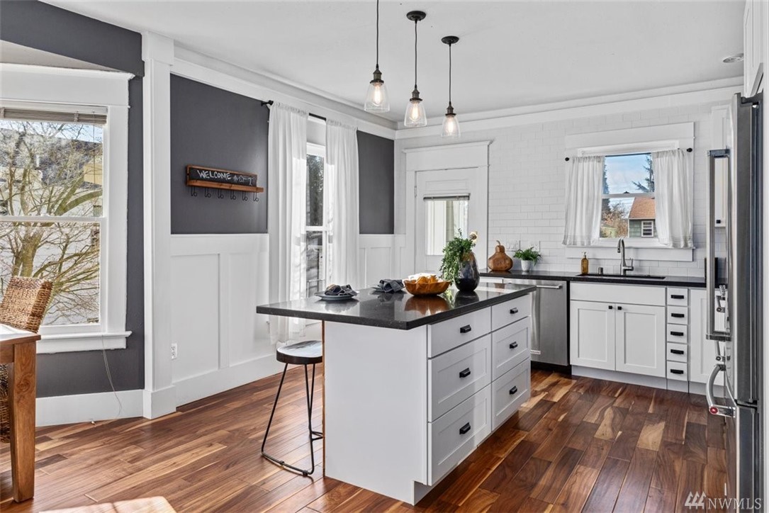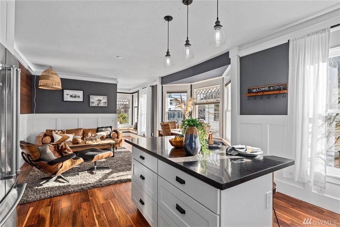 Charming, light-filled Craftsman that still retains period details, located in the Seaview neighborhood of West Seattle. Home has been beautifully remodeled. Luxury details include wainscoating, living room built-ins, wood-planked feature wall, & inviting paint choices. Kitchen allows for open concept living & has slab counter island & S/S appliances. Updated hardwoods, 2014 roof, rebuilt front porch, new electrical, tankless water heater, and high-efficiency gas furnace. Tall ceiling height in the daylight basement, with potential to add more finished square footage. Large, fully-fenced backyard with deck and off-street parking for two cars. Close to Lowman Beach Park, Trader Joe's, Whole Foods, Thriftway, Fauntleroy Wy, and bus lines.