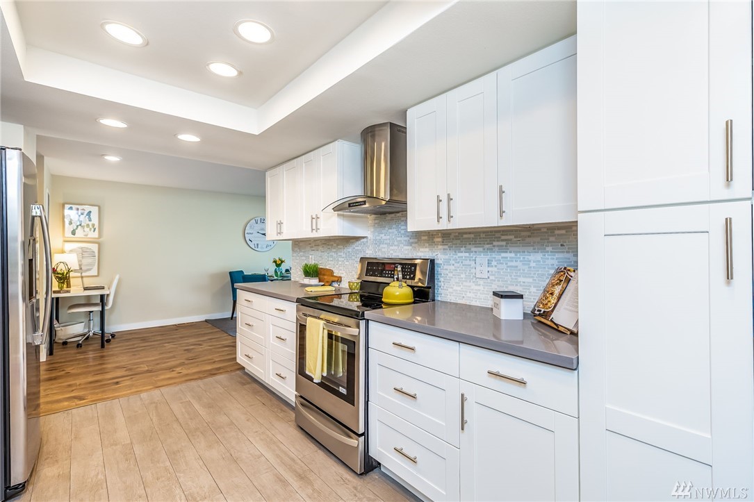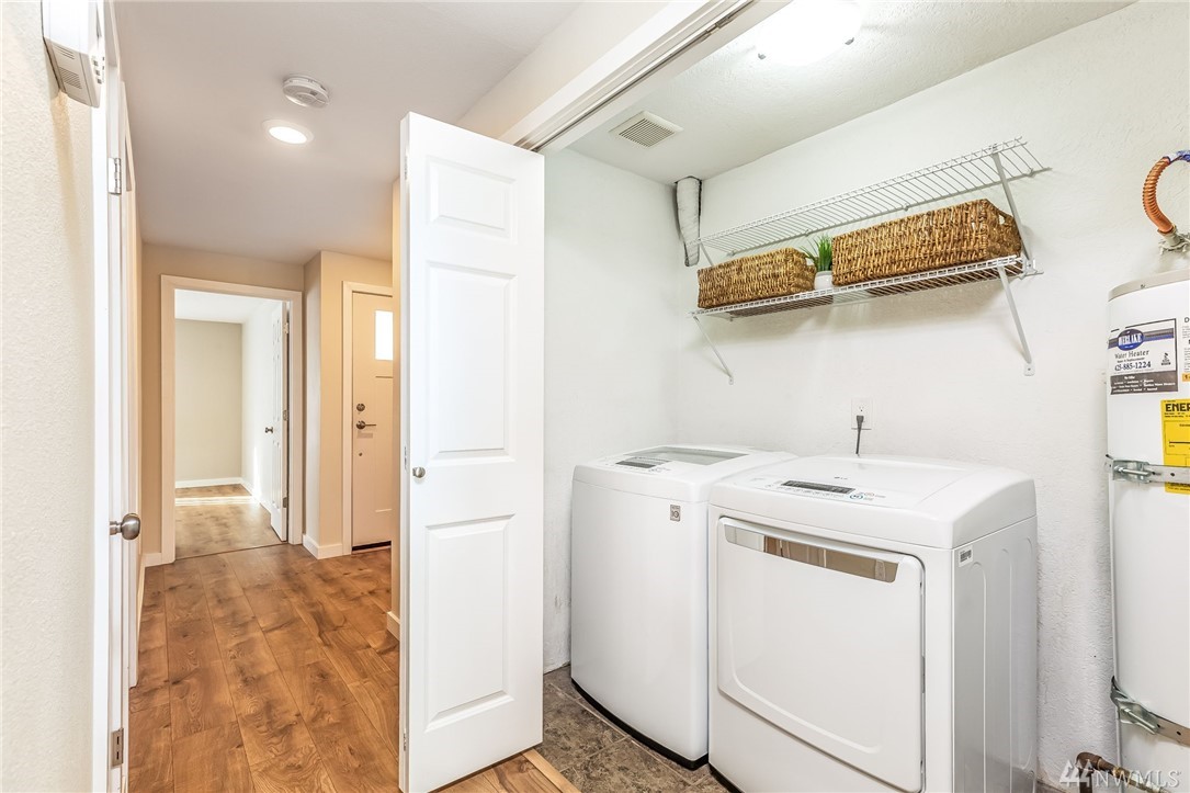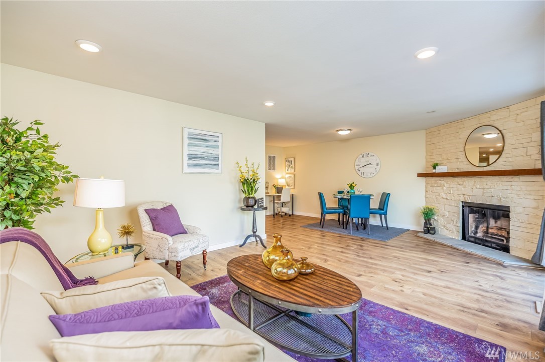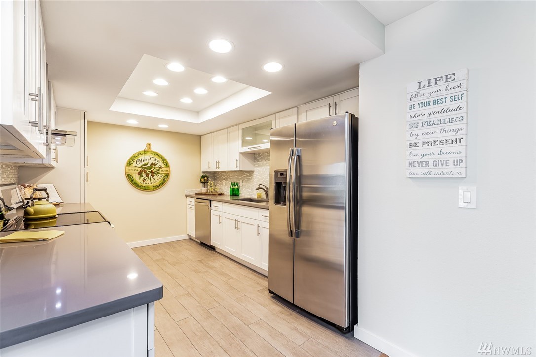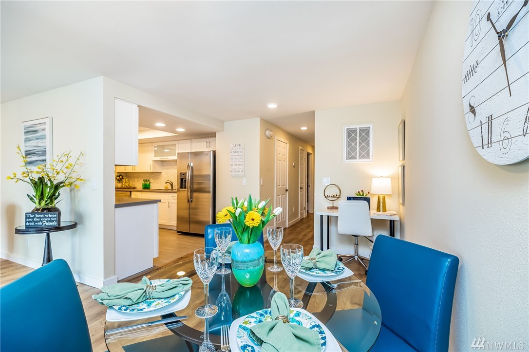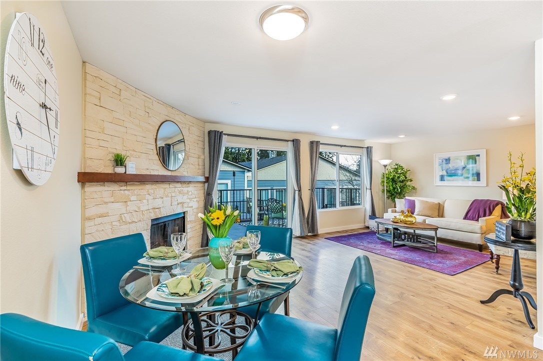 Location, Location, Location for this spacious condo is in the heart of Juanita, walking distance to Juanita Beach & Juanita Village with many restaurants and stores to choose from. Updated top floor unit with newer appliances, furnace, paint & flooring. Double shower heads in master with Jacuzzi tub. Incudes an oversized one car garage with extra storage space, also a reserved parking space. New siding, windows and landscape done in 2015 & NO RENTAL CAP! Award winning Lake Washington School District.