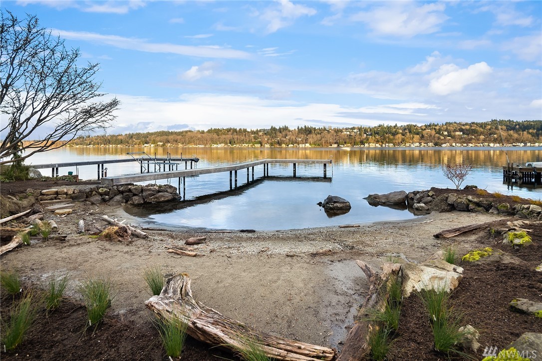 Timeless and Refined home sited on 80' of "no bank" Lake Washington shoreline. A precision assemblage of materials newly constructed by Legacy Homes of Washington. Spa like Owners Suite with sweeping lake view. Second Master Suite on main. Elevator accessing 3 floors. The "Lake Room" on lower level is reminiscent of a world class resort where guests move freely between indoor & outdoor spaces for year round entertaining. Terraced lawn leads to the sandy inlet and new dock w/ deep water moorage. Truly a once in a lifetime opportunity on coveted Mercer Island.