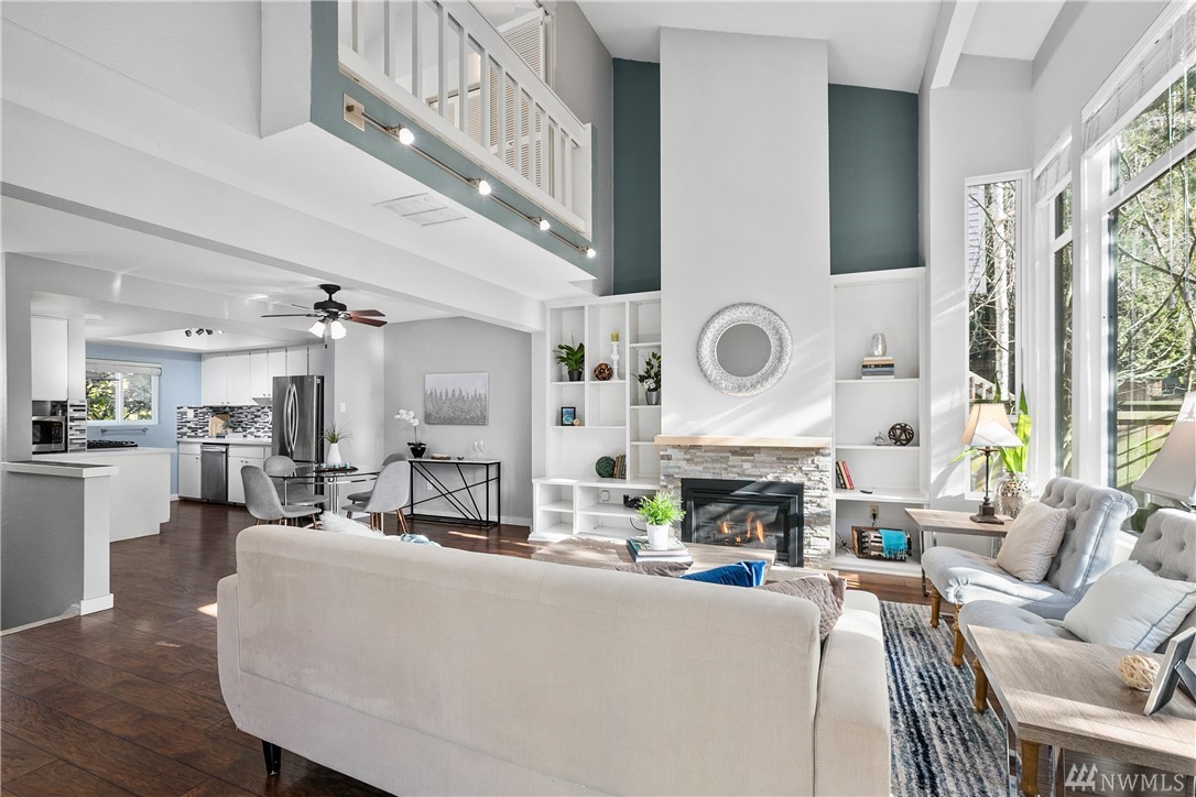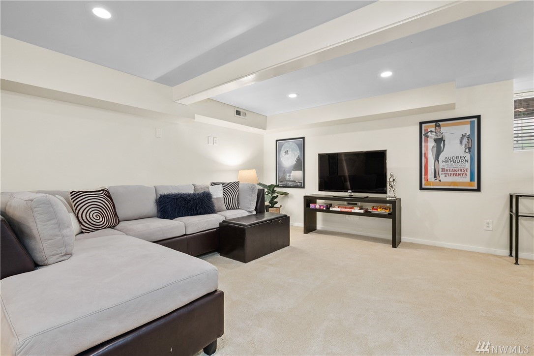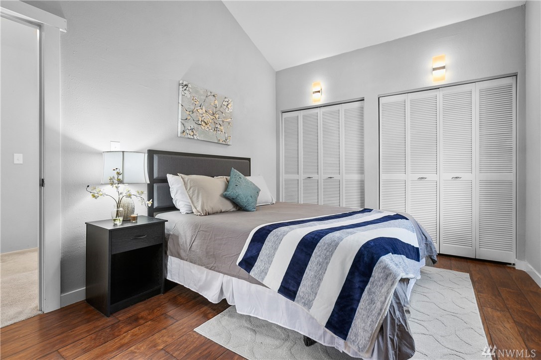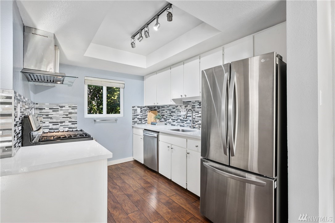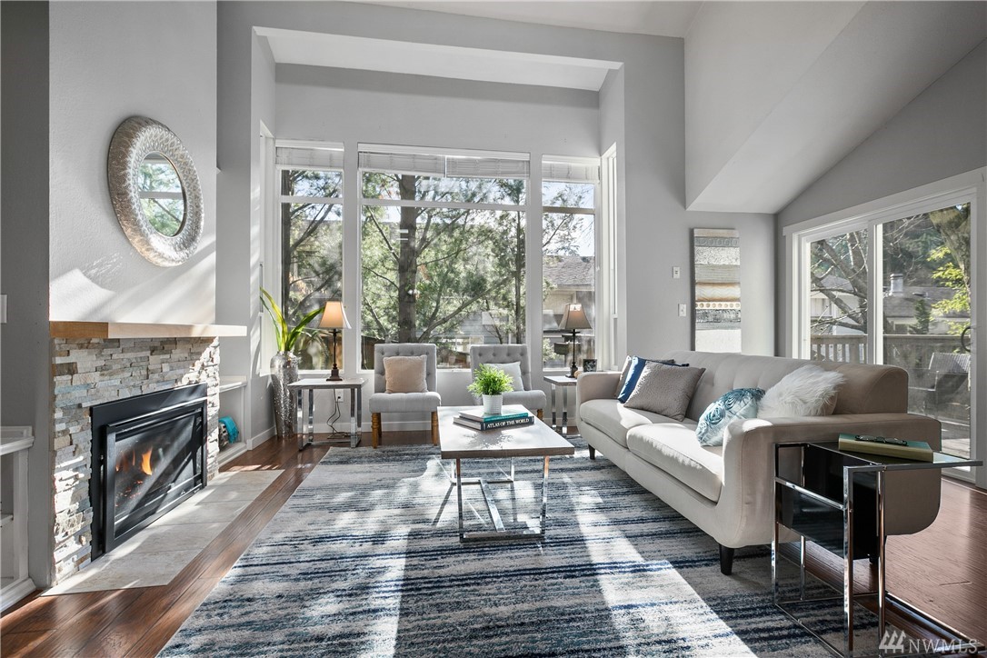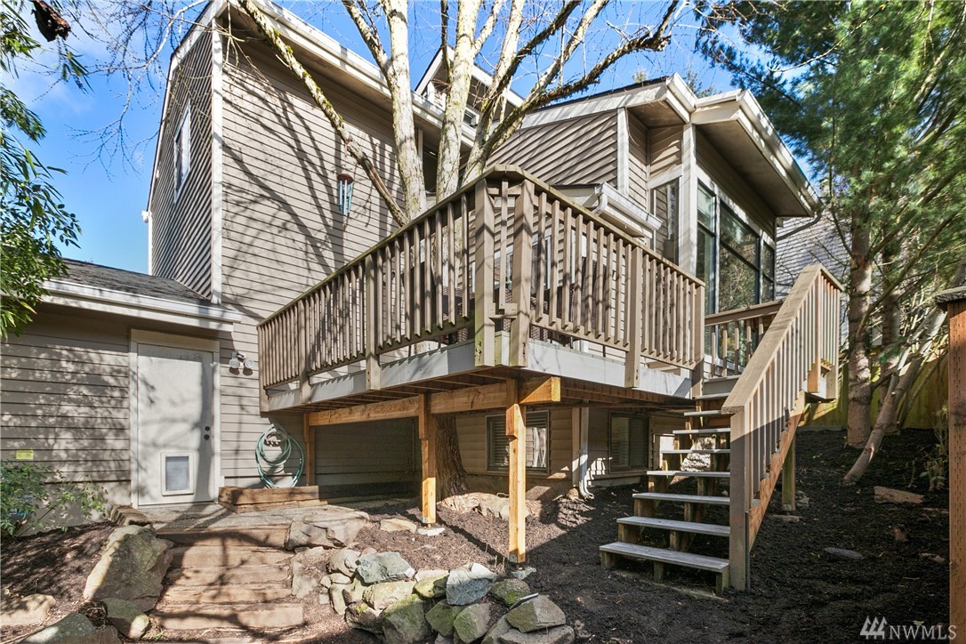 Welcome to this stunning updated townhome located in the heart of Bellevue. This 2 bedroom home features an open concept living space boasting abundant natural light, contemporary lines, soaring vaulted ceilings, large picturesque windows, antique hickory engineered hardwoods, and a gas fireplace with stone surround. Beautifully updated kitchen offers quartz countertop and new SS appliances, and a spacious dining area. Steps from the living area to the fully fenced cozy backyard with a large Trex deck. Upstairs includes a master bedroom with 5-piece master bath with jetted tub, en-suite with attached 3/4 bath. Large finished basement serves as a bonus room/den/gym/possible 3rd bedroom. Minutes to future light rail and amenities!!!