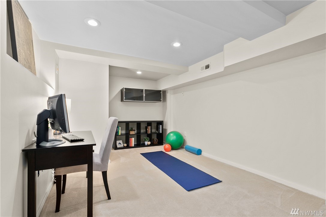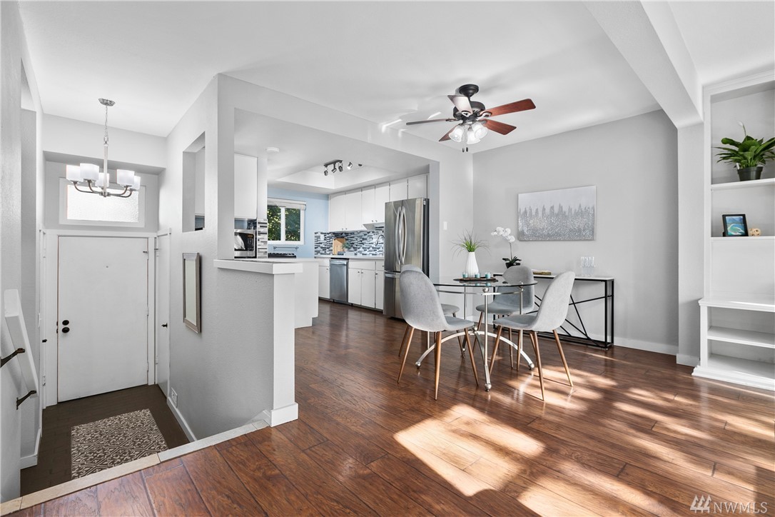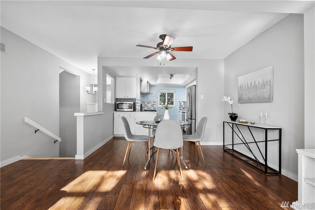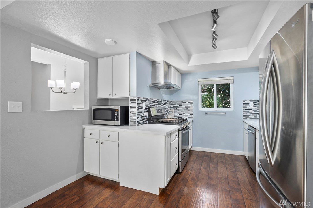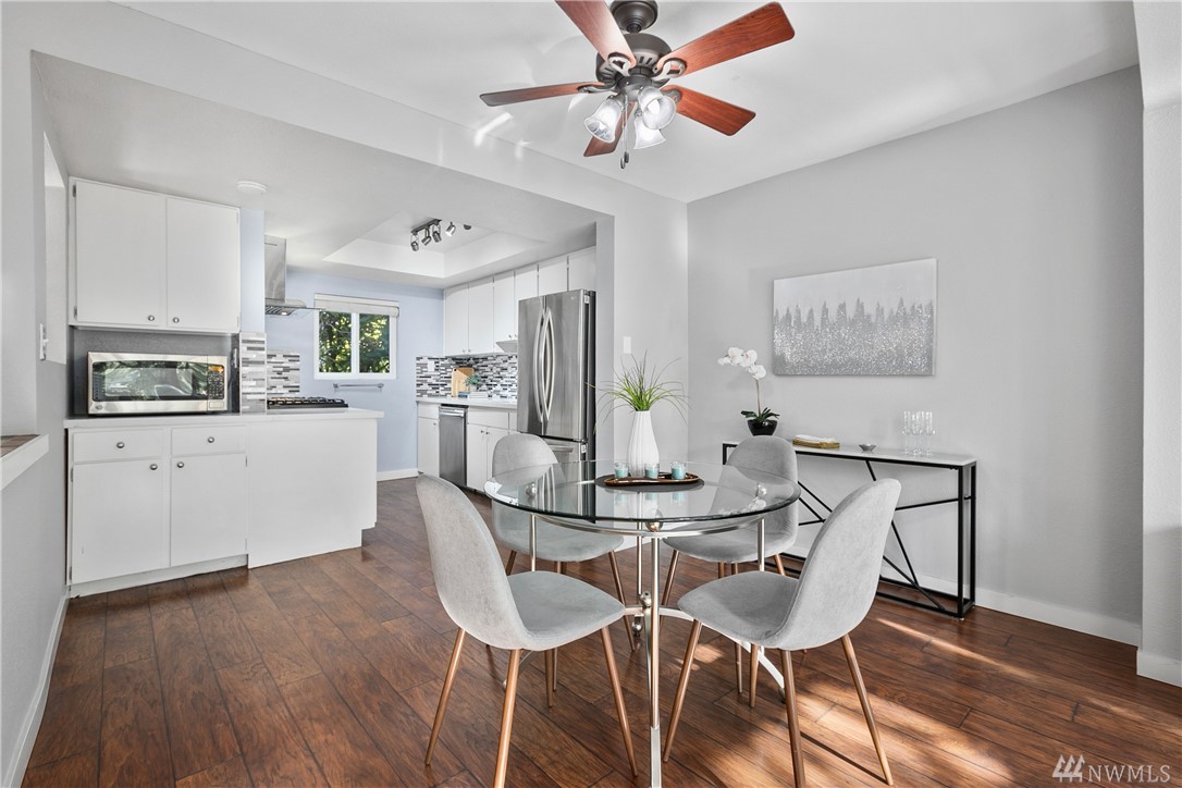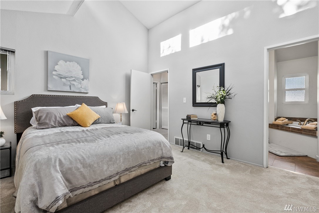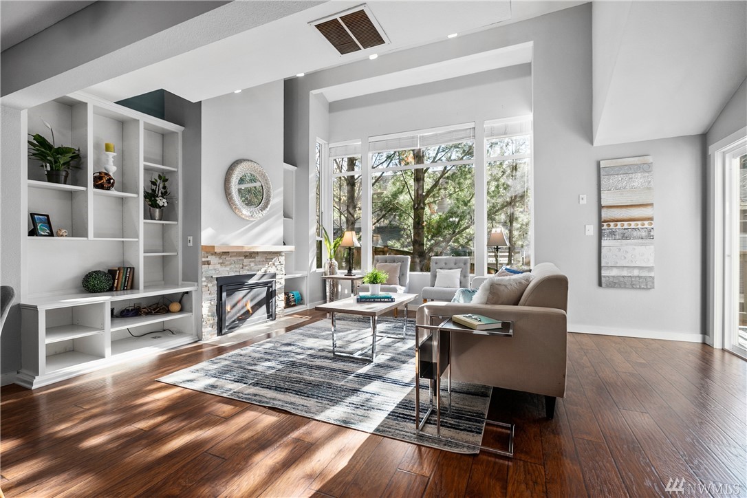 Welcome to this stunning updated townhome located in the heart of Bellevue. This 2 bedroom home features an open concept living space boasting abundant natural light, contemporary lines, soaring vaulted ceilings, large picturesque windows, antique hickory engineered hardwoods, and a gas fireplace with stone surround. Beautifully updated kitchen offers quartz countertop and new SS appliances, and a spacious dining area. Steps from the living area to the fully fenced cozy backyard with a large Trex deck. Upstairs includes a master bedroom with 5-piece master bath with jetted tub, en-suite with attached 3/4 bath. Large finished basement serves as a bonus room/den/gym/possible 3rd bedroom. Minutes to future light rail and amenities!!!