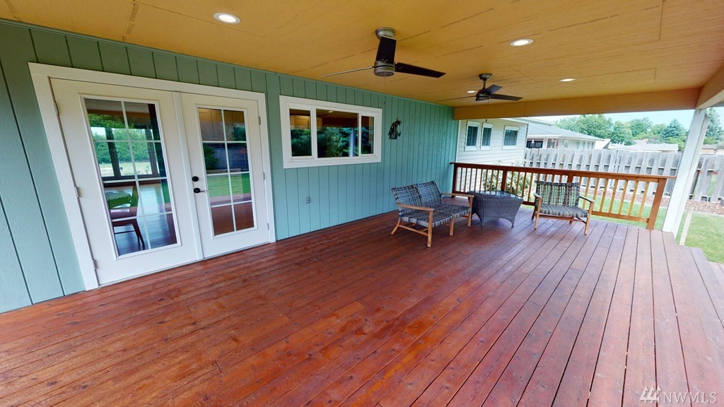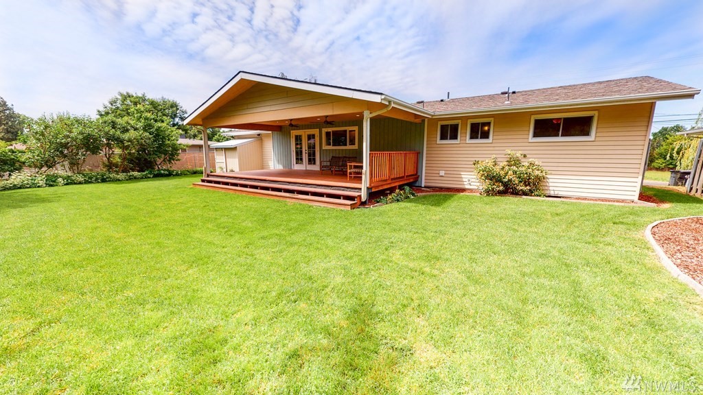 Beautifully updated home with remodeled kitchen, bamboo flooring and large covered deck. New HVAC system, new paint and new carpeting in the main floor bedrooms. Spacious basement with high ceiling and lots of storage!