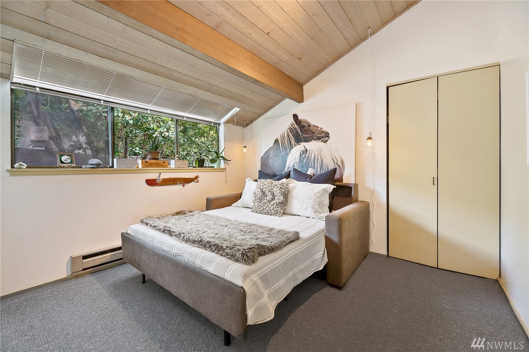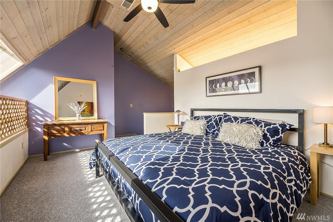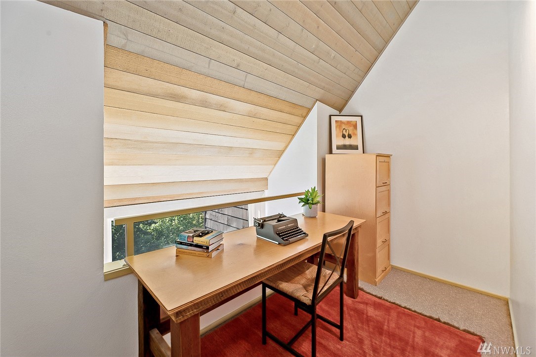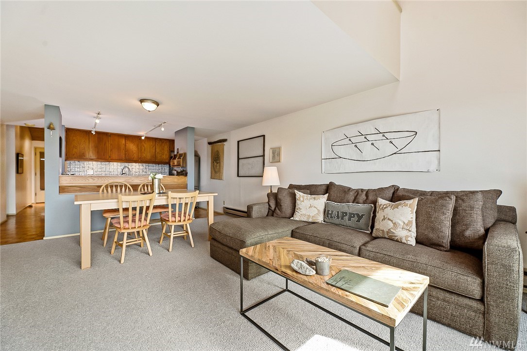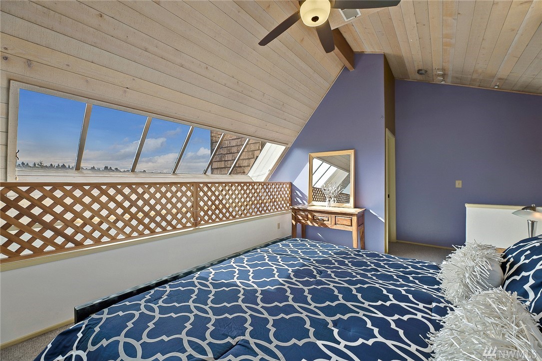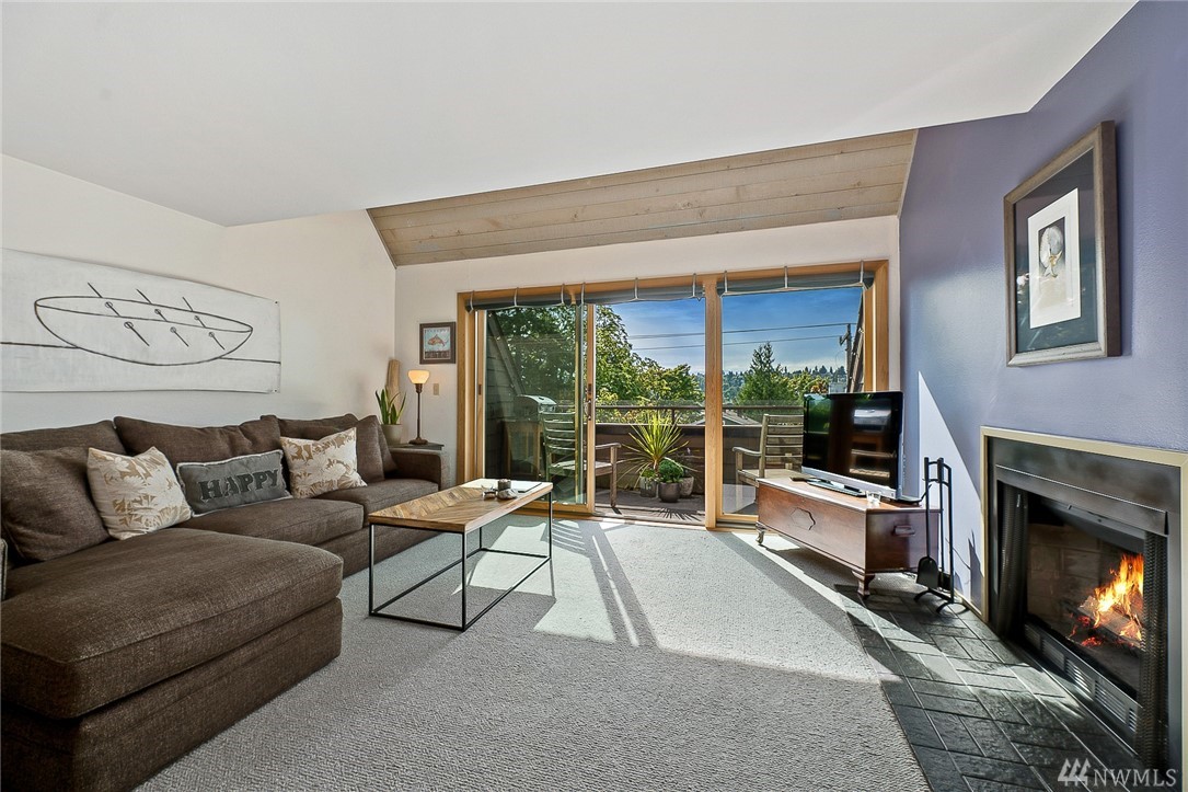 Enter through your own private entrance, w/no lobby or elevators into this uniquely warm & hip loft styled condo on the West slope of Queen Anne! Newer windows provide an abundance of natural light giving a feeling of living in a treehouse. Large living & dining spaces w/open kitchen, bedroom & full bath w/a west facing deck complete the main floor. Upstairs contains a master bedroom w/generous closest spaces & cozy office space, just right for working at home. One car off st parking.