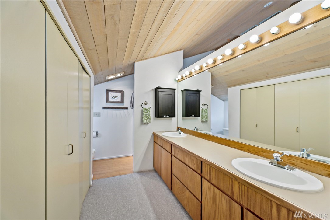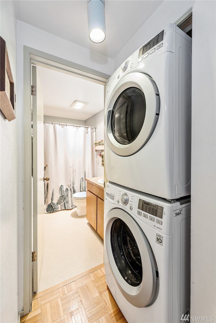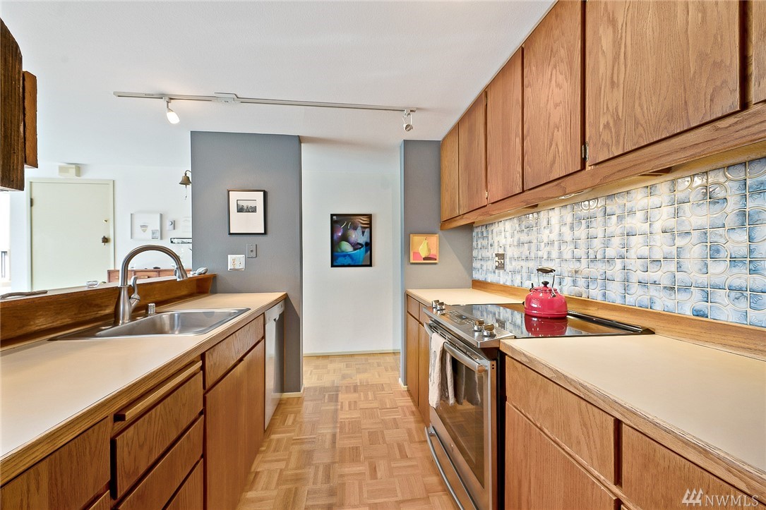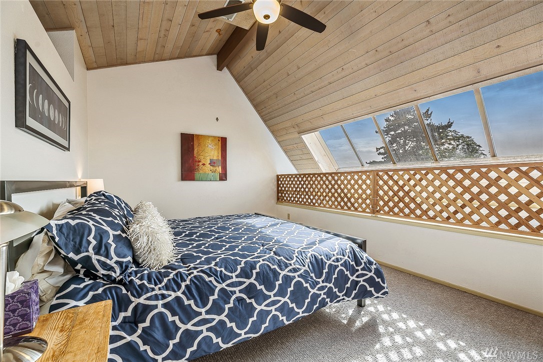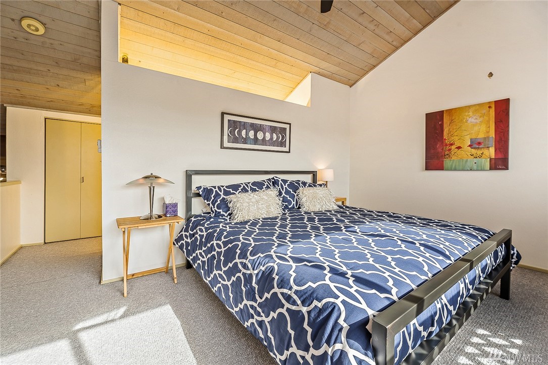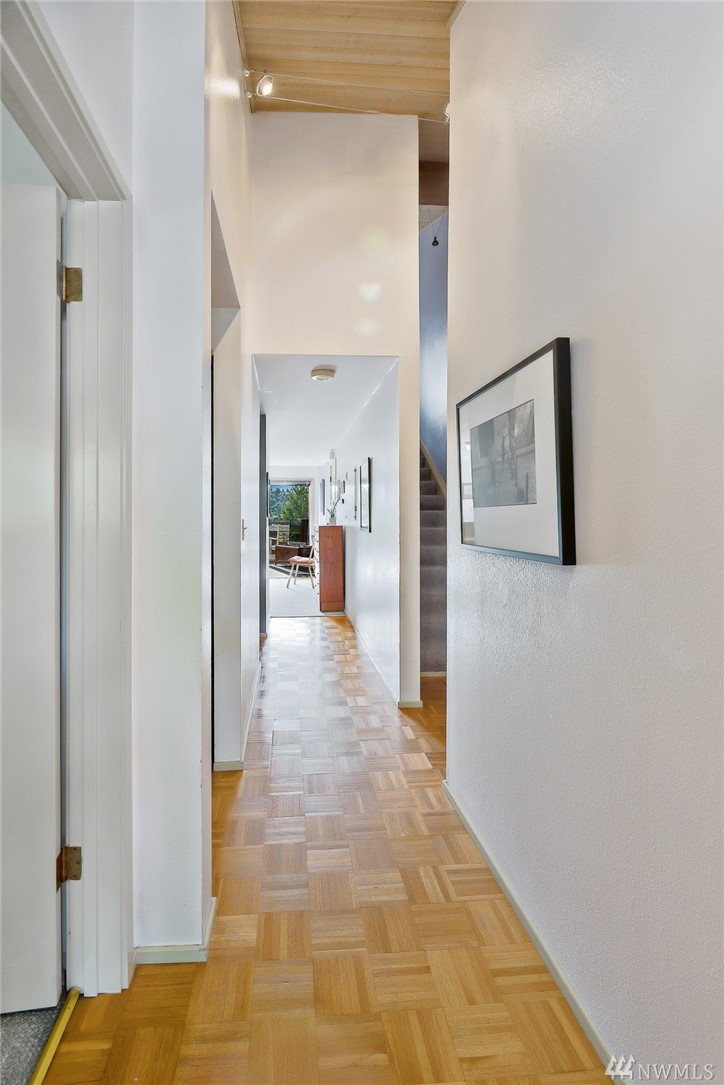 Enter through your own private entrance, w/no lobby or elevators into this uniquely warm & hip loft styled condo on the West slope of Queen Anne! Newer windows provide an abundance of natural light giving a feeling of living in a treehouse. Large living & dining spaces w/open kitchen, bedroom & full bath w/a west facing deck complete the main floor. Upstairs contains a master bedroom w/generous closest spaces & cozy office space, just right for working at home. One car off st parking.