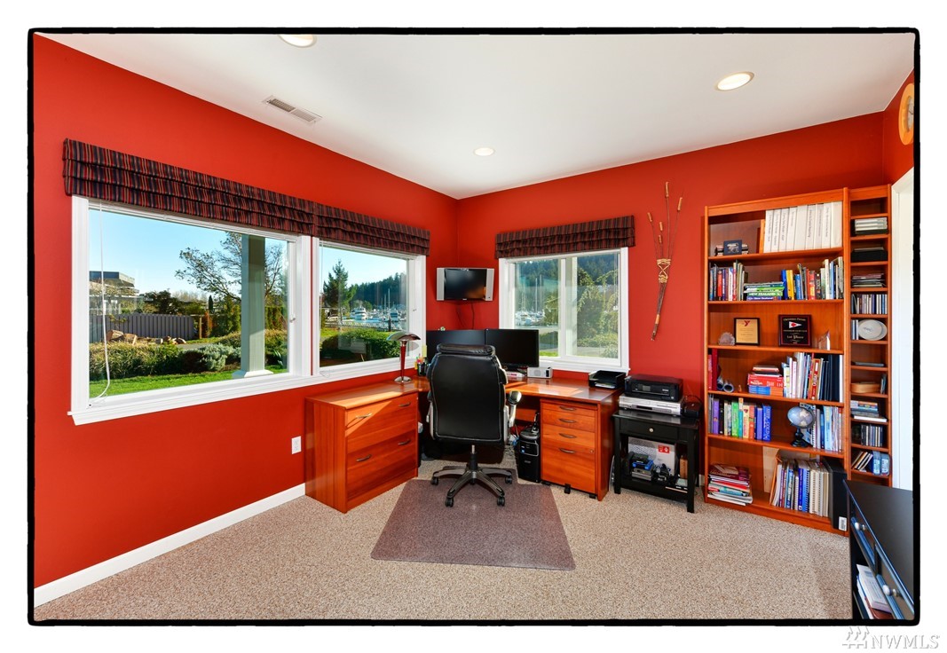 Rare opportunity to own a fantastic custom water view home w/something for everyone featuring two sunny great rooms w/clearstory windows and skylights allowing the sun rays to penetrate the home w/an abundance of natural light enhancing the exposed beam construction. Breath taking sunrises over the cascade foothills & the marina. Master suite w/full bath opens to a private deck w/hot tub. Granite counter tops; cherry cabinets; gas fireplace; recirculating hot water; eating bar; walk-in pantry; home office; covered deck; gar w/lots of storage & shop space; car charging station. Pvt. fenced backyard w/water feature & storage building. Amenities; swimming pools, tennis courts, marina, boat ramp, private beaches, BBQ areas, golf, & club house.