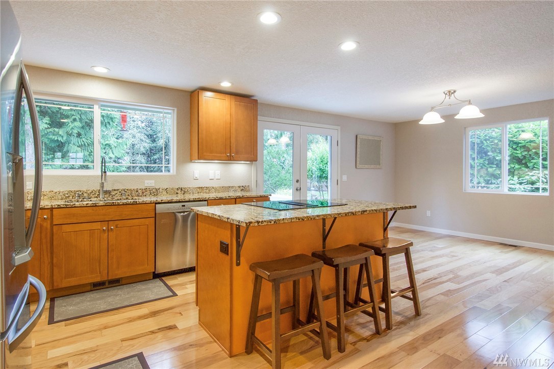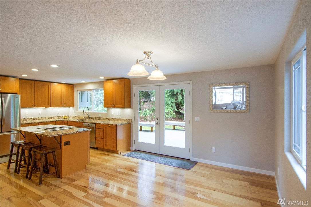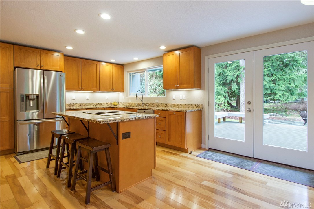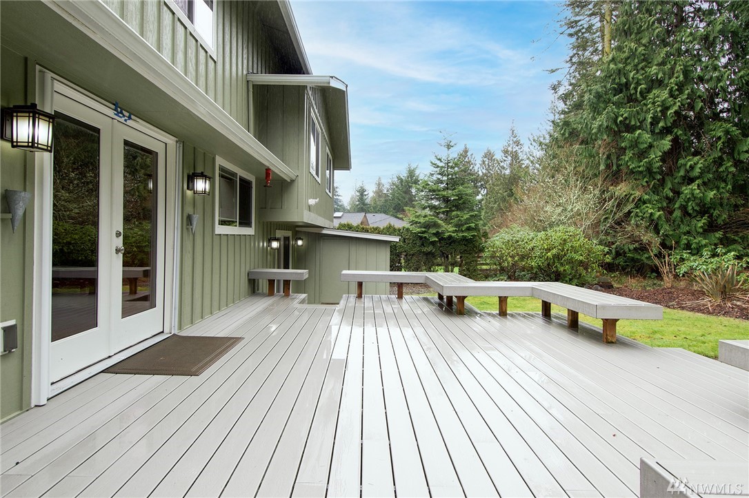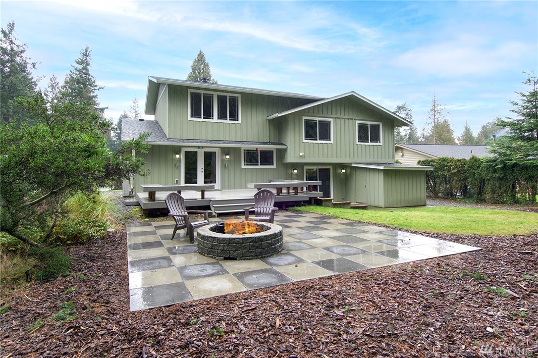 Beautifully updated multi-level home in Sunland, with wood floors and quartz counters in the kitchen, sleek new stainless steel appliances. French doors lead from the dining area to the expansive deck with built-in seating. Enjoy the fire pit on the checkered concrete patio in your backyard, surrounded by tall Cedars. Upstairs, along w/ 2 BR & a BA, are 2 Master Suites, with heated floors & stunning showers. A great room below leads you out to another patio and storage shed. The oversized 2-car garage has lots of room. Plenty of parking on concrete or gravel. All the amenities of Sunland living: clubhouse with heated outdoor pool and pro shop, & tennis courts just blocks away, community beach access with cabana.