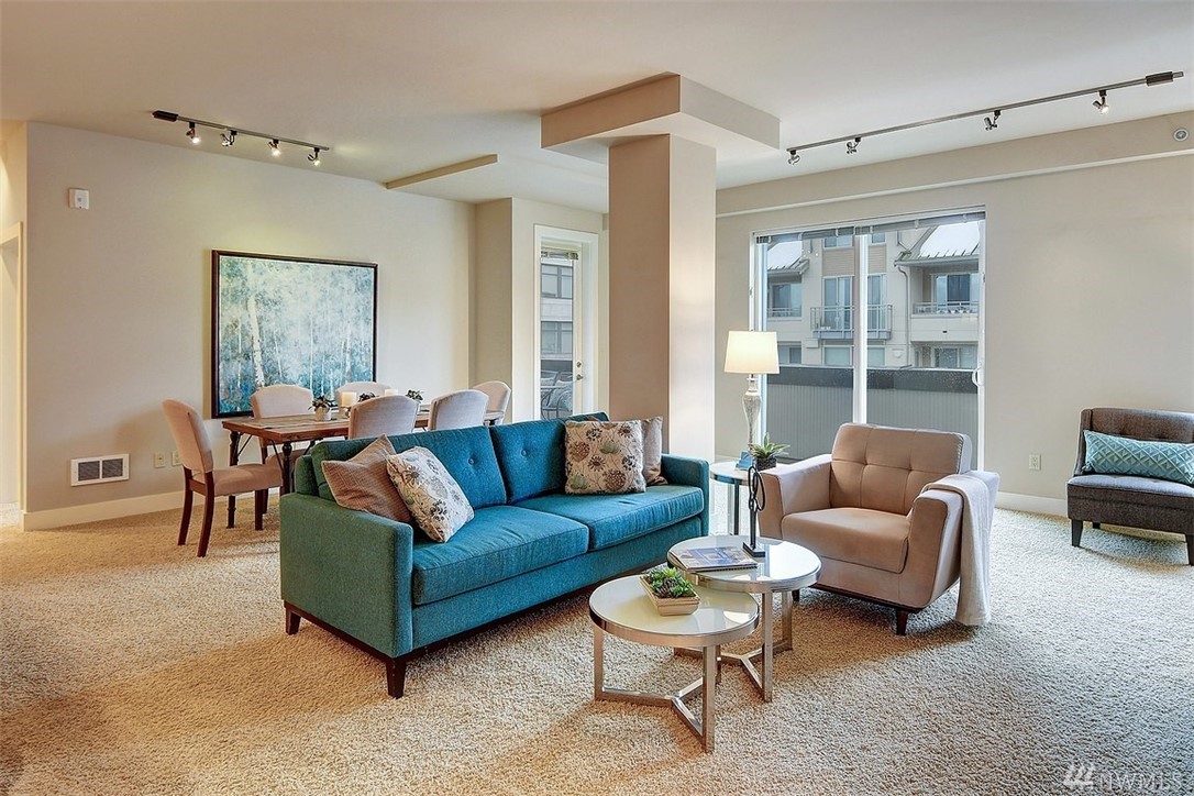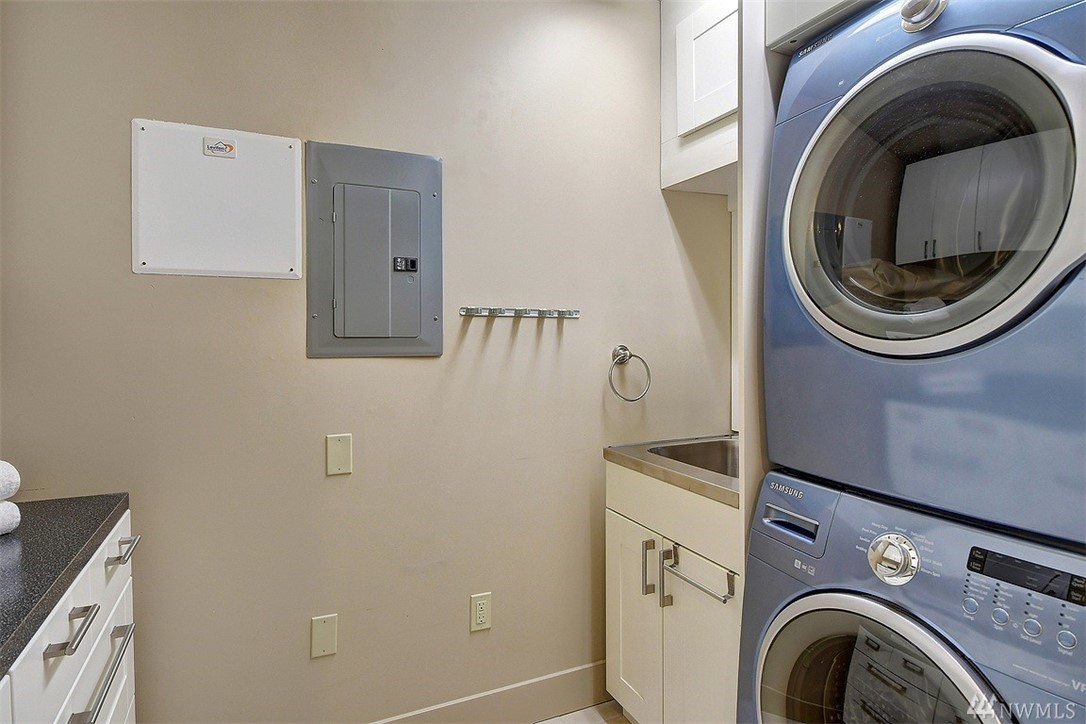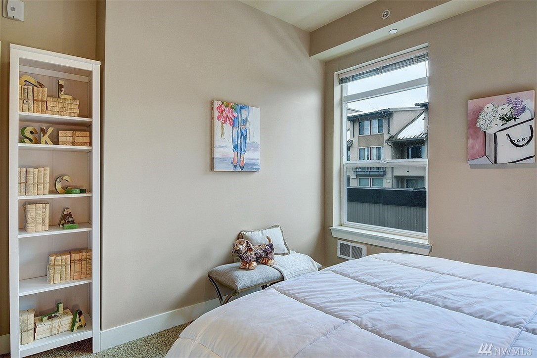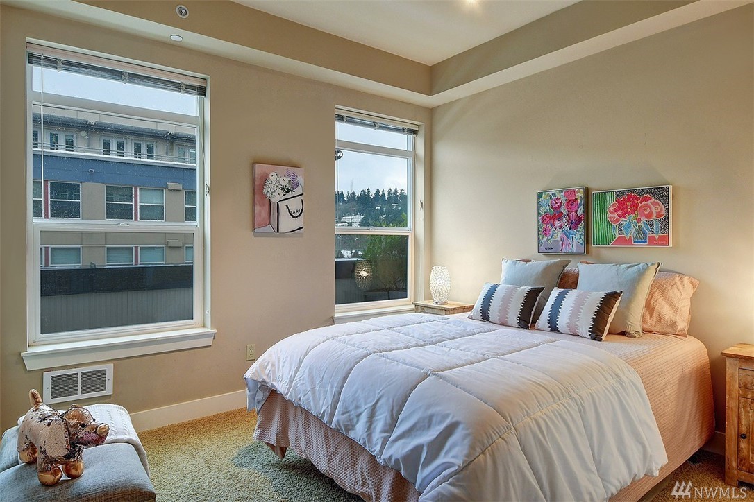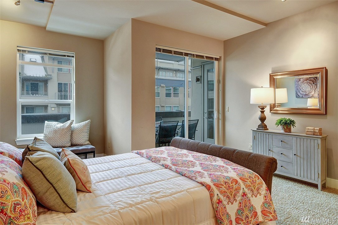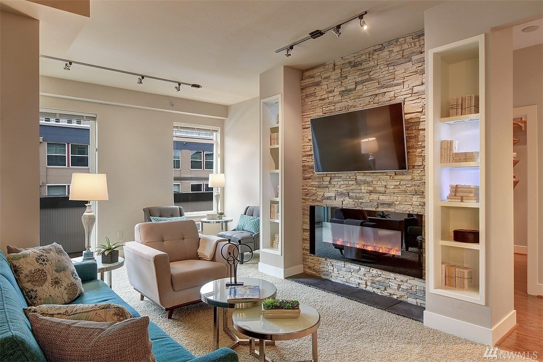 South facing end unit in boutique steel/concrete building. Stacked stone fireplace anchors great room with high ceiling, large windows reveal a city vibe. Stunning kitchen open to living spaces, bedrooms are separated for privacy. Alcove to work or indulge your hobby, full size laundry. Secure covered 2 parking spaces + storage. Sensational location by sculpture garden, near restaurants, shopping, Light Rail Station. No rental cap. Convenience, quality and a luxurious care-free urban lifestyle.