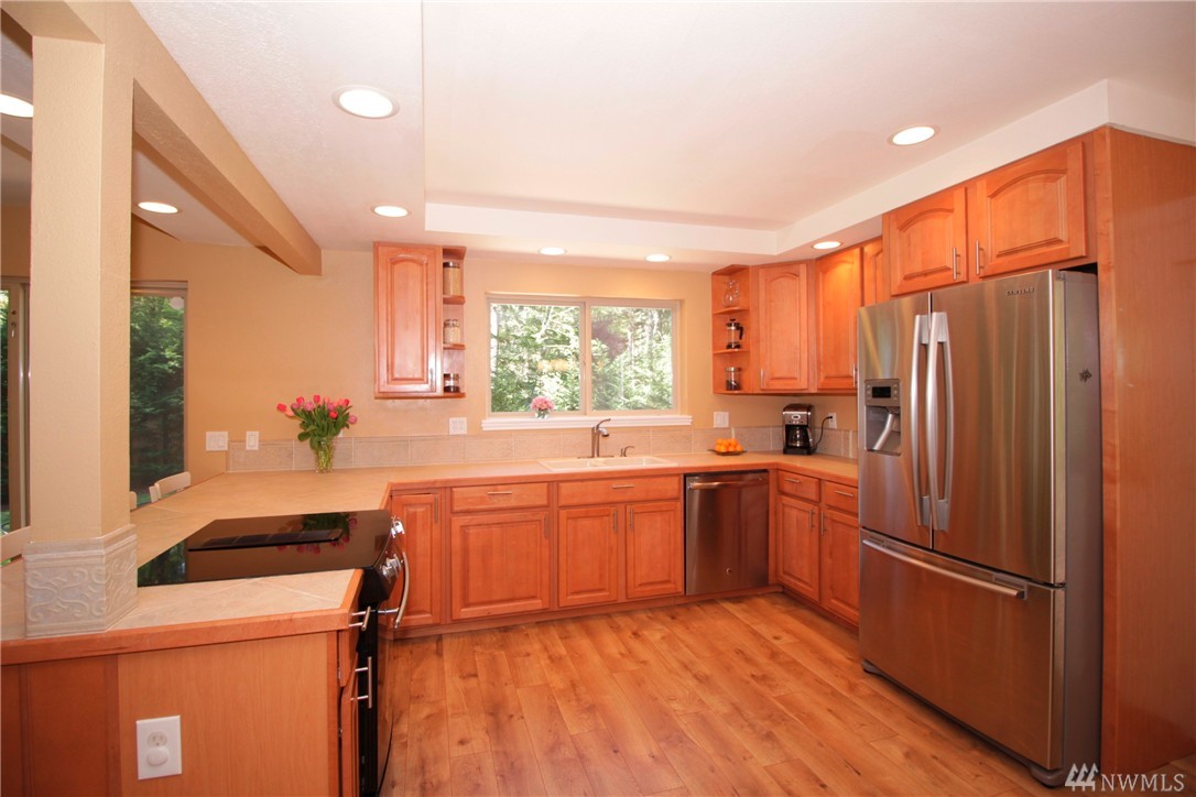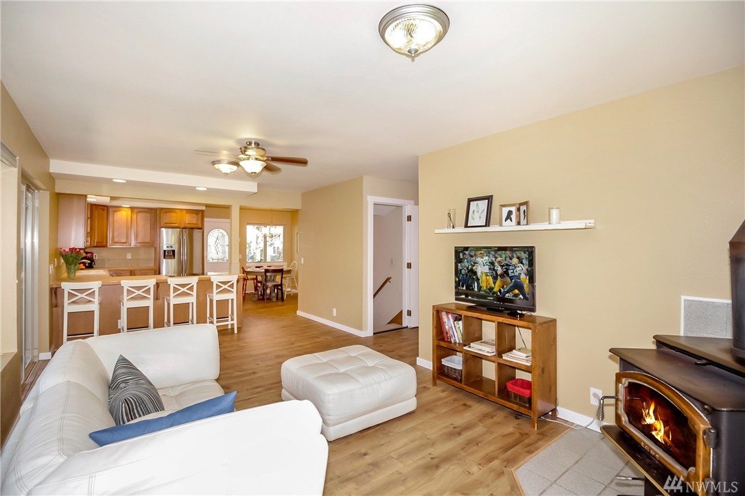 Open concept main level w/ covered front porch invites you inside to great-room w/ vaulted ceilings & floor-to-ceiling windows! Kitchen w/ eating area opens to adjacent family room. Separate dining room. Large bedrooms + 2-full baths upstairs. Lower level w/ 2 finished rooms, bath & separate entry. New interior flooring, paint, trim & doors. Oversize 2-car garage. Large fenced yard w/ RV parking & covered storage. Easy access to 1-90 & RattleSnake Lk. Hiking/Mt biking/kayaking/skiing all nearby.
