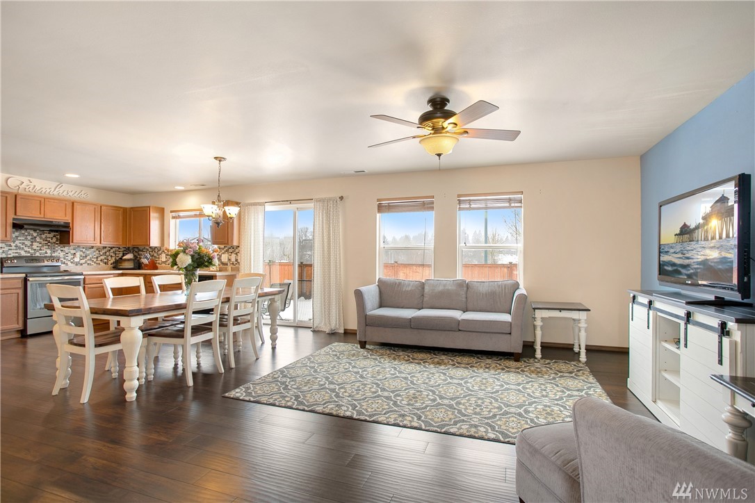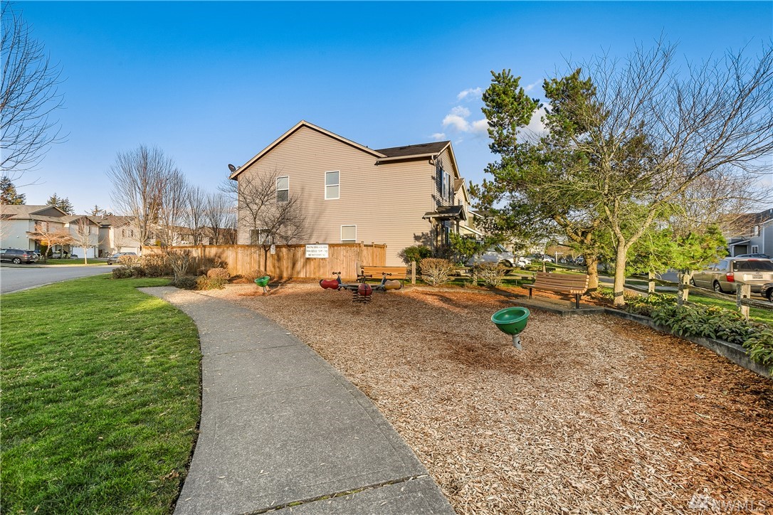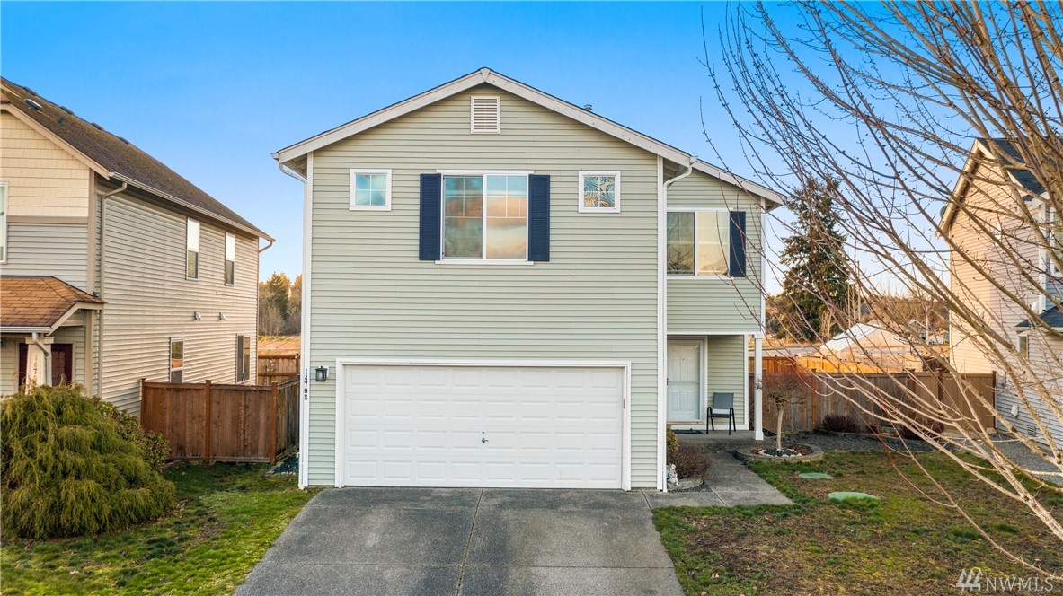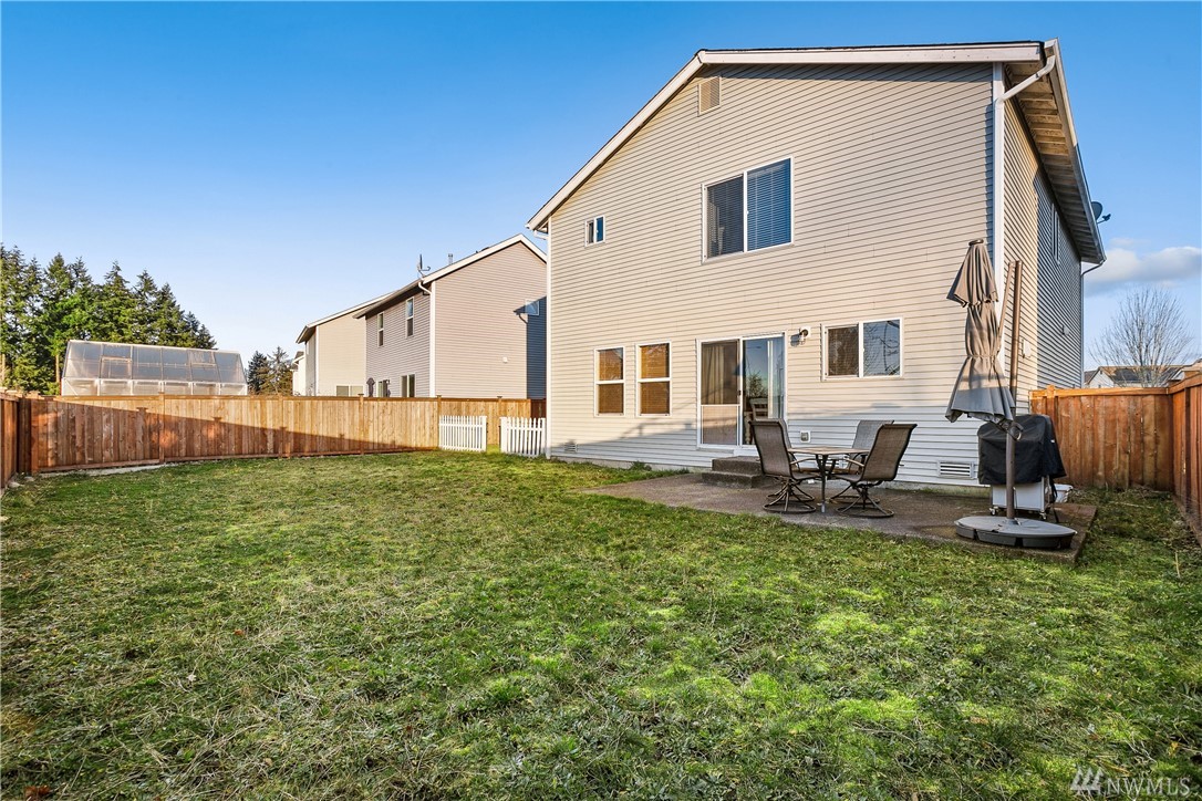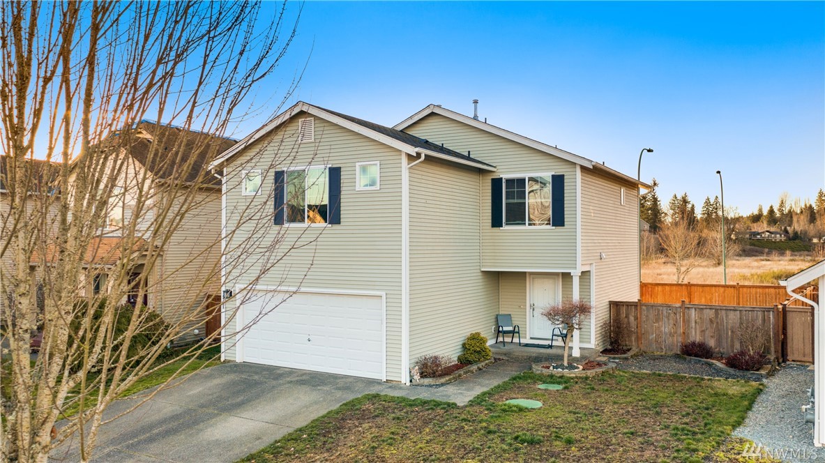Love this 1,830 sq ft, 2-story, 3 bed 3 bath home with a 2 car garage in the Tahoma Meadows, Yelm WA neighborhood. Delightful front porch leads into an open concept living room, dining area, and kitchen. Newer quality engineered hardwood floors, wood cabinetry, large windows let in abundant natural light. Cozy 2nd floor landing for variety of uses, 2 large bedrooms with walk in closets, and bath. The lovely Owner bdrm has a private ensuite w/BIG tub, dual shower heads & huge closet. Fully fenced back yard with patio for outdoor living. Separate enclosed side yard for pets or garden. Home faces a little park too! Only 17 miles to JBLM visitor center or 14 miles to East Gate.