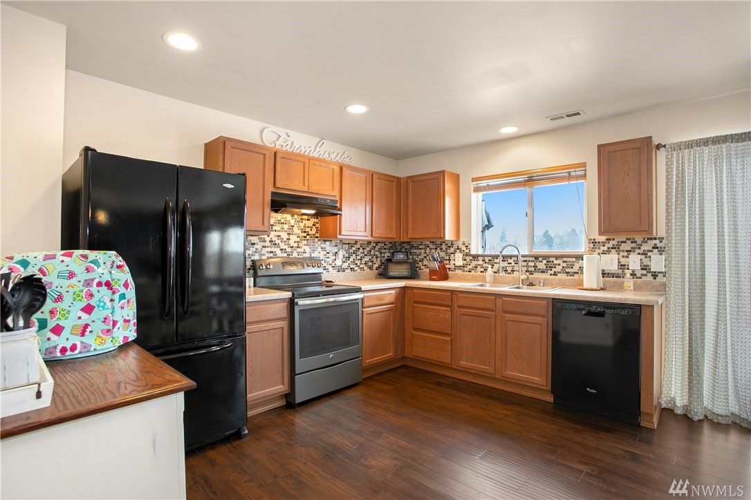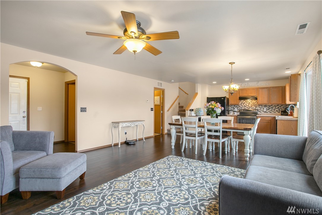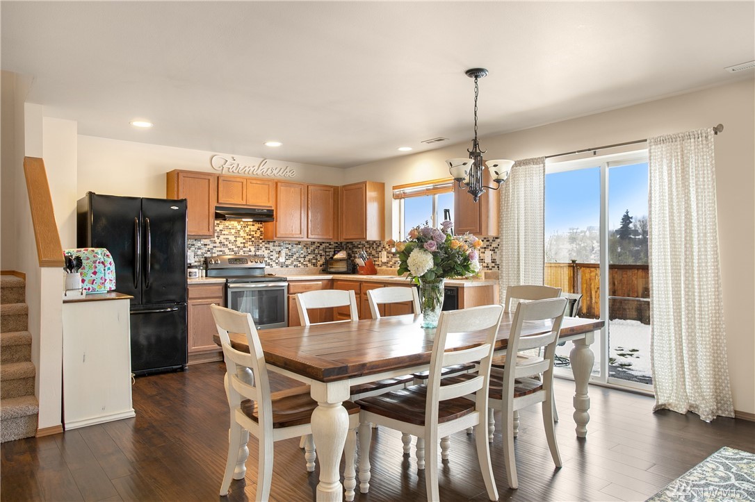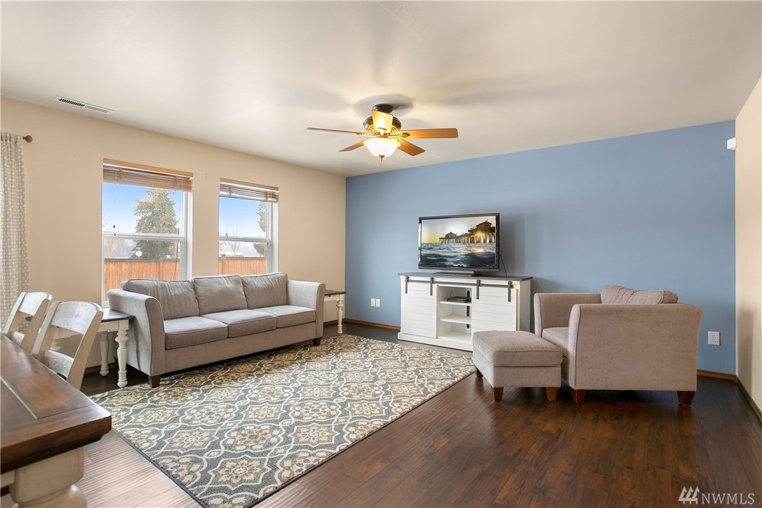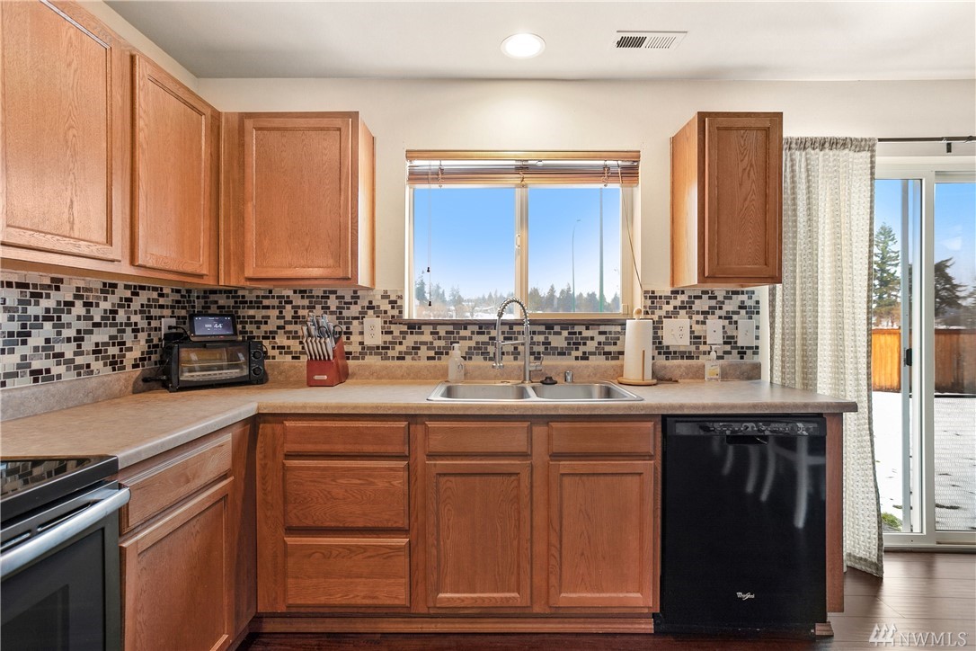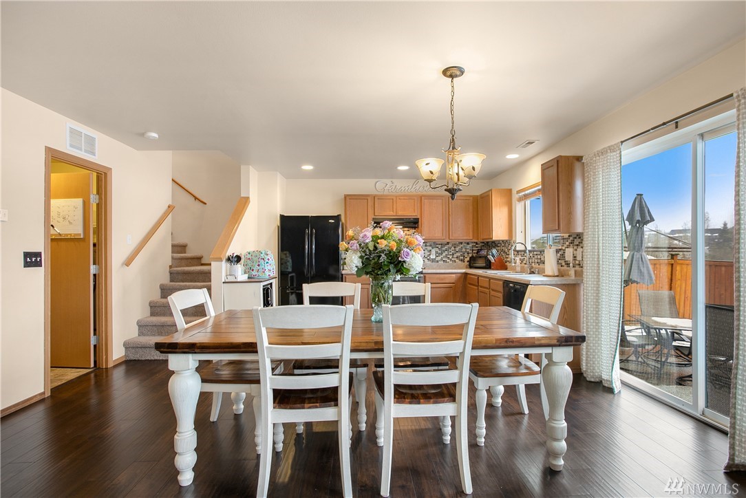 Love this 1,830 sq ft, 2-story, 3 bed 3 bath home with a 2 car garage in the Tahoma Meadows, Yelm WA neighborhood. Delightful front porch leads into an open concept living room, dining area, and kitchen. Newer quality engineered hardwood floors, wood cabinetry, large windows let in abundant natural light. Cozy 2nd floor landing for variety of uses, 2 large bedrooms with walk in closets, and bath. The lovely Owner bdrm has a private ensuite w/BIG tub, dual shower heads & huge closet. Fully fenced back yard with patio for outdoor living. Separate enclosed side yard for pets or garden. Home faces a little park too! Only 17 miles to JBLM visitor center or 14 miles to East Gate.