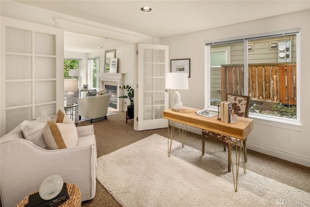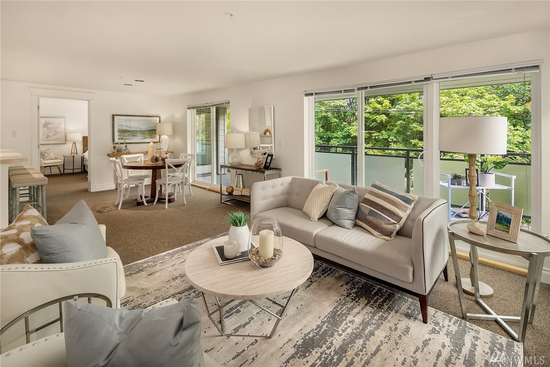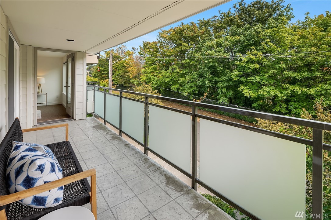 Chic 2-bedroom 1,446 sq ft condo in boutique building, Benson on Magnolia. Living room has gas fireplace and is lined with floor-to-ceiling windowed walls that open to covered balcony with perfect indoor-outdoor flow. Open kitchen offers casual bar seating, built-in desk, and walk-in pantry. Both bedrooms are en suite; master has large soaking tub, walk-in closet, and balcony access. French doors off living room lead to office. In-unit W/D; 1 garage parking spot; storage space.