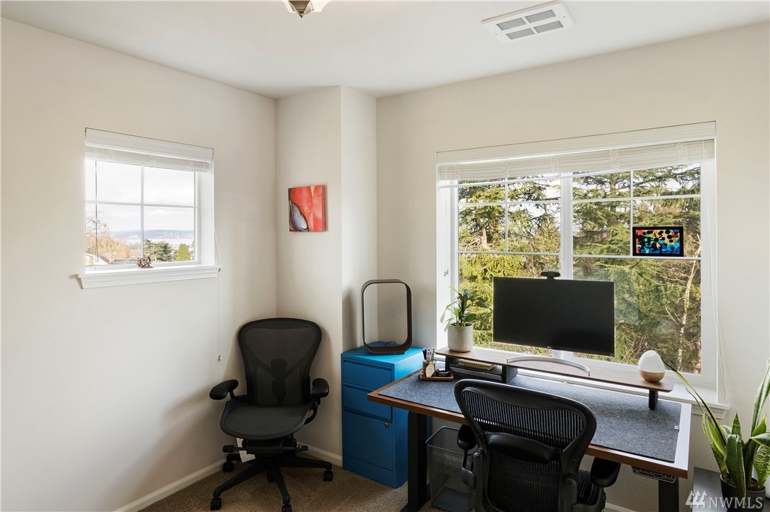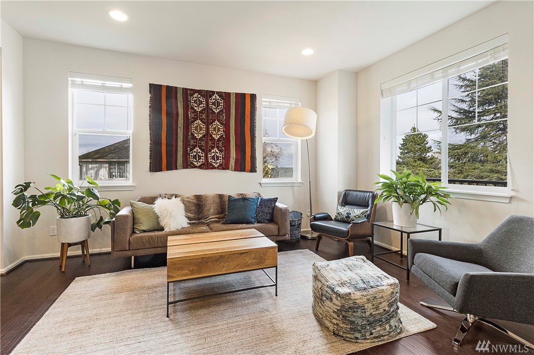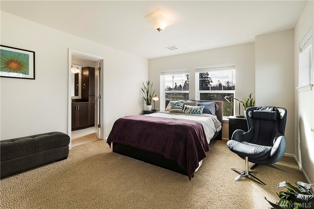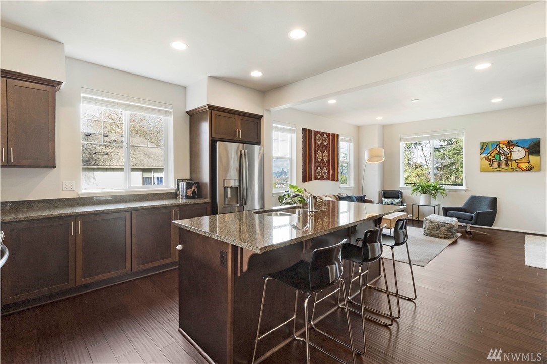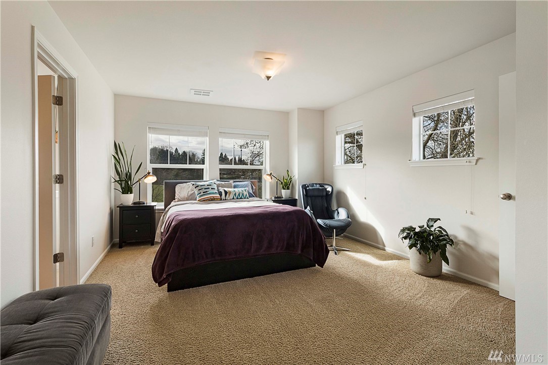 Stunning, end unit townhome with city views situated across from picturesque Hundley Park. Soaring ceilings and tons of light invite you into this beautiful home. Spacious kitchen with large island, slab granite, stainless appliances, gas range, and tons of storage. From the large living room step out onto the private deck and enjoy privacy and city views. Upstairs find good size master suite with upgraded walk in closet, 2 additional bedrooms and laundry. Lower lever find 4th bedroom and full bath which creates an excellent private suite for guests or den/office. Other features include 2 car garage, covered front patio, mini split in living room for heating/cooling and fully fenced front yard. Easy access and close to shopping, a must see!