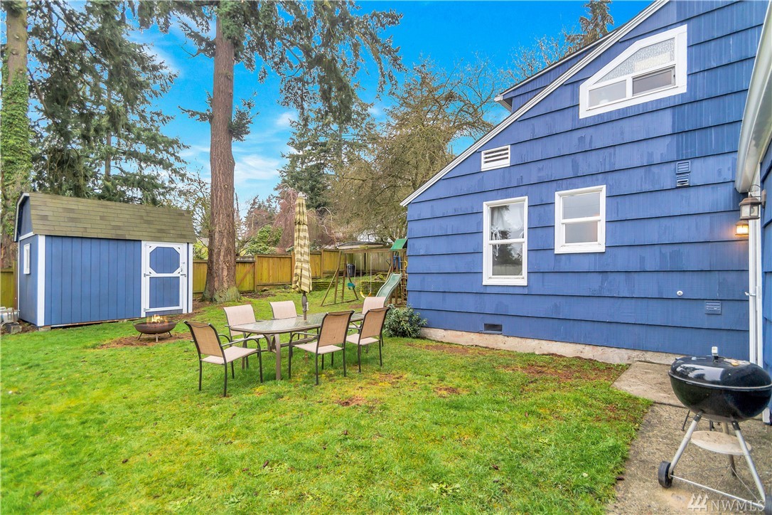 Mid-Century Lovell home known for their solid construction. Light and bright 3 bedroom 1.75 bath. Refreshed kitchen with quartz countertops leads into your dining room. New family room perfect for movies, guests and work/school from home. Large low maintenance backyard ready for a bbq, games or a nice book. Cozy up next to the fireplace in the living room. 2 bedrooms and a full bath complete the main floor. You won’t want to miss the private second floor suite with built-ins, dressing room, 3/4 bath and extra storage under the eaves. New 40yr roof and gutters 2019, water heater 2020. Fantastic location close to I-5, 99 and future pedestrian overpass to 148th light rail transit station. Walk to parks, shops and restaurants. Welcome Home!