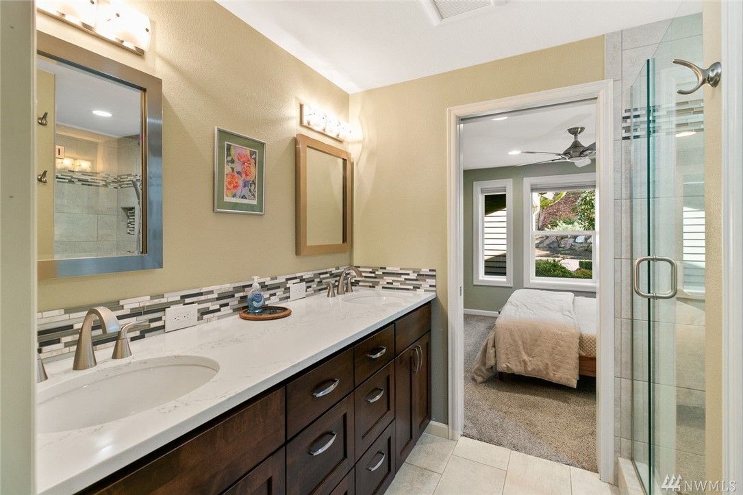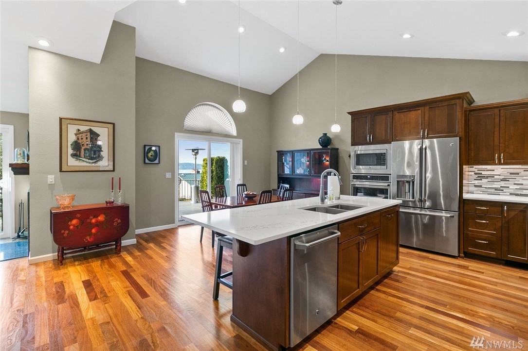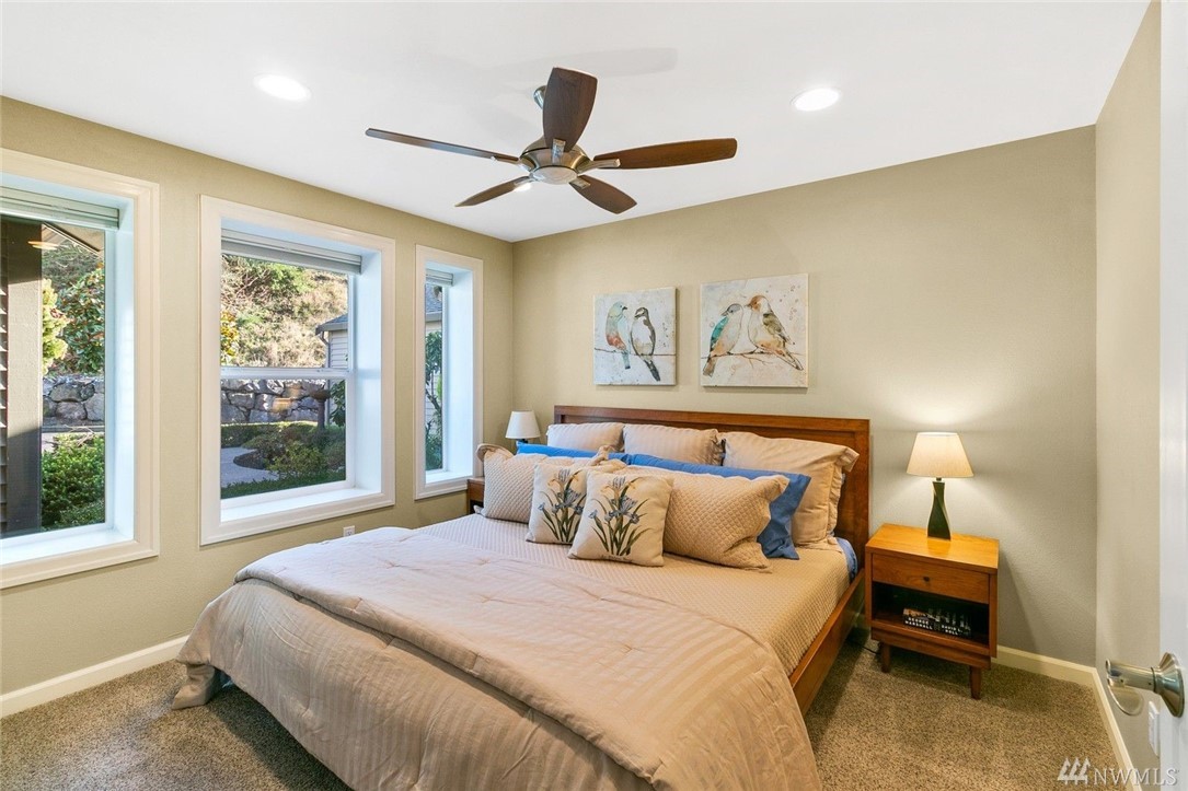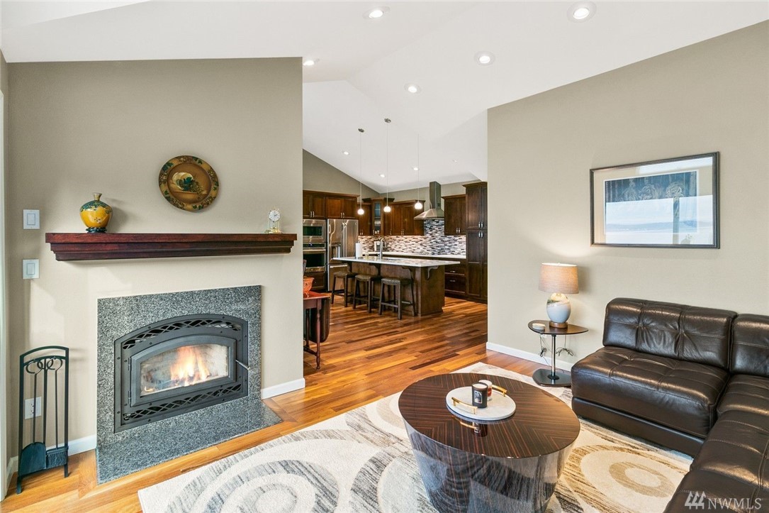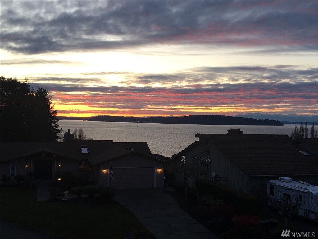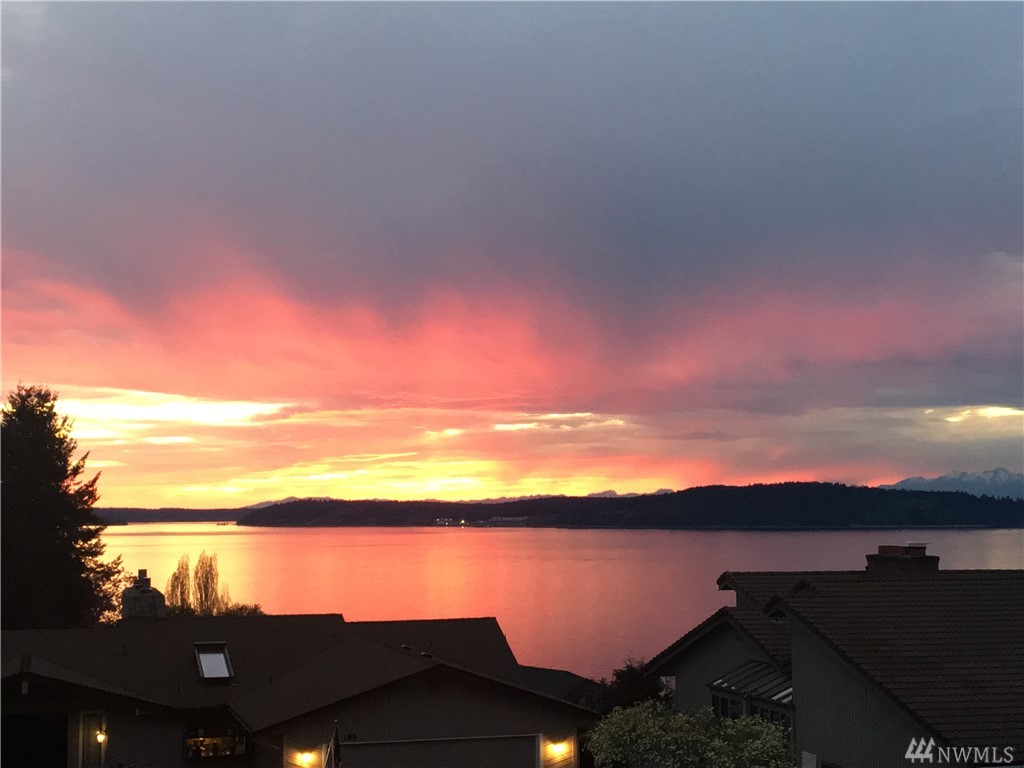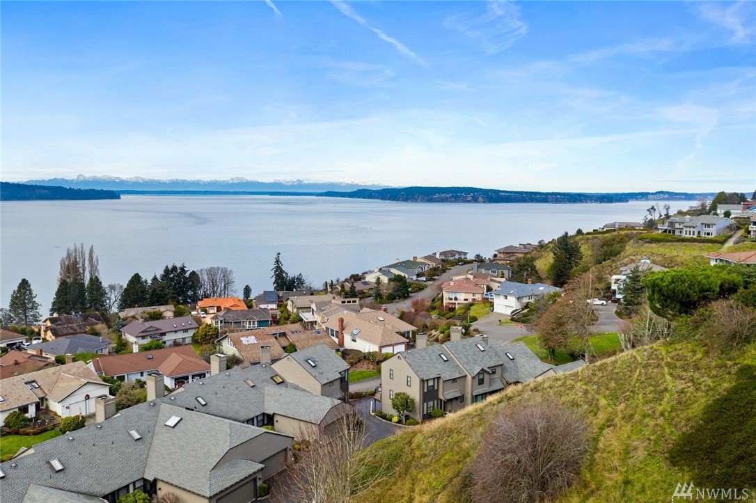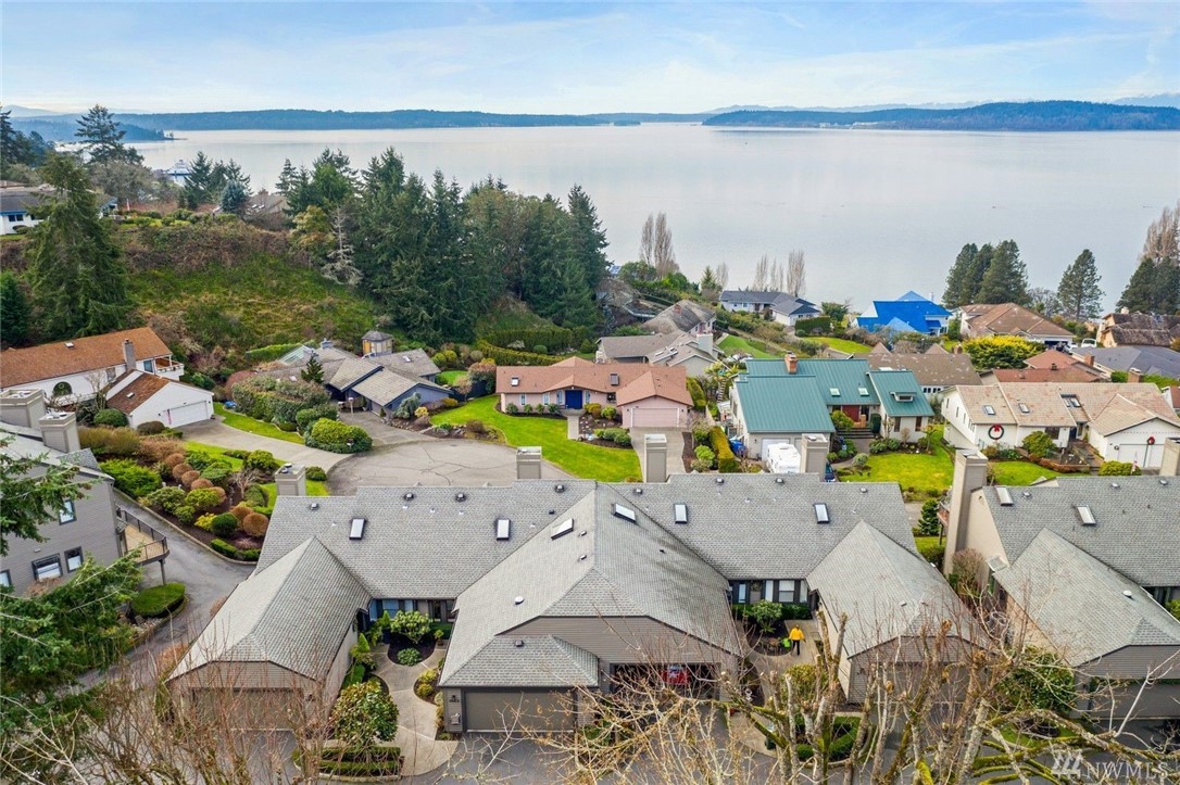 Enjoy a panoramic view of Puget Sound, Islands & Olympics next to your cozy fireplace. Safe, quiet, friendly neighborhood. Well-maintained buildings & grounds. Top to bottom remodel completed in 2016, with all new: custom cabinets, SS appliances, quartz/granite countertops, solid teak hardwoods, carpets, tile, windows, doors, heat pump, air handler, upgraded electrical panel w/generator panel. Attached 2-car garage with lots of storage. VA approved condominium.