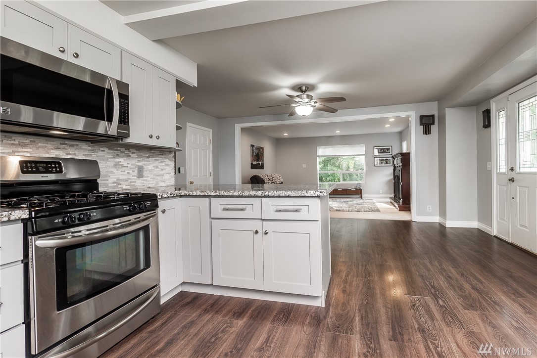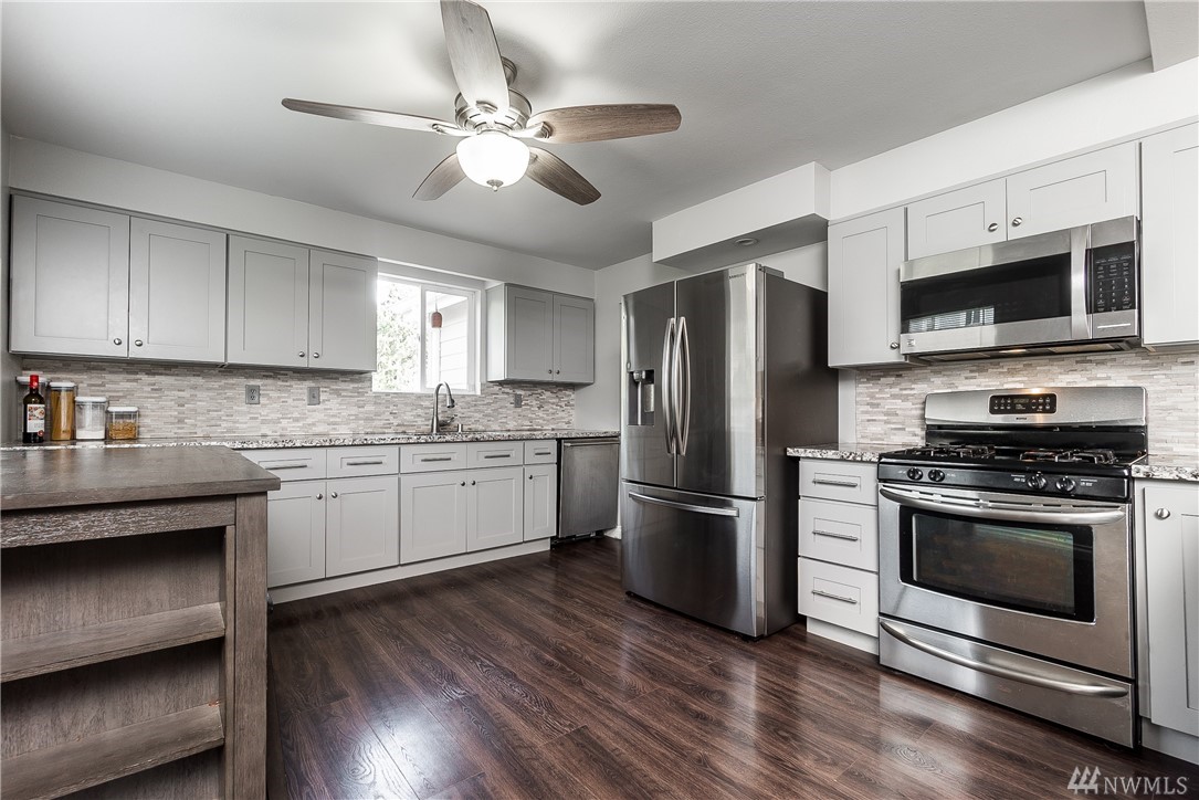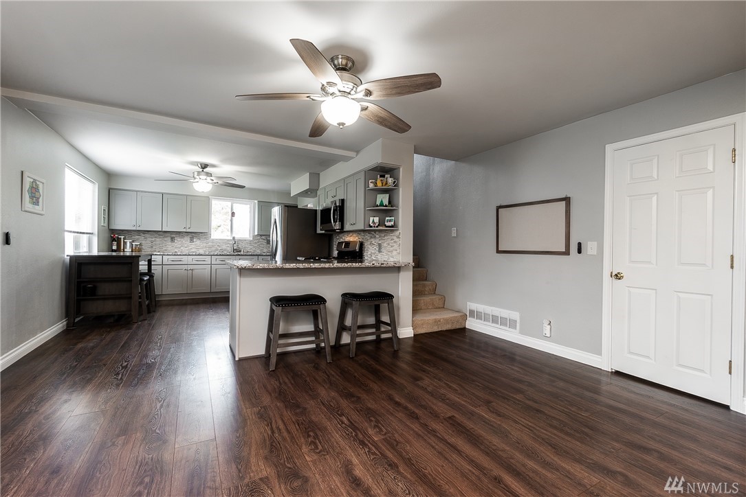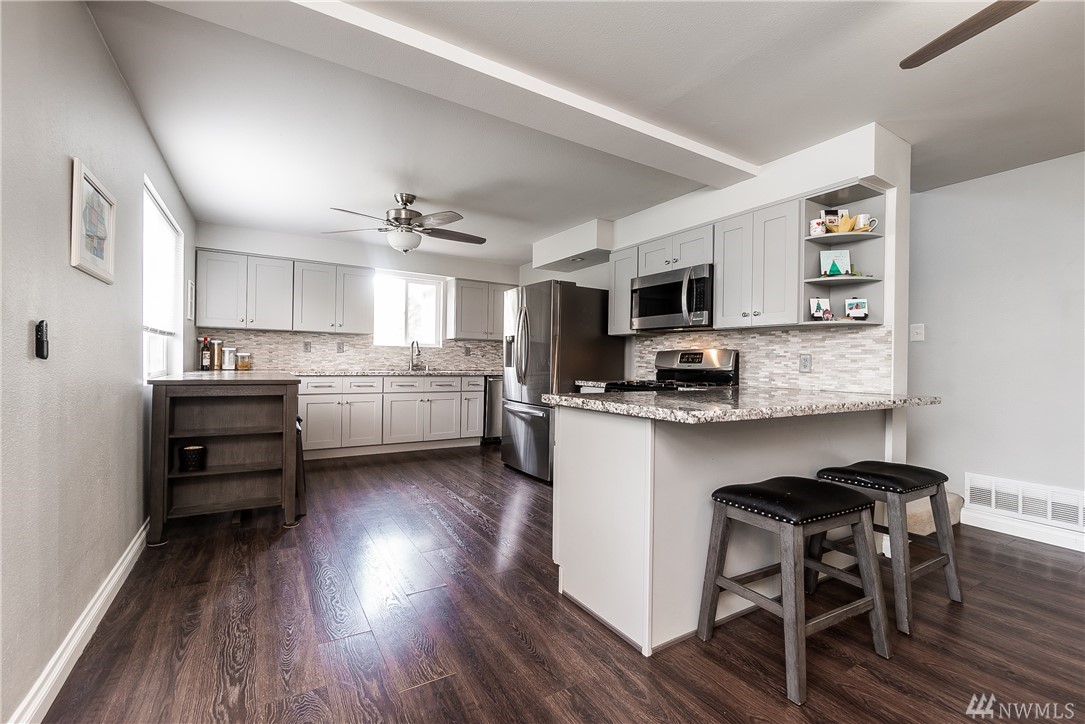 Beautifully remodeled Craftsman. New siding, 50 yr roof, new decks, new paint inside and out, new furnace and AC unit, new carpet downstairs, Upgraded electrical panel all on over half an acre. 2-car detached garage & large shop, green house & chicken coop. Kitchen remodeled, eating bar, open concecept w/cozy fireplace, 2822 sq ft, 4-bedrooms, 2-extra finished rooms. Nicely finished family room w/wet bar, 2-bedrooms, Rec room with kitchenette perfect for multi gen living or house hacking rent out the downtstairs. Plumbed 4 hot tub & gas available for BBQ easy access to 512 and convenient to shopping and Costco.