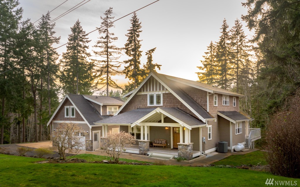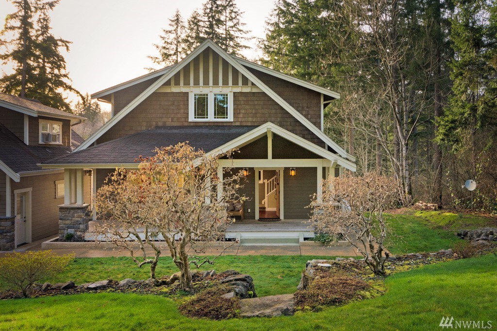 Charming Bungalow Craftsman gem with spacious rooms, high ceilings & multiple, well-appointed bonus spaces. This home gets an A+ for its warm finishes & practical design. Now more than ever, it is all about the flow. An attractive hearth greets you in the living room which opens to the dining area, large gourmet kitchen & cozy den. Almost every room on the 1st floor connects to the covered wrap-around porch (essential for entertaining year-round in the PNW). The upstairs bedrooms are all light & bright with the primary suite featuring a luxurious bath & walk-in. Working from home? The 1,200 sq ft daylight basement was created for that very reason. Large guest suite above the garage. Pretty, low- maintenance landscaping and tranquil setting.