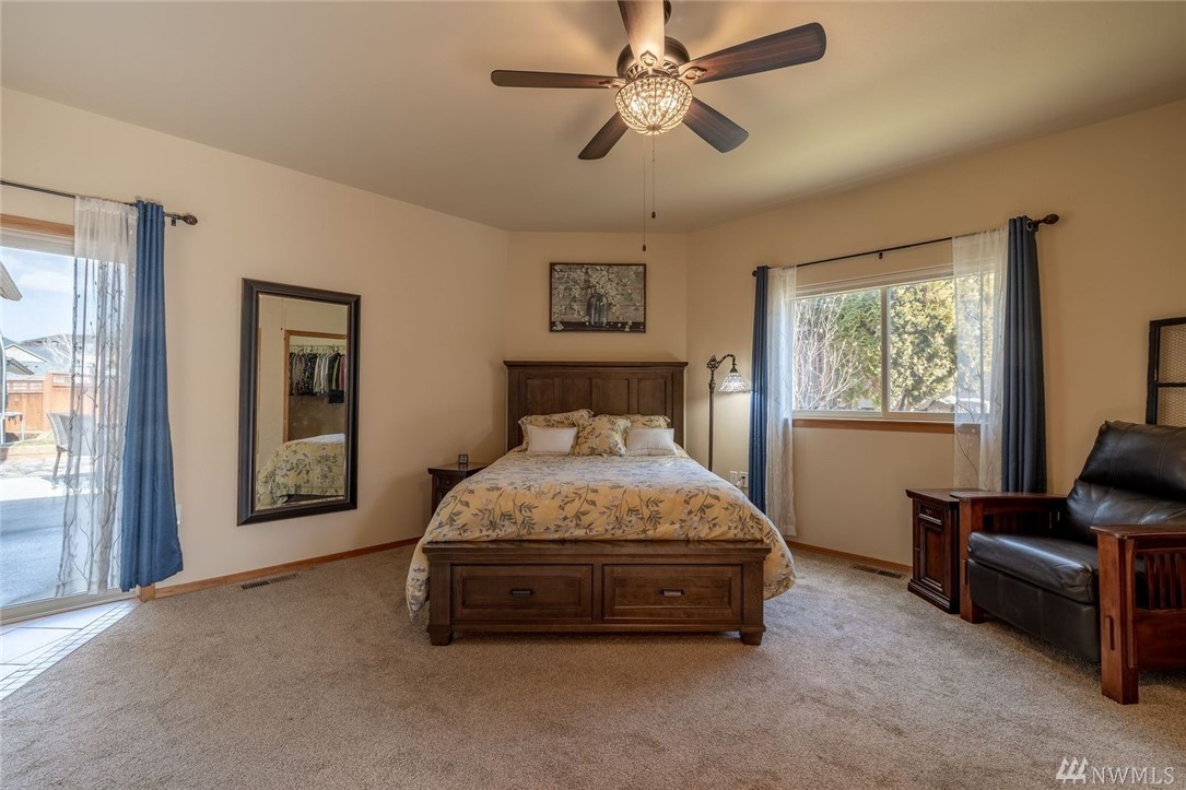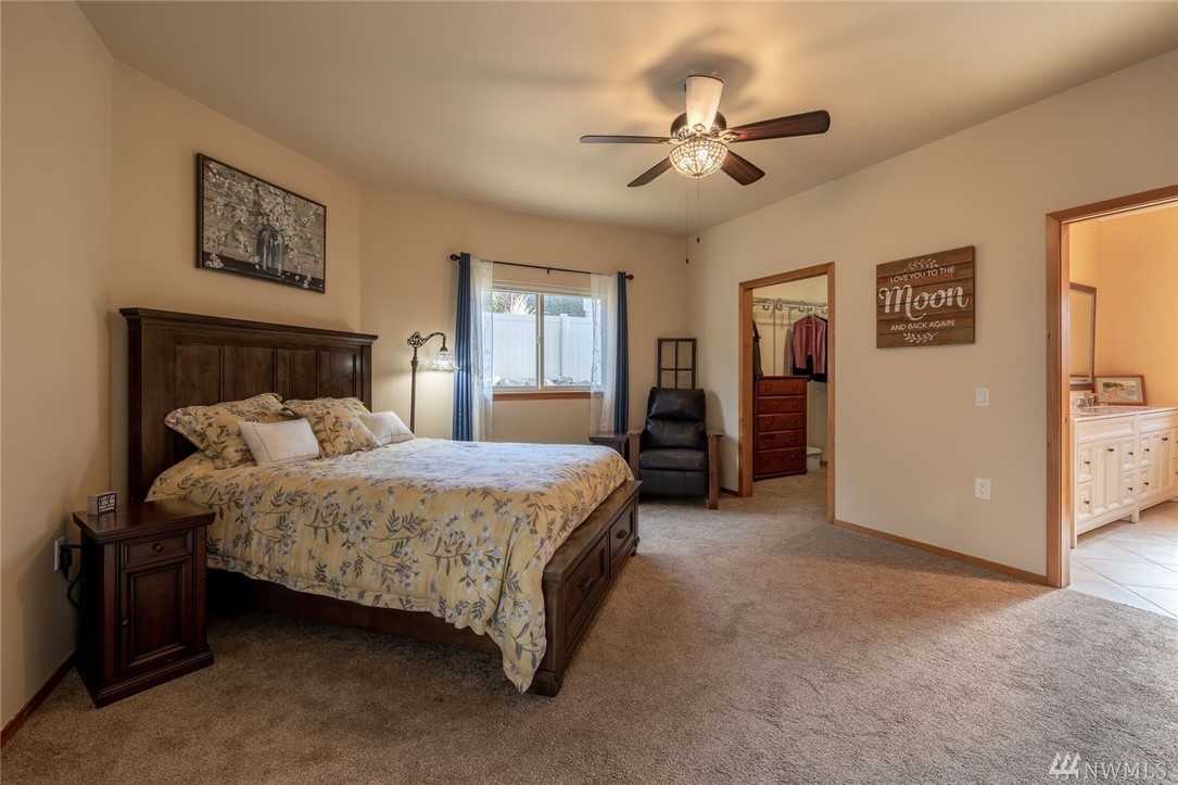 Mountain views! Kick back, relax in your fully fenced, beautifully landscaped back yard oasis. Waterfall feature will lull you into calmness after a long days work. Spark up the BBQ, enjoy an evening of privacy on your back patio. This lovely home has room to roam. Freshly painted inside & out. Fabulous main floor master bedroom features huge walk in closet & en-suite bath. Beautiful maple hardwoods, tile flooring, cozy fireplace in the living room. Granite counters in kitchen with large walk-in pantry, extra wide doors/hallways for wheel chair access. Attached garage with ample storage space. You will love the garden areas, yard is fully irrigated plus RV parking. All of this on a nice, quiet cul-de-sac within walking distance to school.