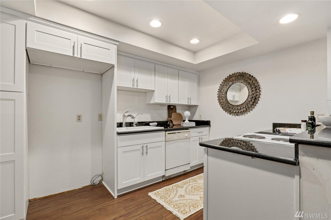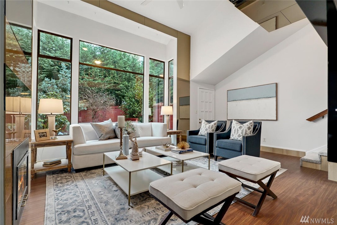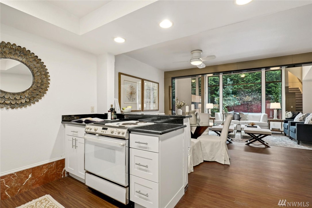 Great beginnings in the heart of downtown West Bellevue location! Newly updated in January 2021; New kitchen cabinetry, granite slab countertops, hardwood floorings on the main level, carpet, fresh interior painting throughout, and new water heater. Open concept kitchen to the living room with fireplace, two-story vaulted ceilings, and huge windows overlook the private backyard garden and custom-built deck, attached 2 car garage. Come home to comfort and relax in a bright, sun-drenched large living space with convenient access to Bellevue's downtown lifestyle. Must-see to feel it!