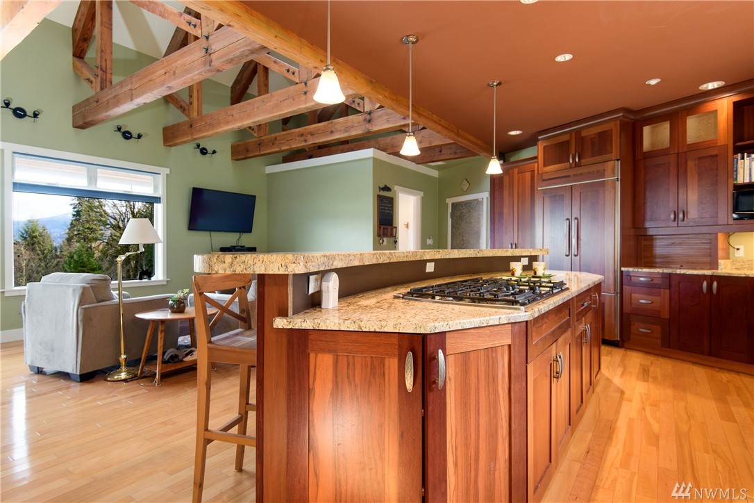 Stunning panoramic views of Cedar River watershed and Cascade mountains from this fully custom home. First time on market, offering contemporary Main Floor living & a modern twist to Craftsman design to make your home truly unique. Gorgeous kitchen especially designed with the Chef in mind; expansive Granite counters, 15" Deep Frameless Brazilian Cherry Cabinetry, Built-in Kitchenaid Fridge, Double Oven & so much more! Enjoy sweeping valley and mountain views from the spacious Main Floor Owner's Suite with private En Suite & walk-in closet. Tall 9' ceilings throughout. Upstairs the huge Bonus Room has an elevated Gym and separate Flex Room. Additional Studio with 3/4