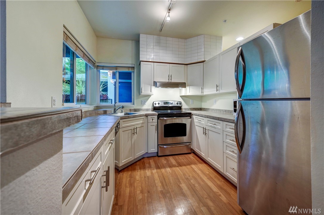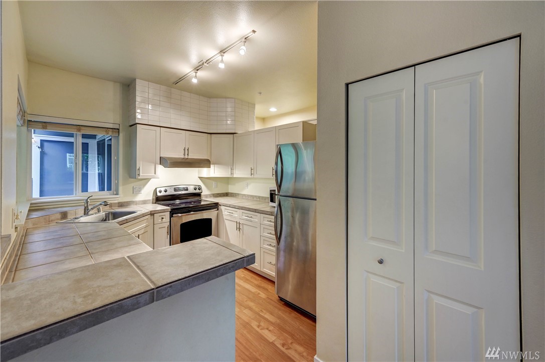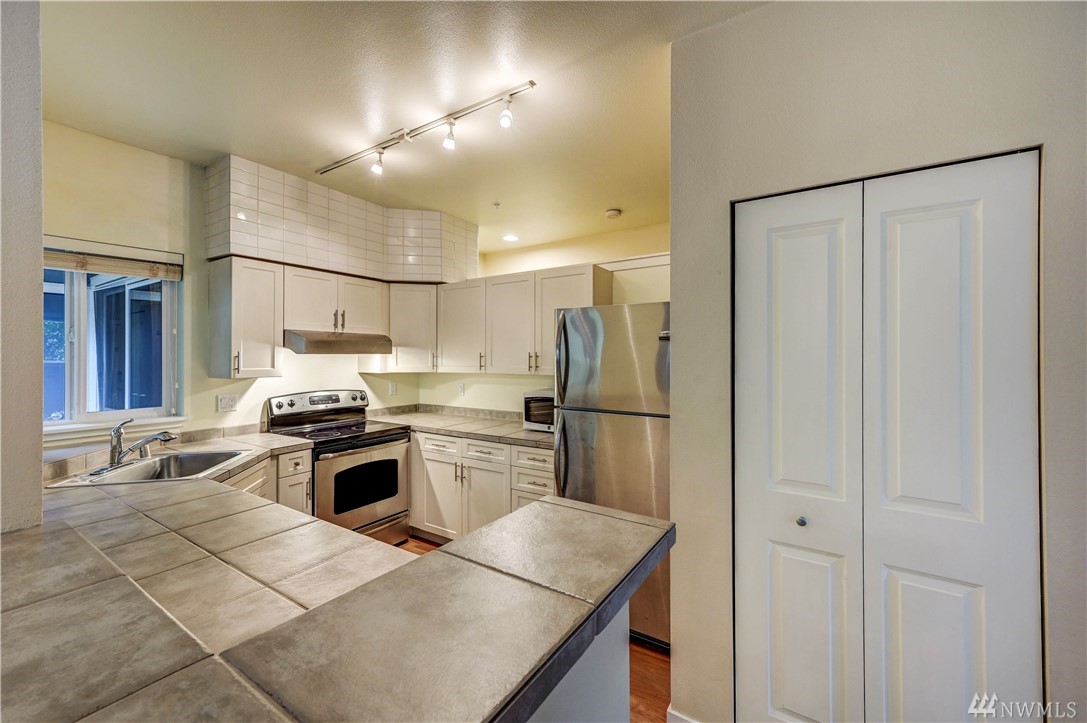 Beautiful ground floor corner unit in Bothell's coveted Cambria Hills- near I-405 & Bothell UW! Rare 9ft ceilings and open-concept lifestyle give a feeling of spaciousness. Private patio off the dining area, cozy fireplace in living room, featuring a community clubhouse, pool, and gym. Stainless steel appliances, 2 parking spaces (one is a carport), plus a large pool, exercise room, & an upscale cabana area. Amazing, affordable complex and unit!