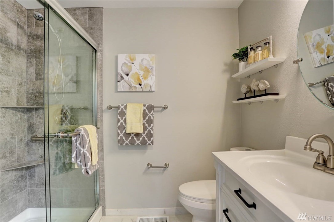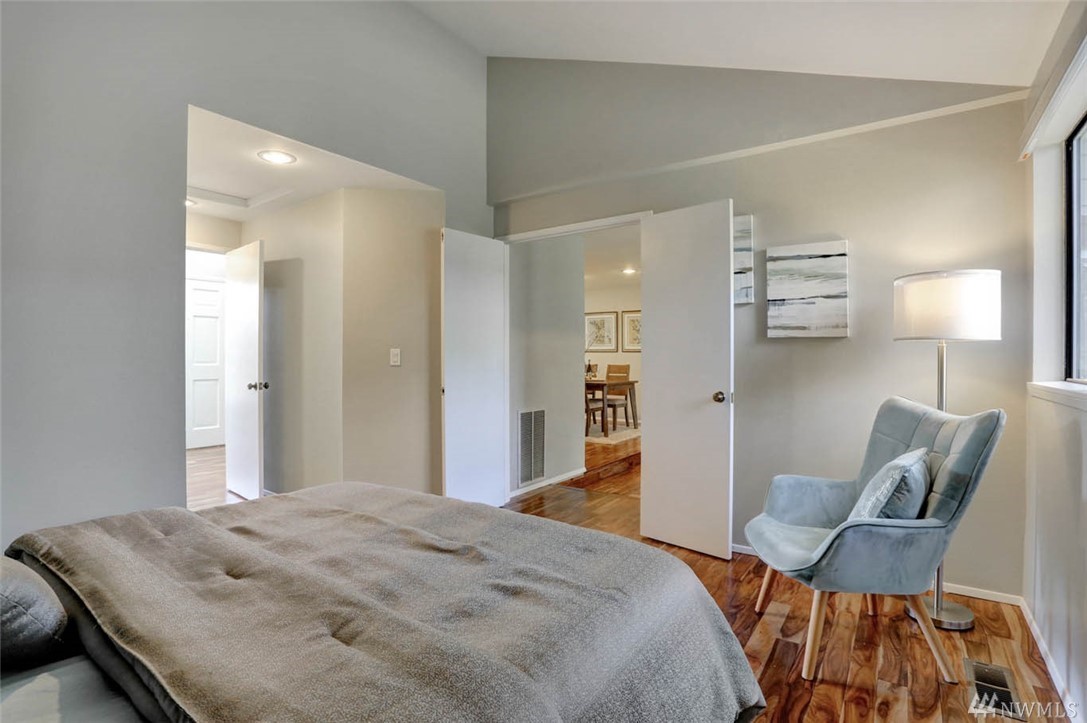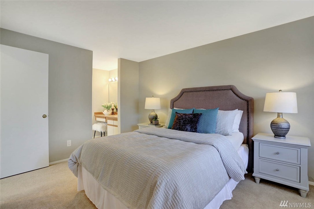 Come see this one of a kind townhome. This gem is centrally located in the heart of Bellevue and boasts features hard to find in townhome living. There are 2 master bedrooms, one up and one down, both with walk in closets. Your own 2 car attached garage with opener makes it easy to come inside from the rain. A private back deck and no neighbors above or below make for your peaceful serenity while at home. The kitchen has been updated along with a master bathroom. New flooring and paint throughout modernize this townhome beautifully. Accessibility is a breeze. The roads, driveway, garage, are flat with only one stair to enter the unit. Don't miss out on the conveniences of this home!