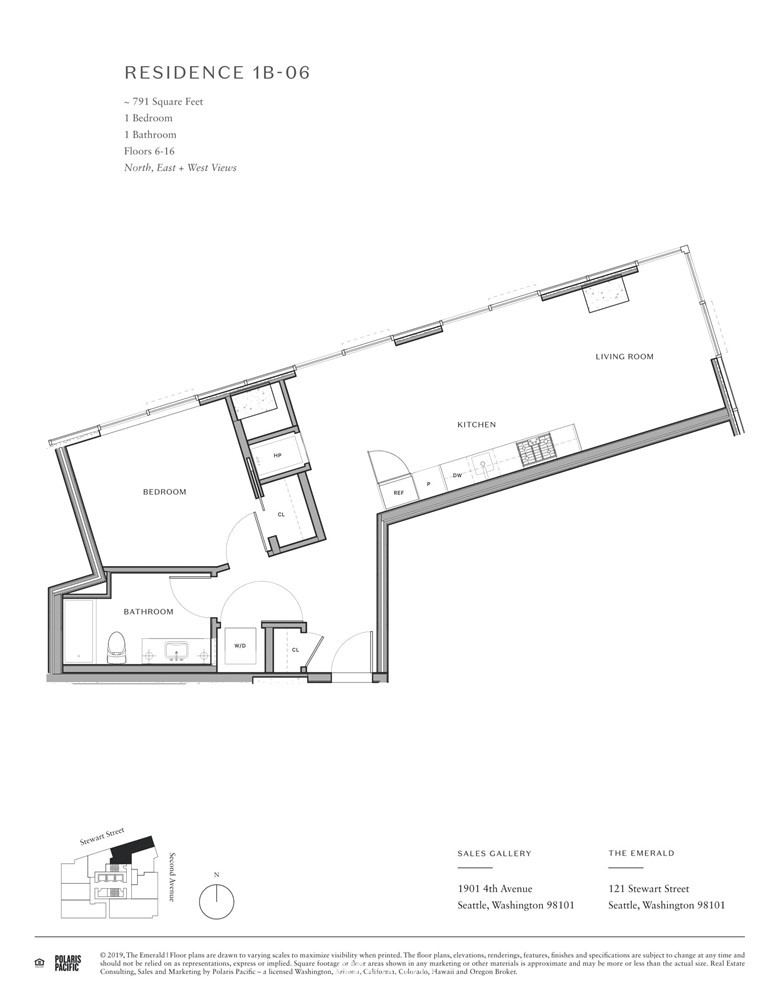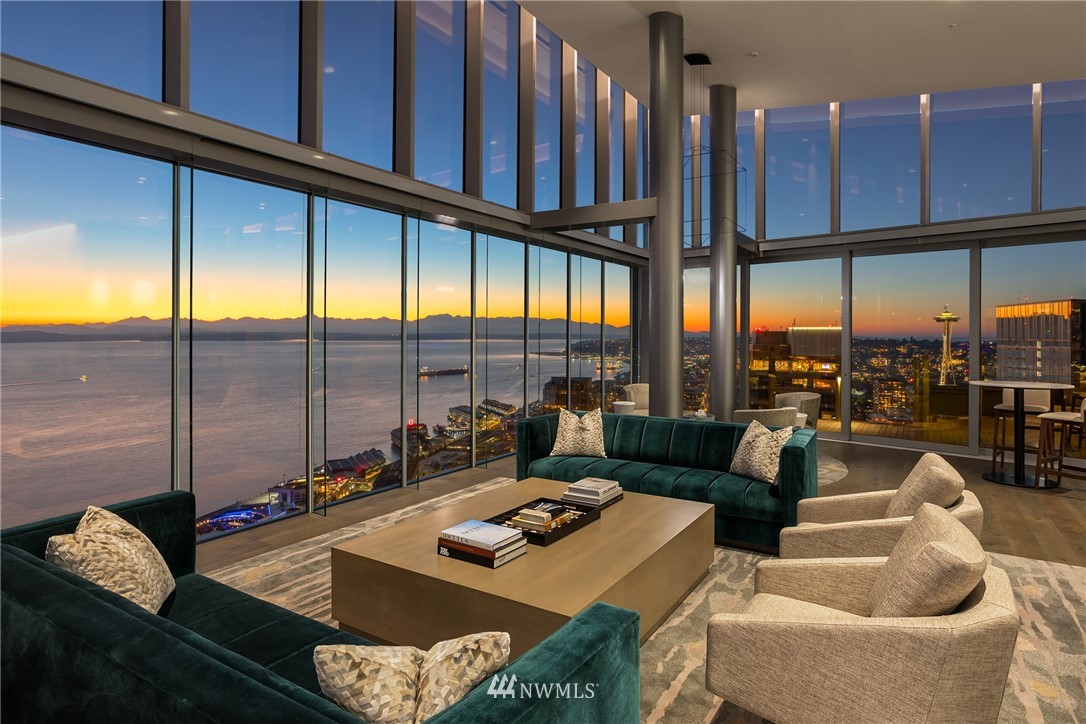 Corner unit with city and water view. Lots of windows and natural light. The Emerald is Seattle’s premier address, 1 block from Pike Place Market, 2 blocks from waterfront, with breathtaking panoramic views. Studio, 1, 2, & 3-bedroom homes are available ranging 570-1,779 sqft. Homes include walnut kitchen cabinets, oak floors, full-size W/D, Latch keyless entry, & floor-to-ceiling windows. Amenities include fitness center, yoga studio, pet run & spa, guest suite, electric carshare & rooftop indoor/outdoor lounge. Parking options available at The Thompson.