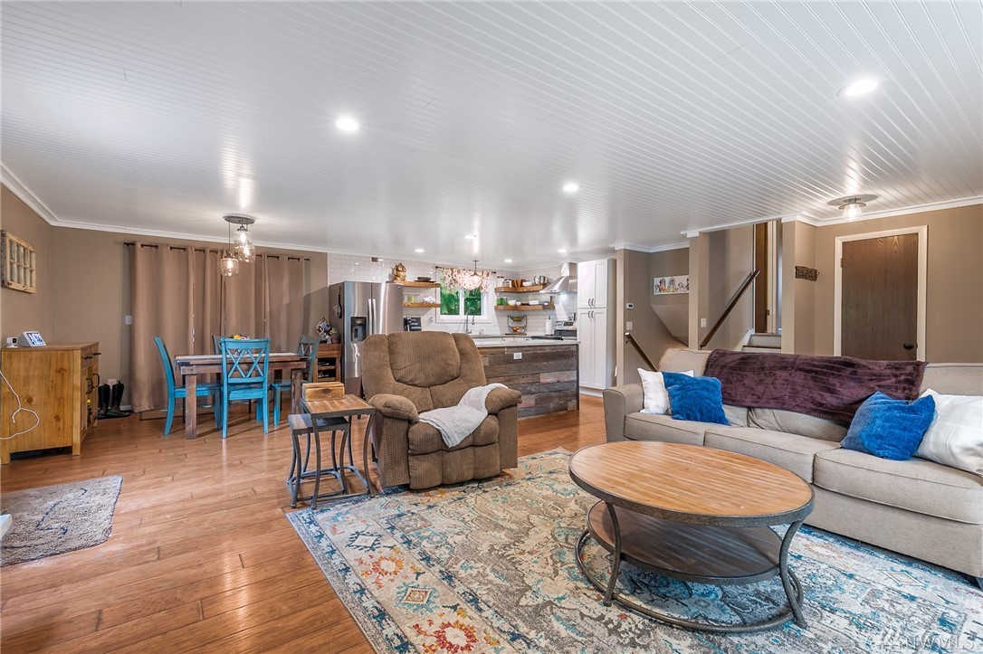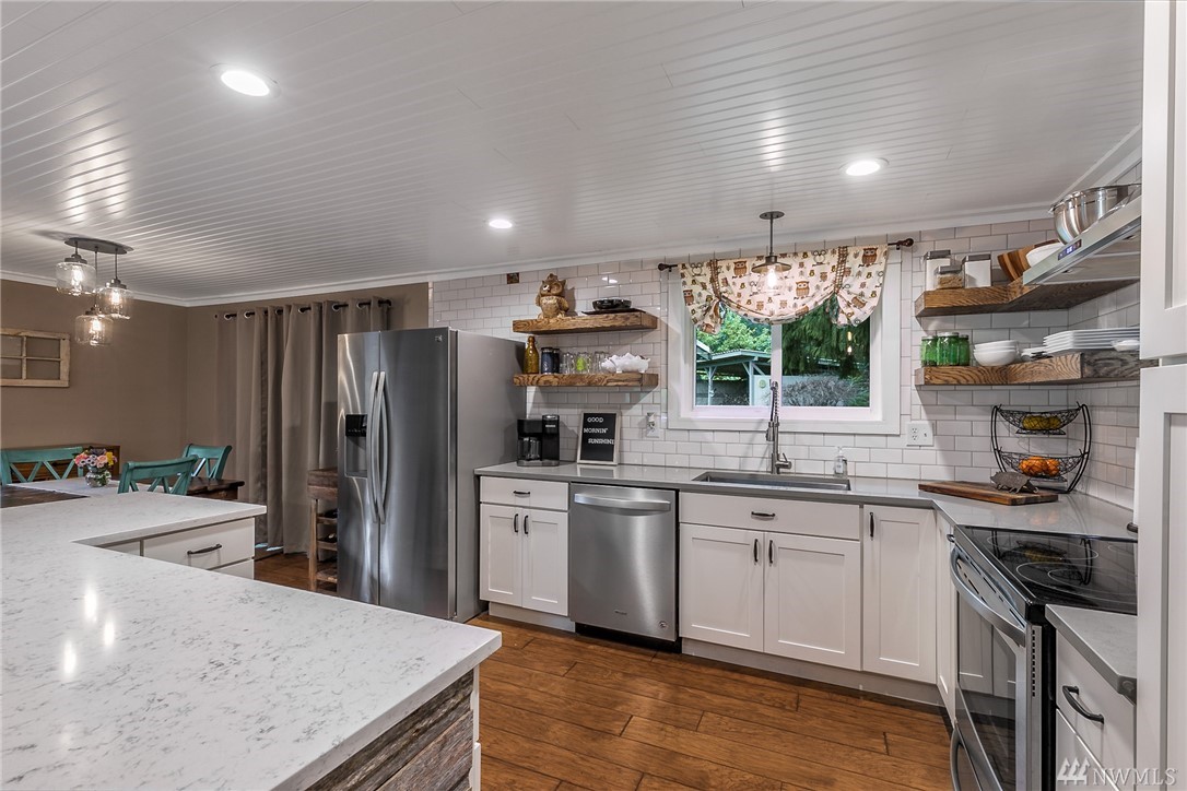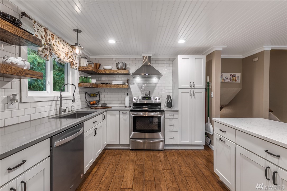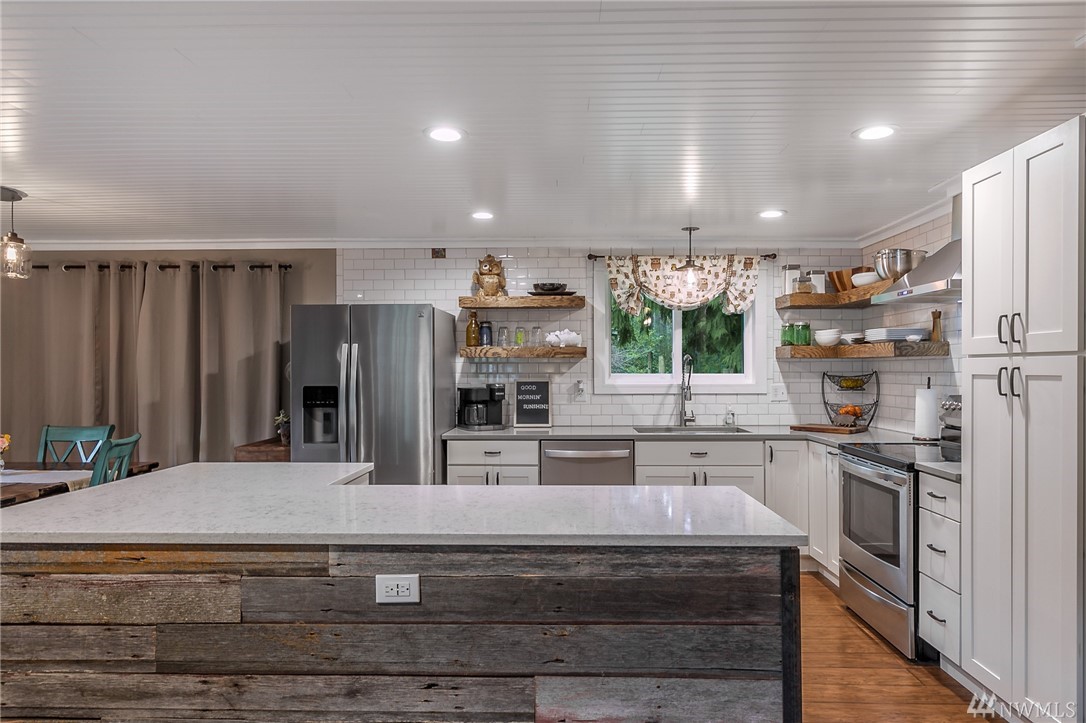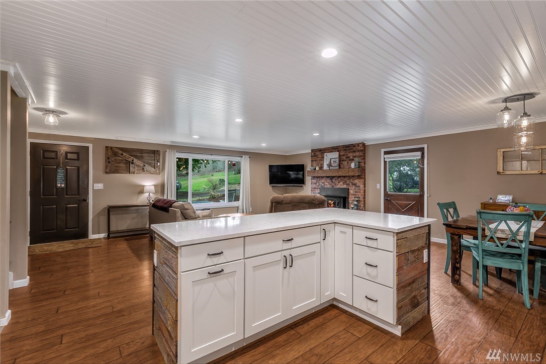 Little bit of country on this spacious 4.5 acre lot with spectacular mountain views & partial marine view.Home is positioned in a quiet location.Front door invites you to this open floor plan with 3 bedrooms & almost 2,000 sq feet of living.Newly remodeled gourmet kitchen has quartz counters, stainless steel appliances, soft close cabinets & floating shelves.Stay cozy with your wood burning fireplace.Lower level rec room which is great for guests.Perfect mini farm; bring your horses & animals, already cross fenced.Large barn, oversized detached garage & plenty of room for RV parking.Home has newer roof, updated windows, newer floors & interior paint.For commuters; close to town, SW Ferry & freeway.Call today for your private showing.