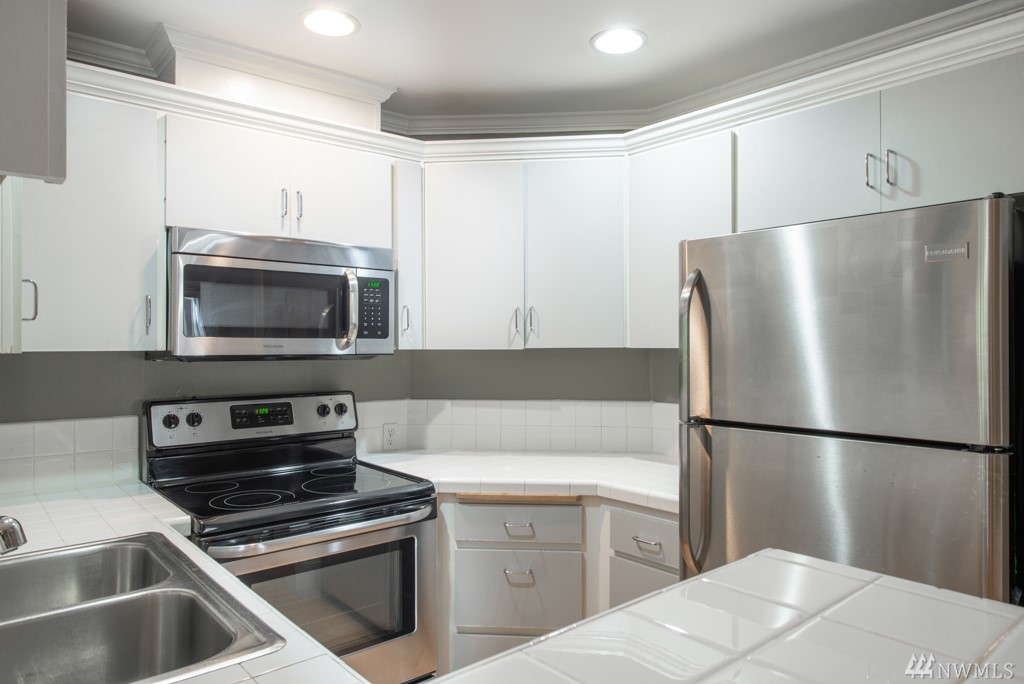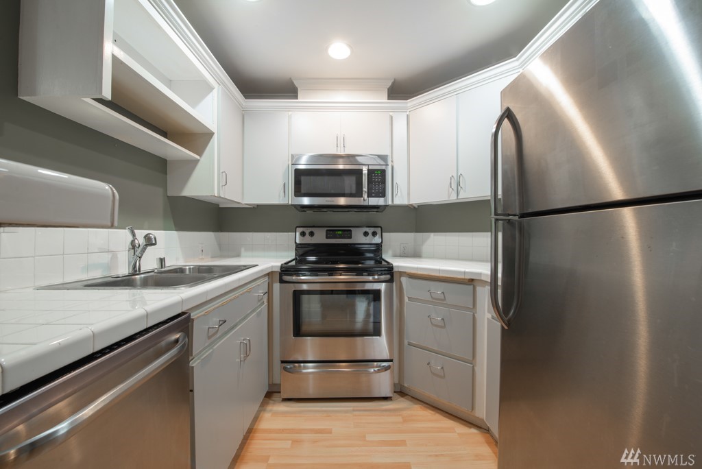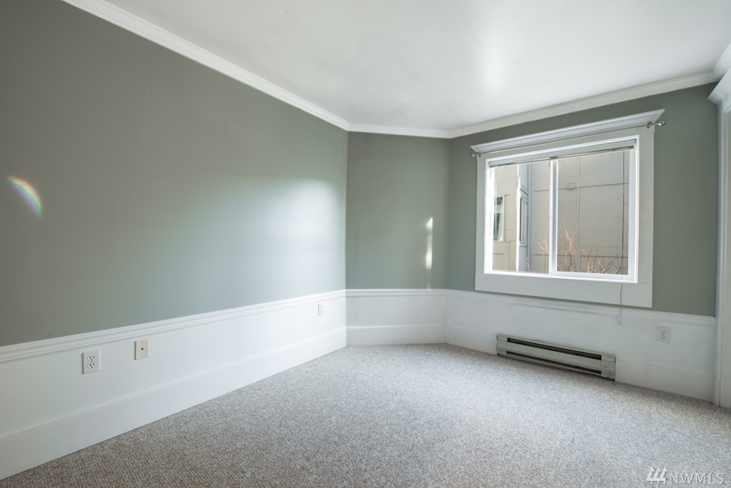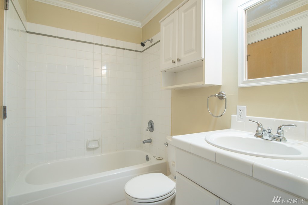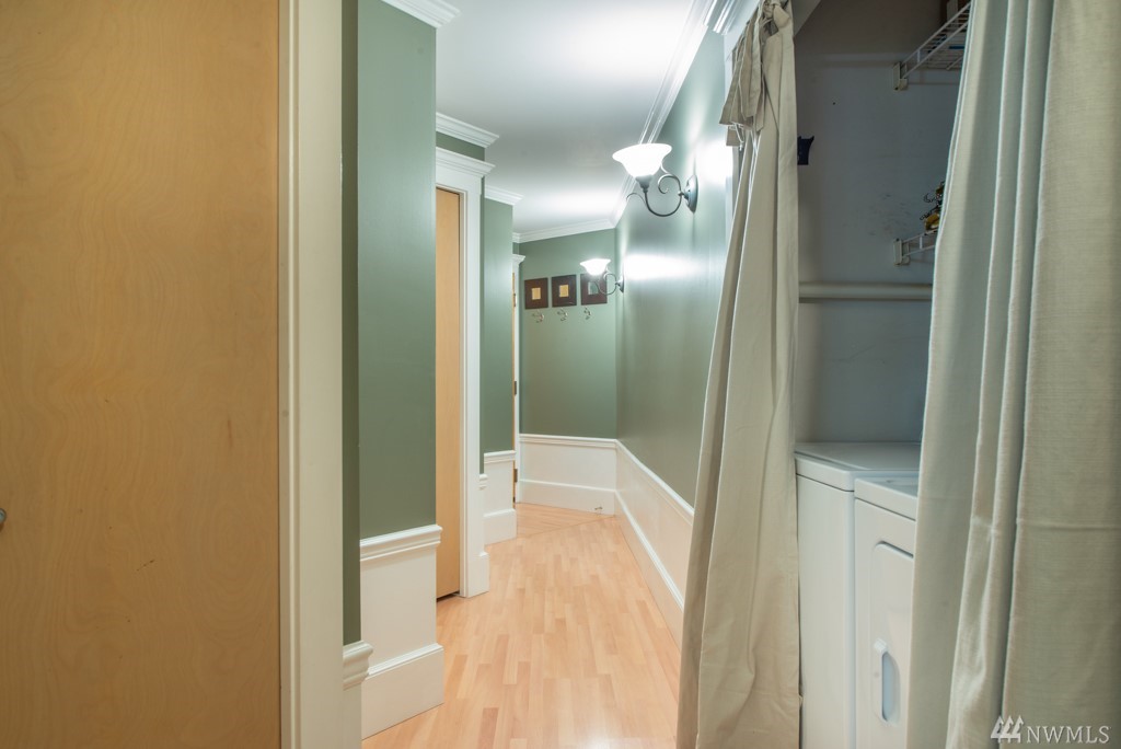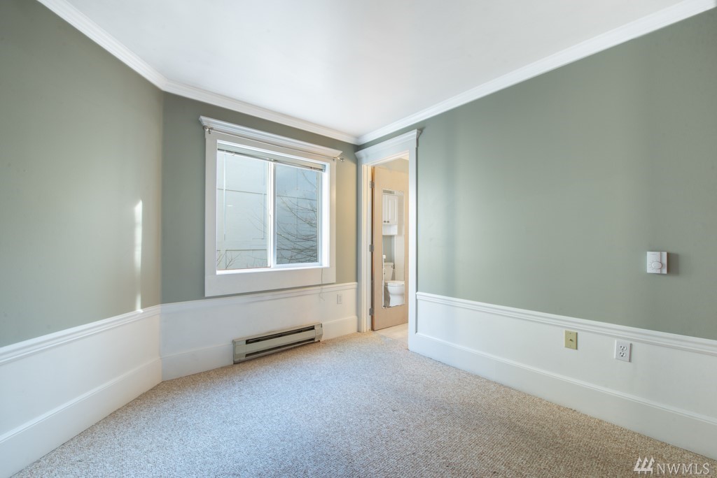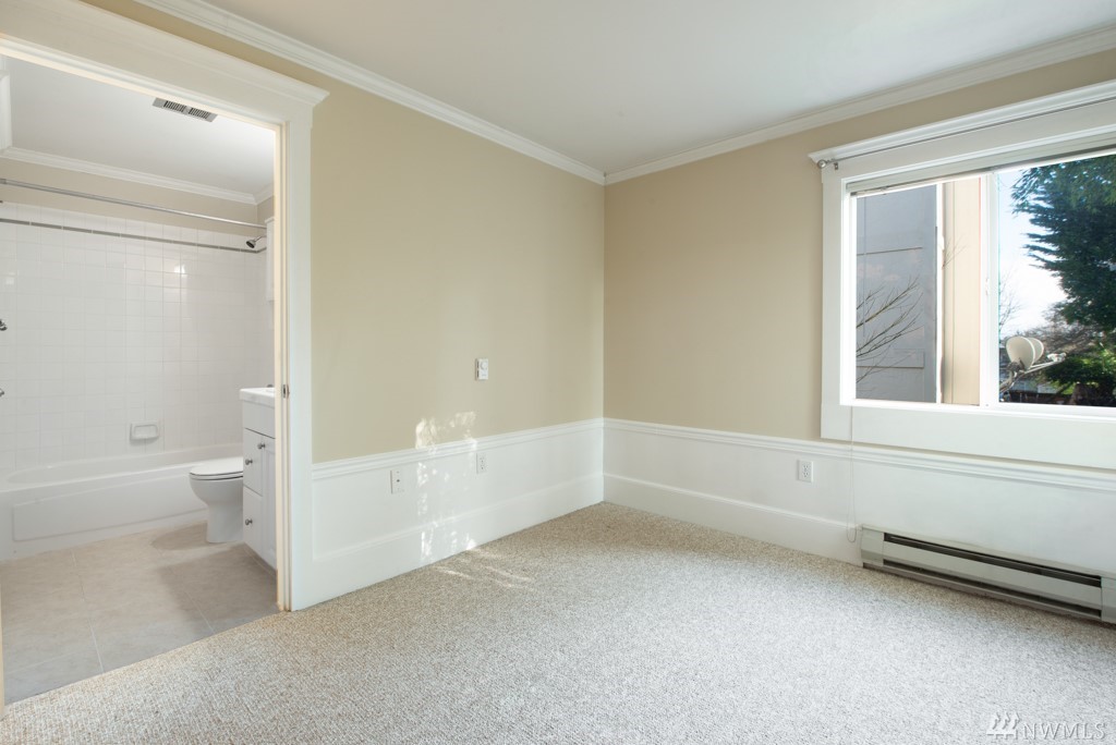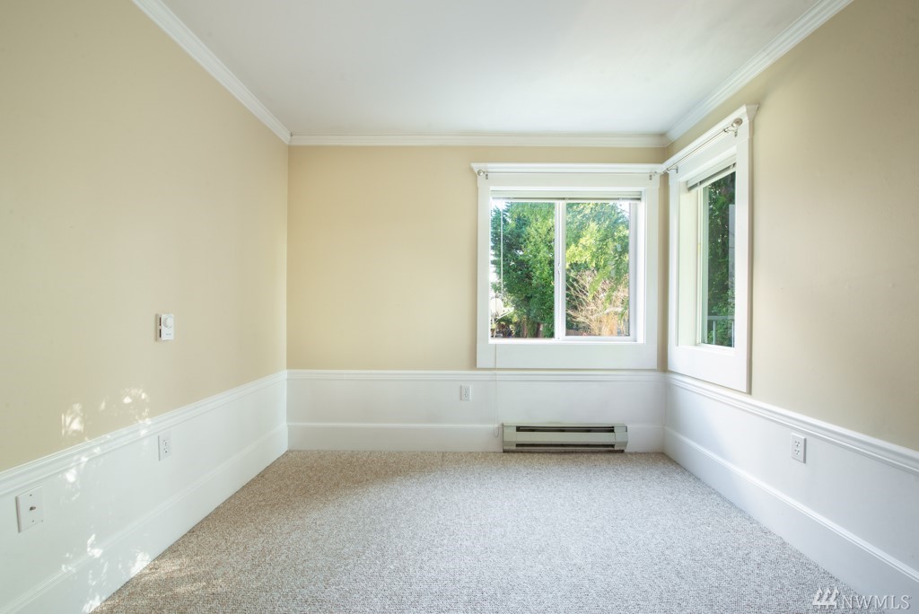 Welcome home! This double ensuite unit offers both privacy and convenience within the vibrant Greenwood neighborhood. Phenomenal natural light, cozy fireplace, private south facing patio and in-unit W/D are just a few of this home’s most desirable features. Crown molding through nearly every inch accentuates large windows. This unit boasts tons of storage and TWO parking spaces in secure garage. Conveniently located near public transportation and the amenities of Greenwood, yet also allows for an easy commute to downtown via Hwy 99 or I-5. Affordable HOA dues & small, boutique complex.