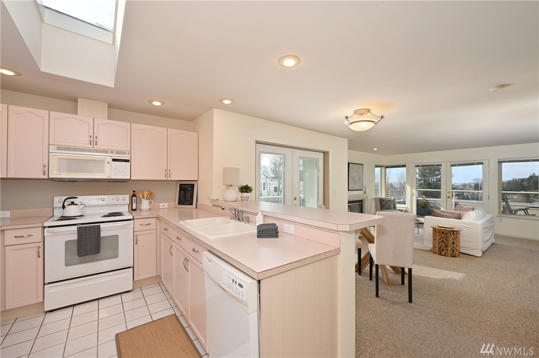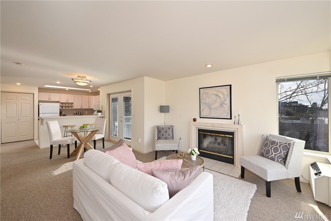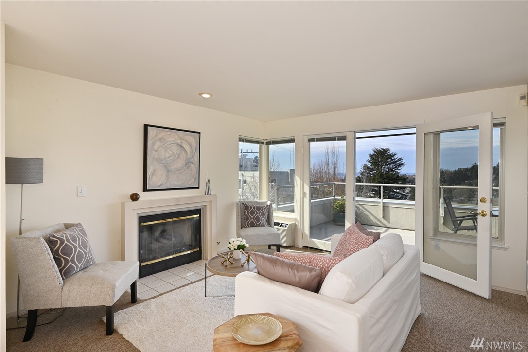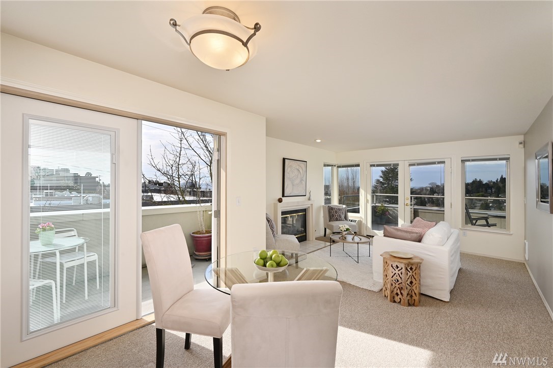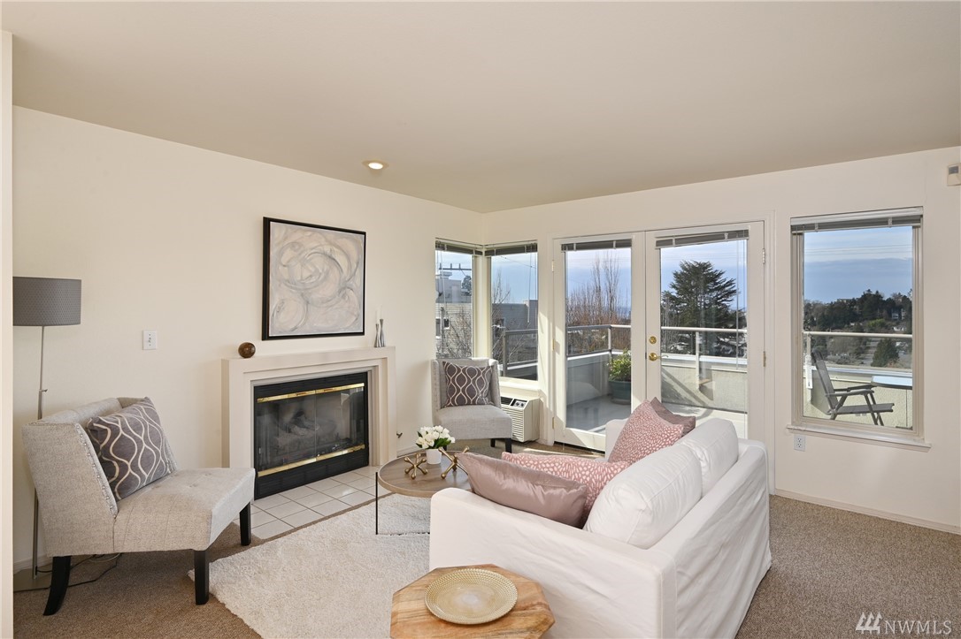 With an abundance of natural light, this South West facing top floor corner unit welcomes you to a truly special West Seattle living experience. Prime Junction location puts one close to numerous restaurants, shops, stores, all that you could want and need. This two bedroom two bath condo boasts a large West facing deck with ample room to host and take in the fantastic view. The large owner's suite opens to the deck and features a walk-in closet and a huge spa-like bath! Natural gas fireplace, a condo with an actual laundry room and 2 parking spaces in secure garage and storage unit. Well run HOA. Inspection report available. Welcome home!