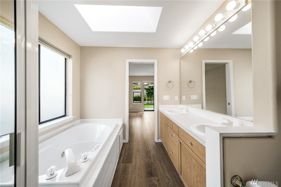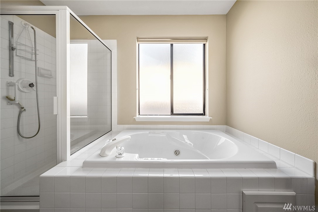 Well-maintained rambler in sought-after Park Place N. A 55+ gated community across from Point Defiance Park. This beautiful home features new laminate hardwood flooring and interior paint. Open floor plan w/ lots of natural light, kitchen w/ breakfast bar. All appliances stay! Slider off dining area leads to a 2nd patio. The master suite features a walk-in closet w/ custom built-ins & a 5 pc bath w/ jetted soaking tub. Slider off master opens to patio & private backyard oasis. Large den w/ built-in cab. Skylights in each bath & one in the kitchen. Utility room w/sink. There's tons of storage in the garage incl. pull-down attic space/ Fully Fenced yard, sprinklers, A/C, Doggy door, Vacuum system & more.