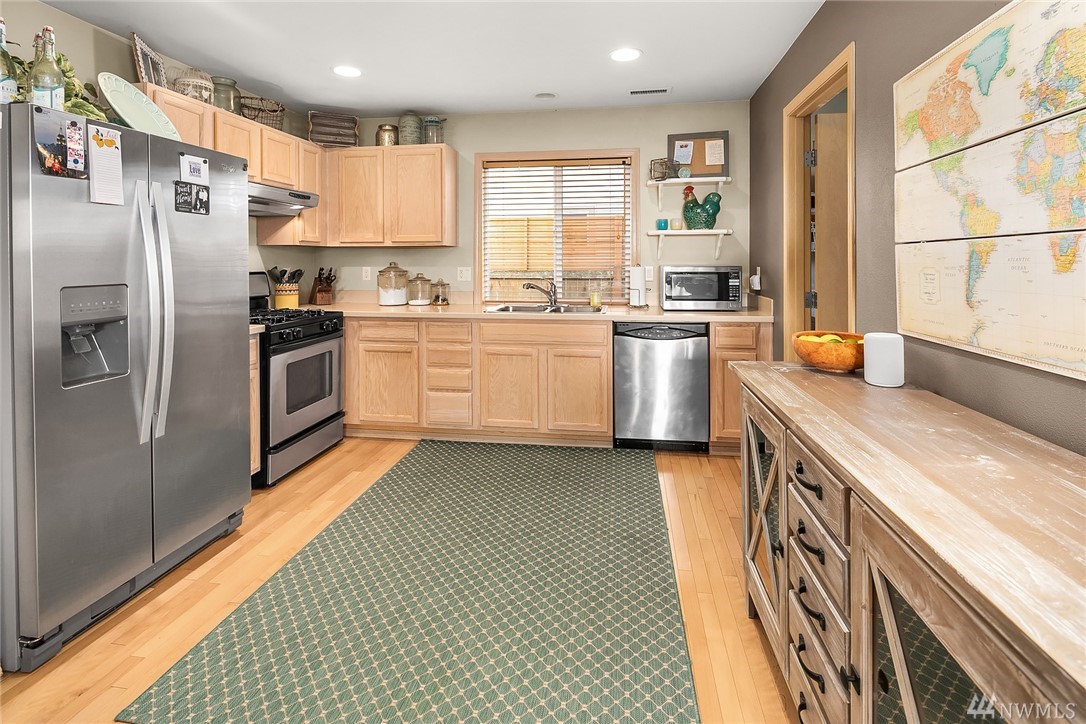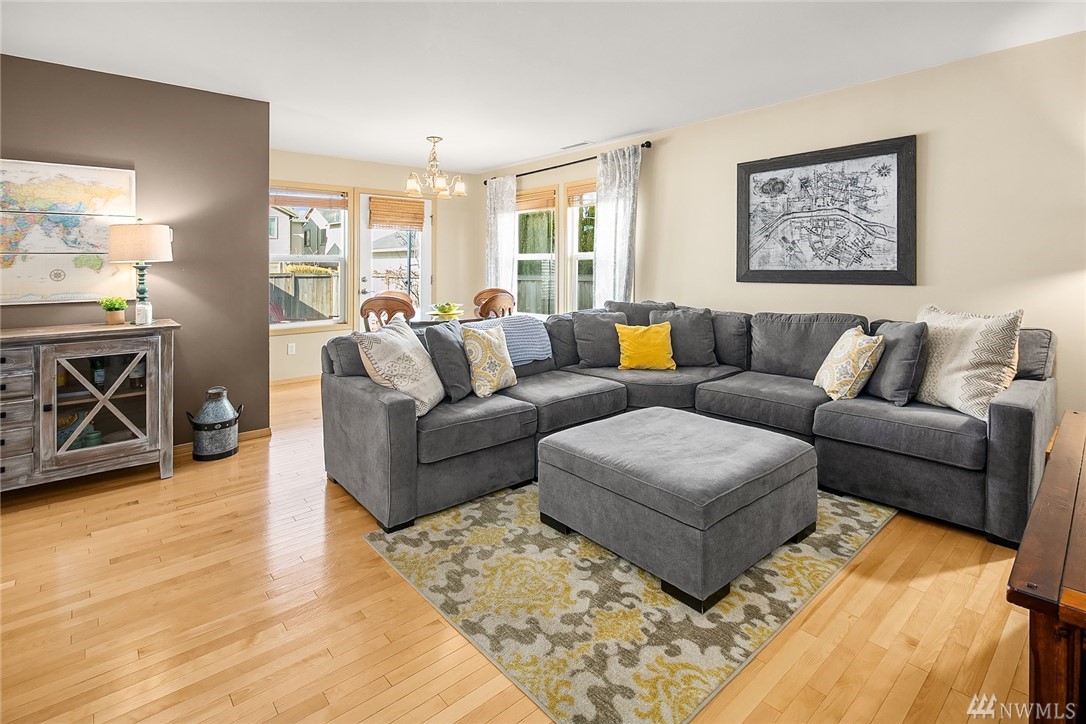 Gorgeous 3 bed 2 1/2 bath home in the HEART of Snoqualmie Ridge! REAL Hardwood floors on the main level. French doors lead to den/office on main. Open great room concept. Sunny & bright kitchen with stainless steel appliances including a gas range. Large dining nook with access to spacious, fully fenced backyard and patio. A perfect place for summer entertaining! Upstairs is complete w/ two full bathrooms, master suite w/ walk-in closet, double sinks and jetted tub! Two car garage on a private ally, close to parks, centrally located on Snoqualmie Ridge w/easy access to I-90. A perfect combination of convenient shops & dining just steps away from your front door. This is a must see! Welcome Home.