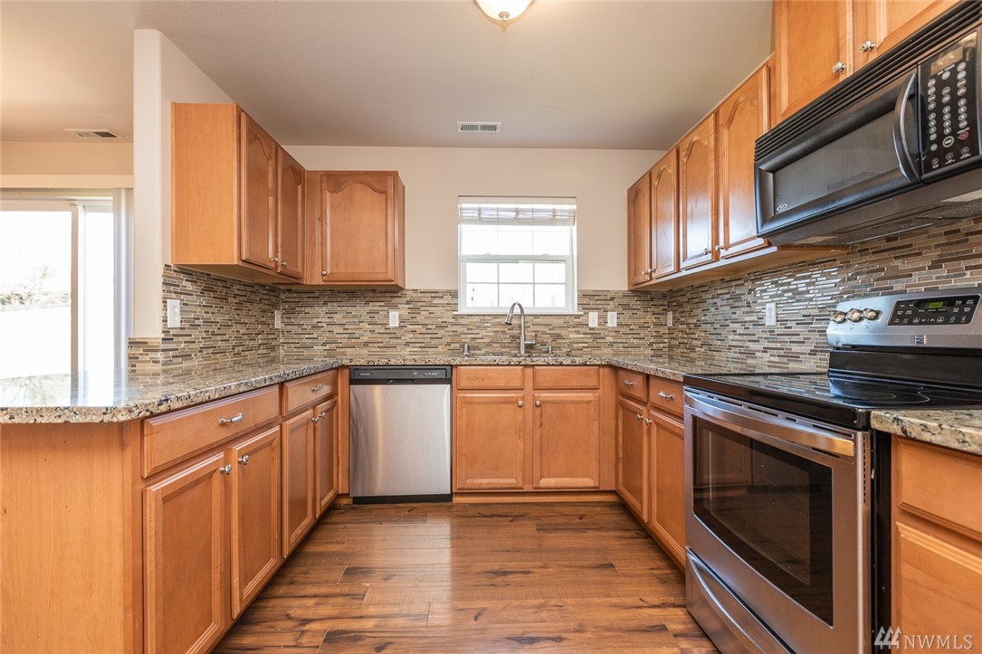 Don’t miss this fantastic Fairway Village home! This spacious two-story home lives large and has oversize family room and dining room which open to the kitchen. The kitchen features stainless steel appliances, granite countertops, custom backsplash, and a super-large walk-in pantry. The large dining room slider leads to the sizeable backyard and patio. You’ll love the master bedroom with connected private en suite and huge walk-in closet. The utility room is conveniently located upstairs near the bedrooms. This home is complete with a 2 car garage, back patio, front patio and easy-care yard. Great location in the north part of Graham, close to all the amenities that Graham and south Puyallup have to offer. MUST SEE!
