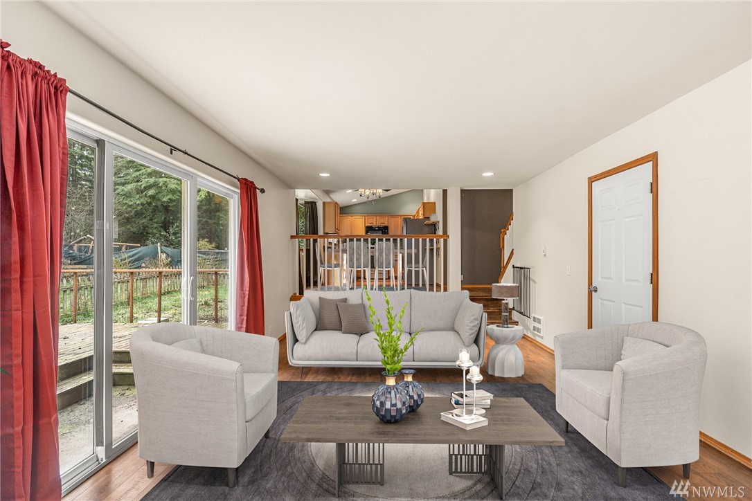 Darling, solid home on an excellent lot set back from the road for privacy! Updated granite counters in kitchen and hardwood floors throughout living areas. Tri-level floorplan, excellent for entertaining with lower level cozy fireplace and access to expansive back deck which is excellent for those summer afternoon and evenings coming up! Half of garage converted to additional bedroom, bonus room, workout room, etc! Large master with double closets and generous ensuite. Two other well-appointed bedrooms and main bath. Ample parking on long driveway. River access just across the street for fishing, wading, and exploring! Fantastic value in this location a short drive to hikes, 4x4 trails, rock climbing, and Stevens Pass!