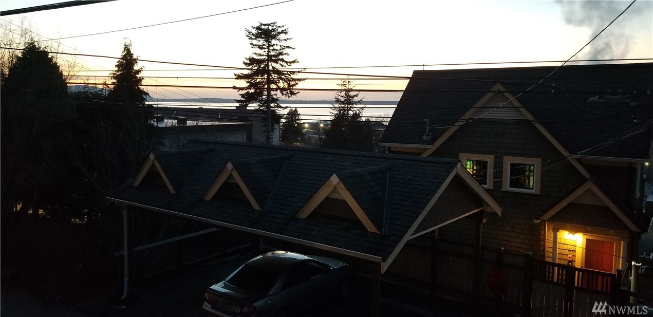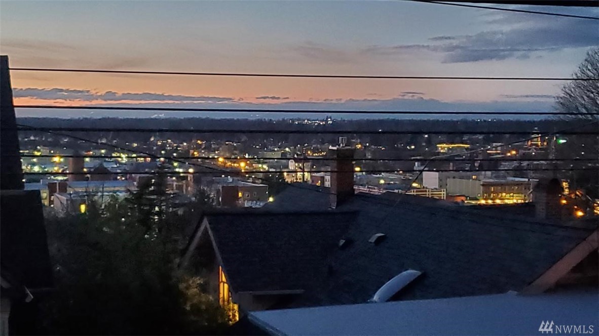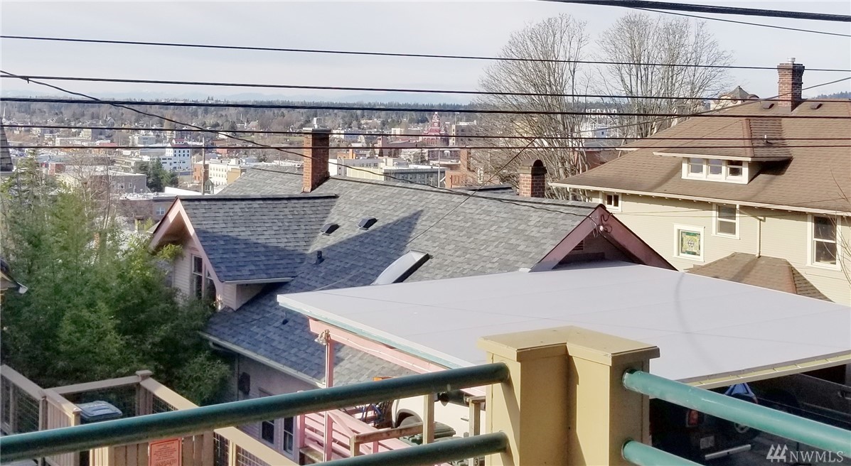 Views of City and Bay. Condo living without the maintenance list. 2 bedrooms with two full baths. Masterbedroom has adjoining deck and generous walk thru closet. Perfectly sized den/office with ample room for serious work or hobby. Radiant heat for low dust comfort. Two offstreet parking spaces, secured garage with bonus storage over 8X9 with 8ft+ ceiling. Open kitchen filled with cabinets. Livingroom has plenty of space to entertain or just relax. Large covered deck. Access from street level or garage. Enjoy the vibrant offerings of Bellingham.