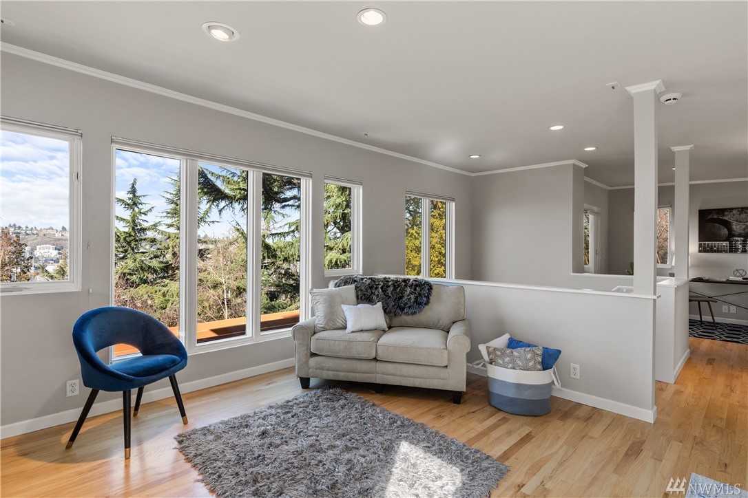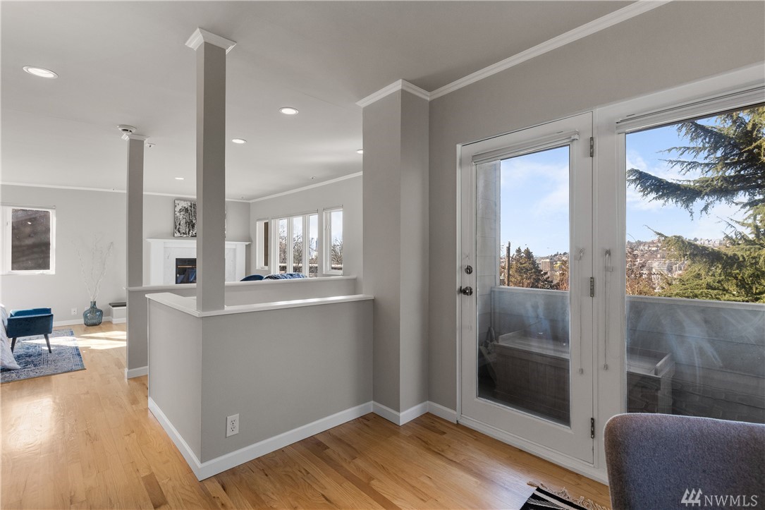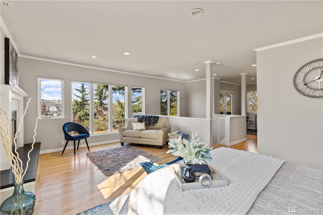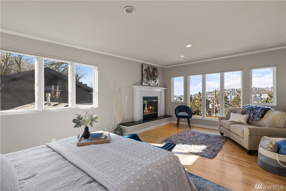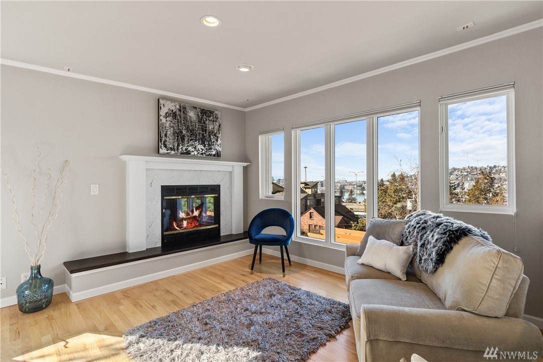 Seattle City Views! This beautifully updated 3 bed/2.75 bed home, in the heart of Seattle. Gleaming hardwood floors flow throughout. Open concept main floor boasts a West facing wall of floor to ceiling windows, providing an abundance of natural light. The updated kitchen is a chef's dream. Granite counters, Stainless steel appliances and a cozy breakfast nook. The master suite provides a fireplace, private balcony, large walk-in closet, and unbeatable views of downtown, Lake Union and the Space Needle. Private backyard with deck and patio, perfect for entertaining on beautiful summer days.
