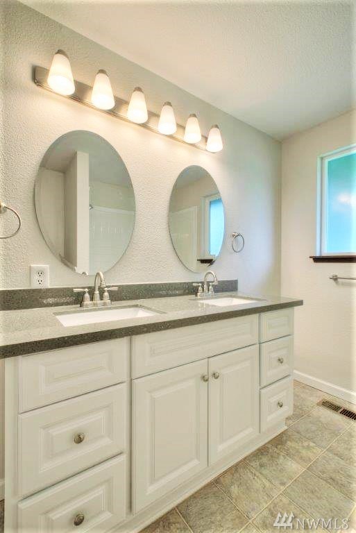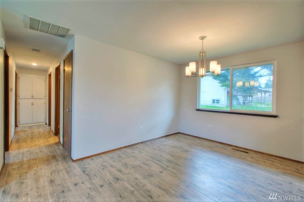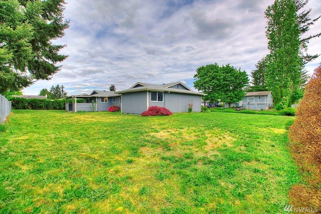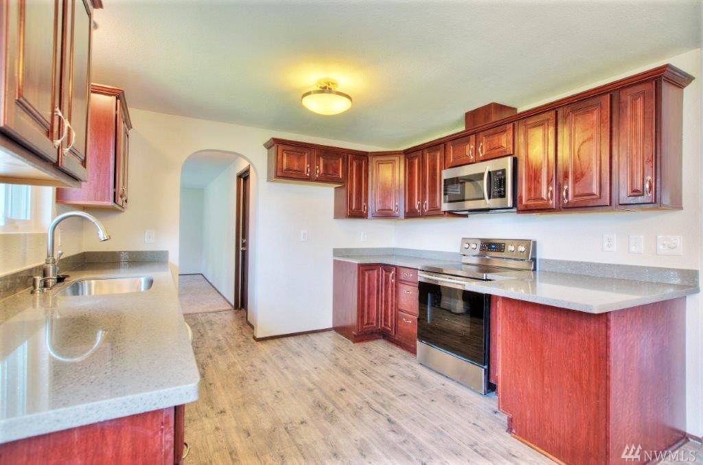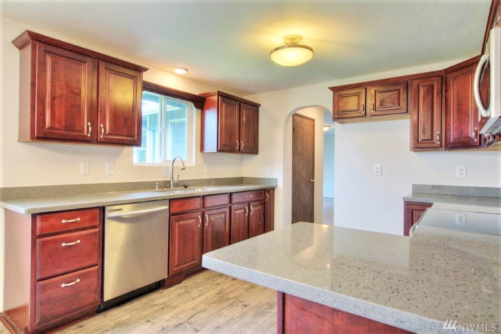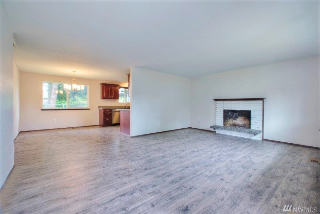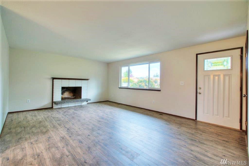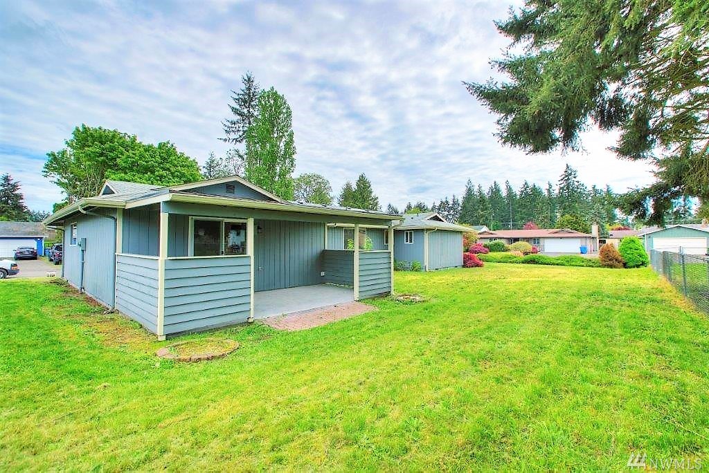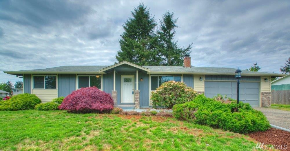 Classic to contemporary! Delightful rambler on over .24 acre boasts a fresh, new look! Easy flow floor plan, extensive hardwood-style floors, cozy frplc, big windows fill interior with light. Polished kitchen features rich cbntry, quartz countertops. Three spacious bdrms include master w/own bath; sparkling baths thruout. Living space extends to enclosed covered patio wired for hot tub for year 'round enjoyment. Expansive yard; room for RV. Close to amenities, golf course, JBLM. Ready to close!