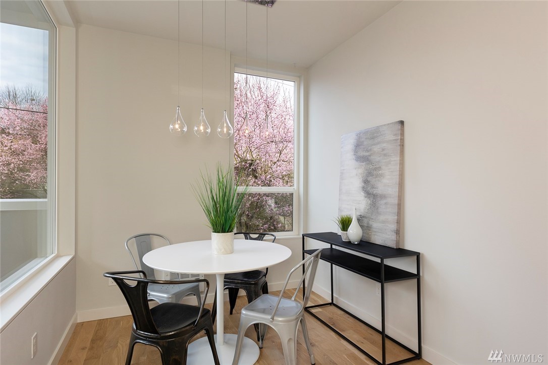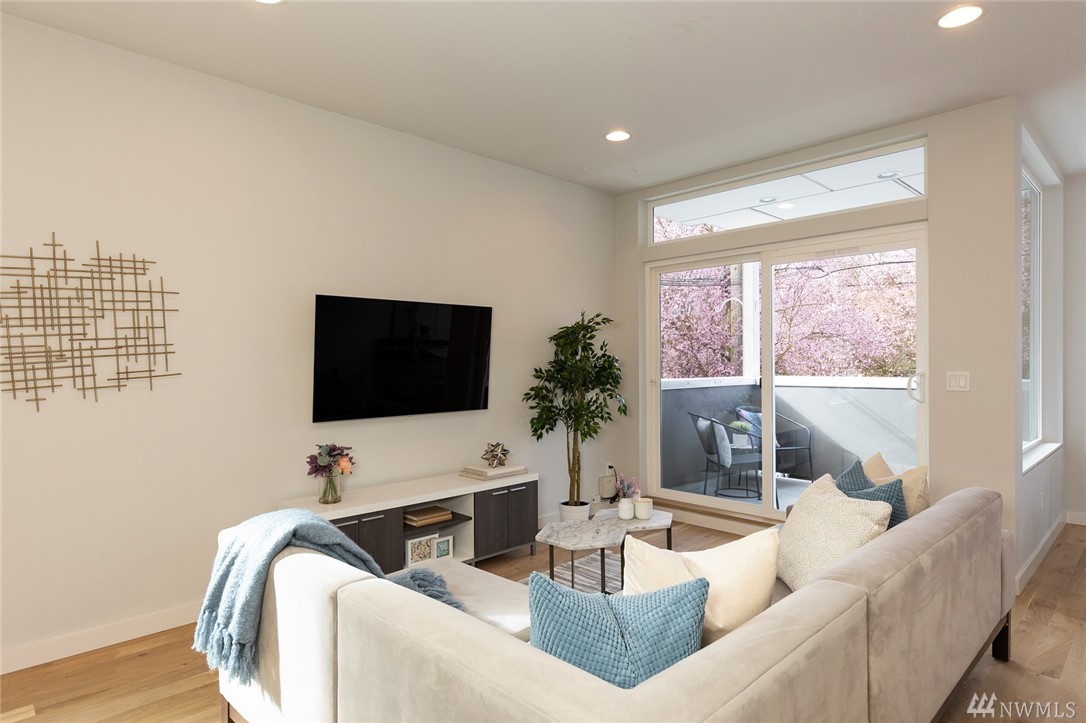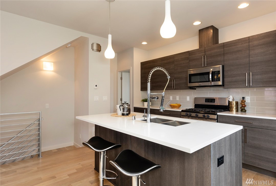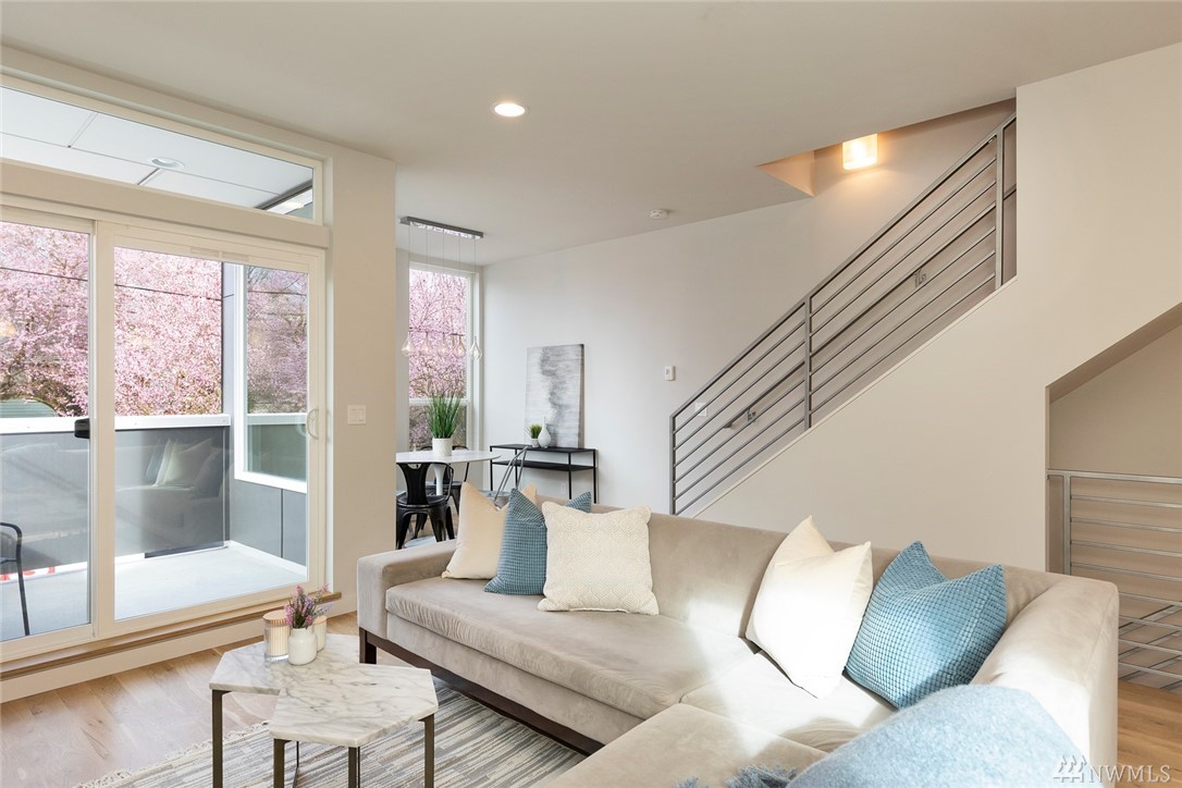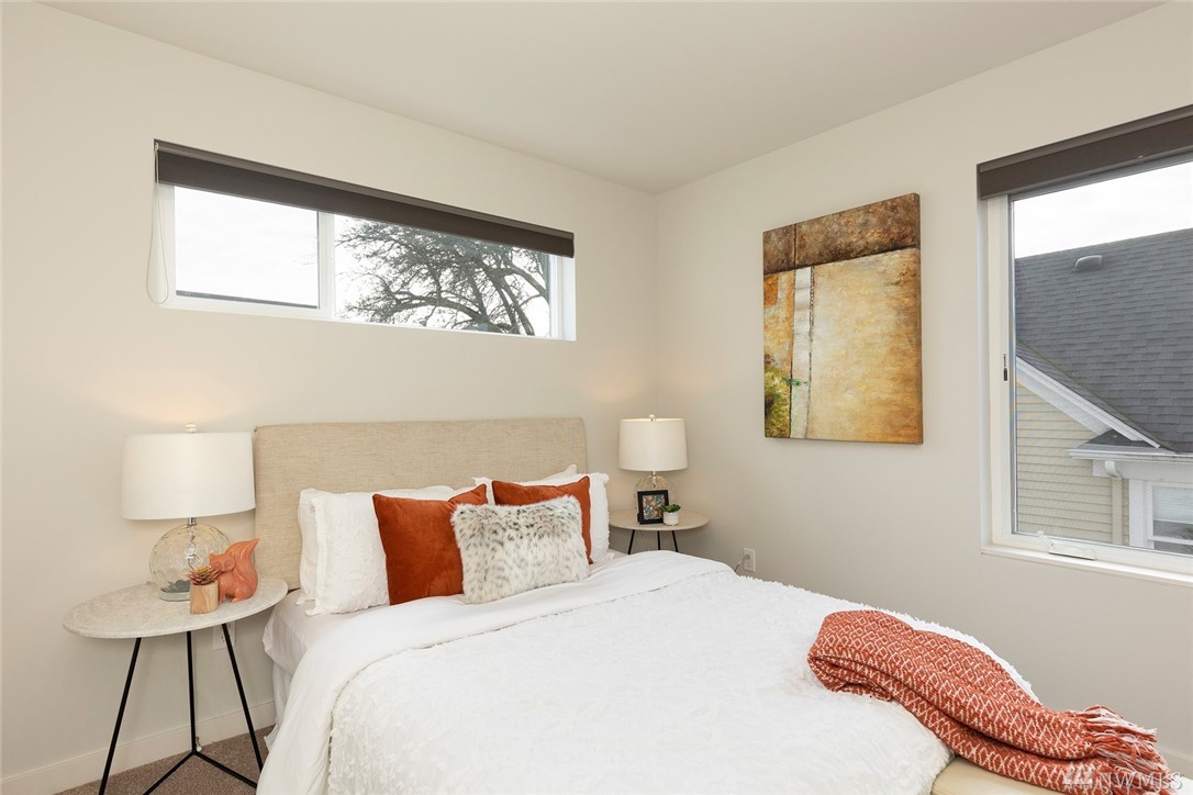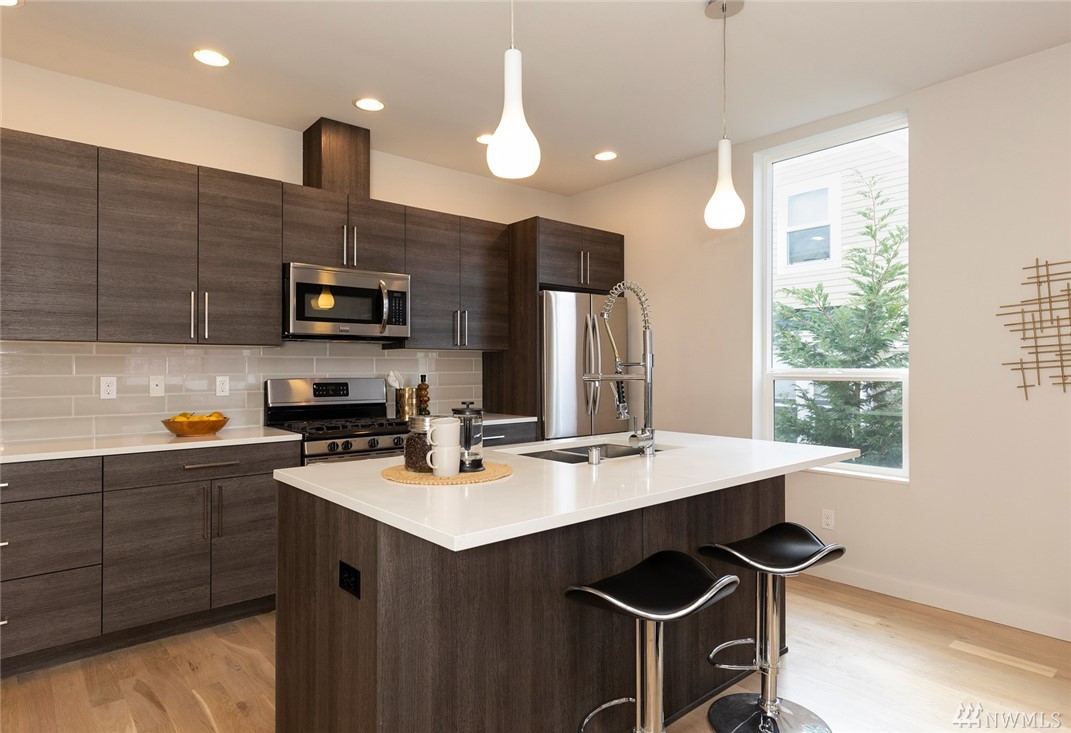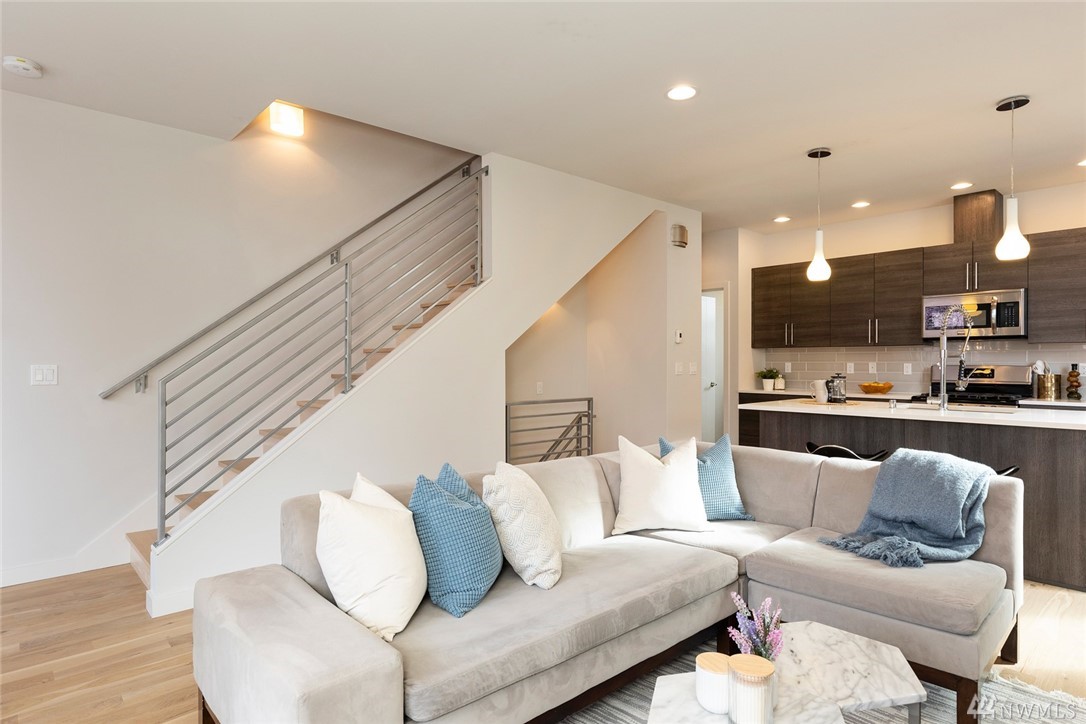 Located on a residential street just blocks from the heart of Ballard, this 4-star Built Green home offers craftsmanship and style. The main floor layout is open with abundant natural light, hardwood floors and a chef's kitchen. The primary bedroom features a walk-in closet, private deck and double-sink bathroom, with a peekaboo view of the Olympics on a clear day. The lower level bedroom is set up as an office, with a view to the treelined street. The garage includes an outlet to charge electric vehicles. With a 92 WalkScore and 95 BikeScore, you'll be close to it all.