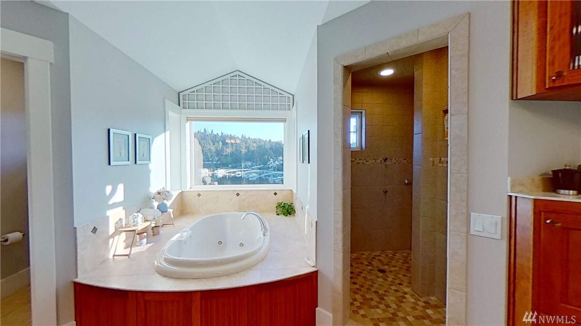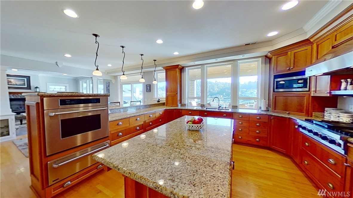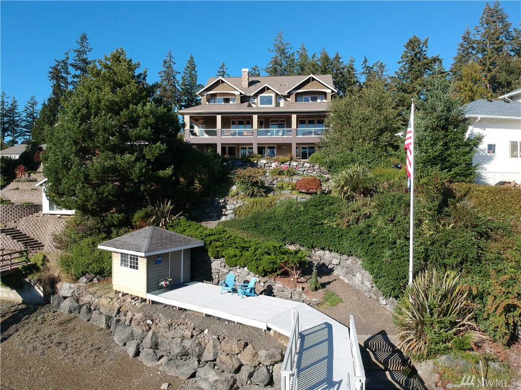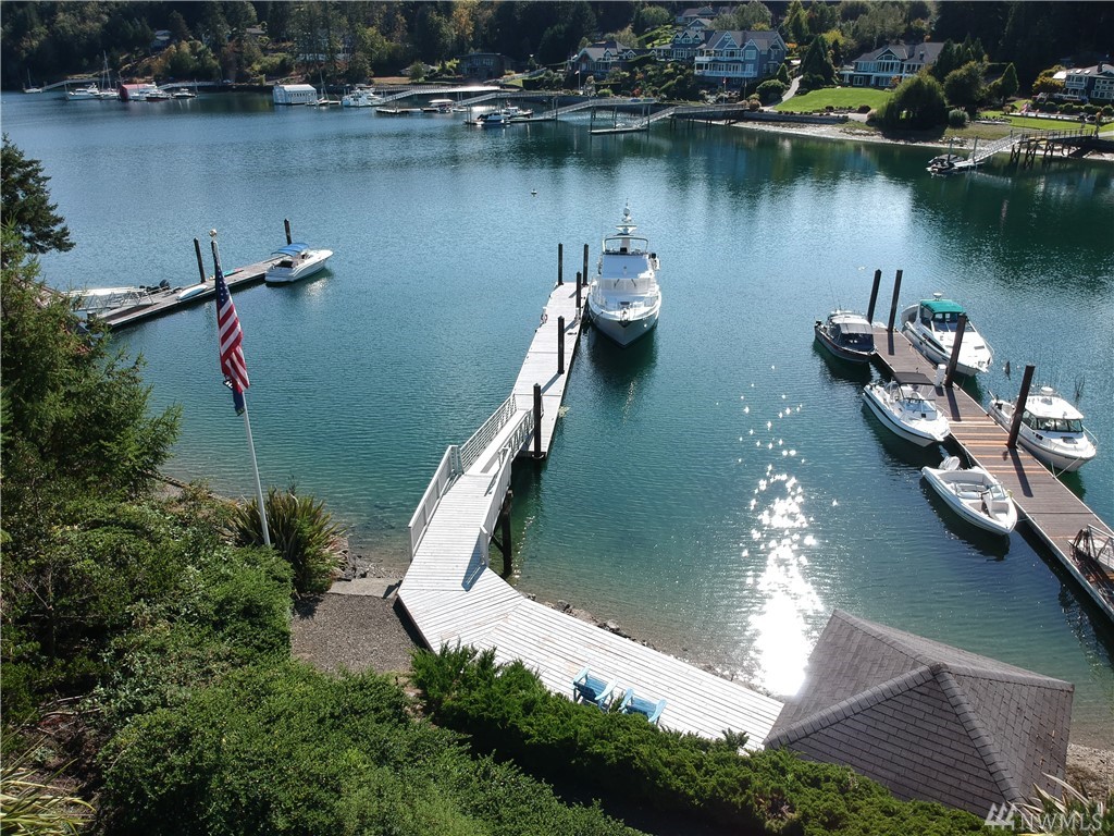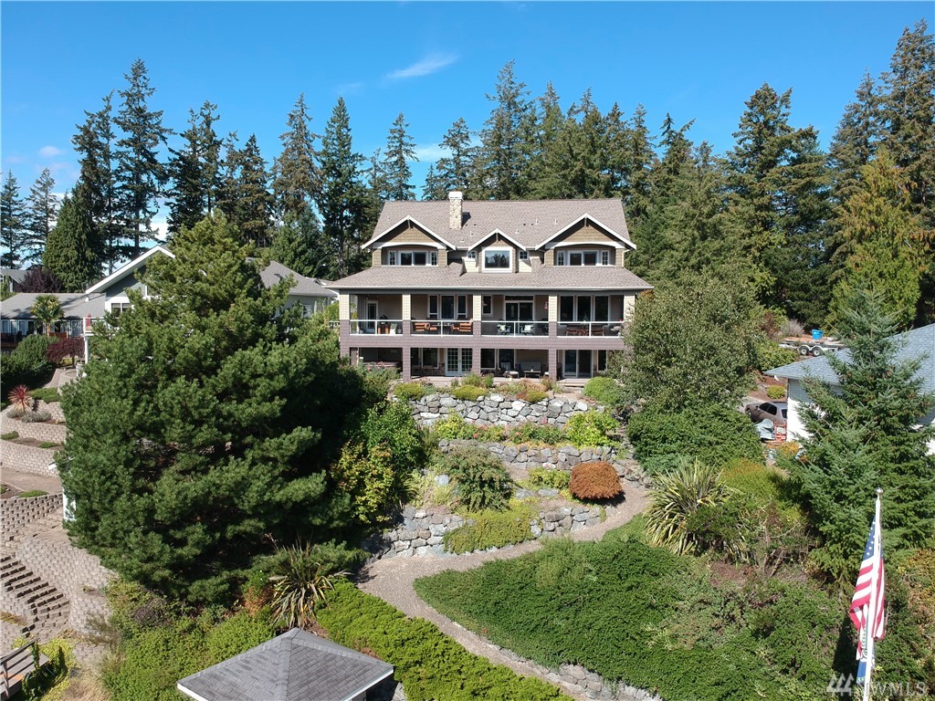 This exquisite Fox Island property is a boater’s paradise: nestled in Echo Bay w/70’ of protected waterfront & private 90’ dock w/space for all your water craft. Every day is "spa day" in the luxe master suite: 5 piece bath, jetted tub & walk-in shower; gas fireplace; beverage station; bay-view balcony & elegant dressing room. Gourmet kitchen features Cherry cabinets; granite counters & island; Viking, Sub Zero, Thermador & Bosch stainless appliances; walk-in pantry; secretary desk & butler pantry. Lower level offers billiard room, arcade area, theater, hot tub. Above-garage studio has wet bar & ¾ bath, providing multi-generational flex space. 3-car garage includes shop space, professional-grade benches & cabinets & EV charging station.