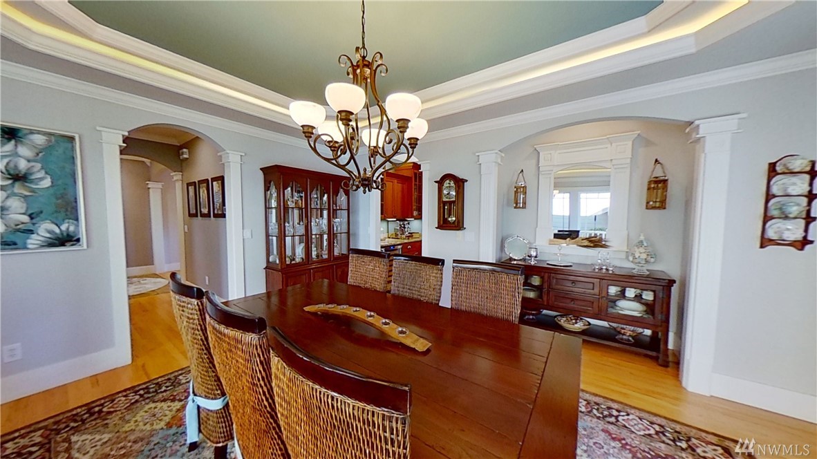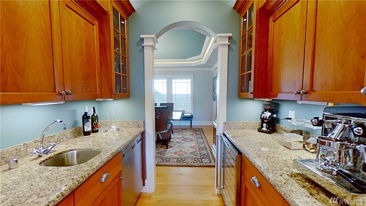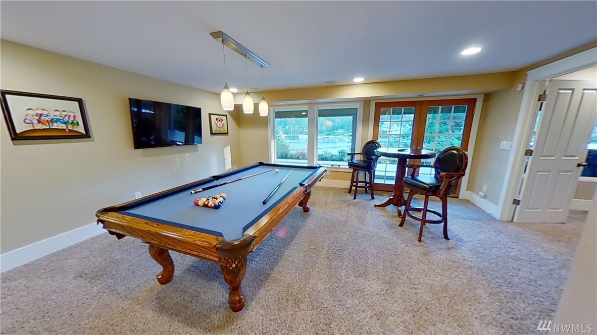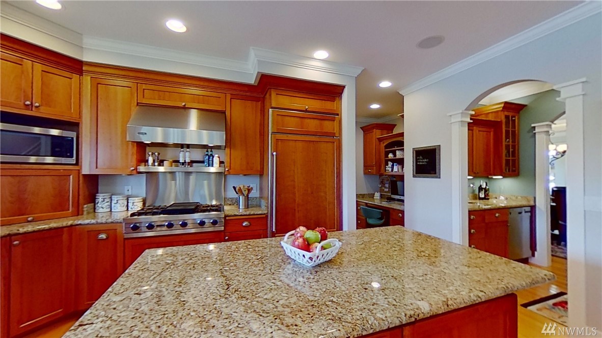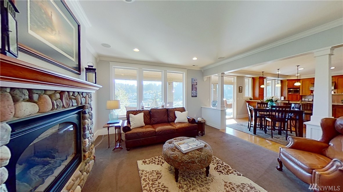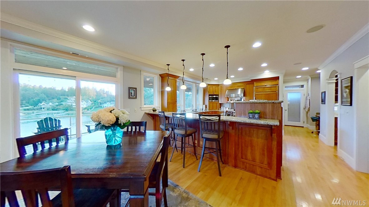 This exquisite Fox Island property is a boater’s paradise: nestled in Echo Bay w/70’ of protected waterfront & private 90’ dock w/space for all your water craft. Every day is "spa day" in the luxe master suite: 5 piece bath, jetted tub & walk-in shower; gas fireplace; beverage station; bay-view balcony & elegant dressing room. Gourmet kitchen features Cherry cabinets; granite counters & island; Viking, Sub Zero, Thermador & Bosch stainless appliances; walk-in pantry; secretary desk & butler pantry. Lower level offers billiard room, arcade area, theater, hot tub. Above-garage studio has wet bar & ¾ bath, providing multi-generational flex space. 3-car garage includes shop space, professional-grade benches & cabinets & EV charging station.