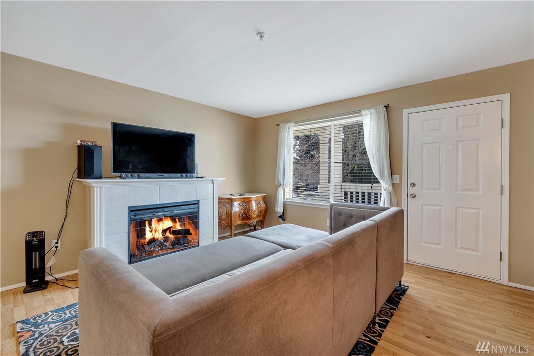 A great opportunity to own instead of renting. Spacious end-unit townhome, light-filled living space with nice cozy fireplace, open kitchen, granite countertops, and stainless steel appliances included. 2 bedrooms, shared bathroom on the upper level, 3rd bdrm on lower level is perfect for guests, full bathroom with full-size washer & Dryer. Single car garage with opener with storage space. Enjoy the sunsets on the inviting covered front porch!