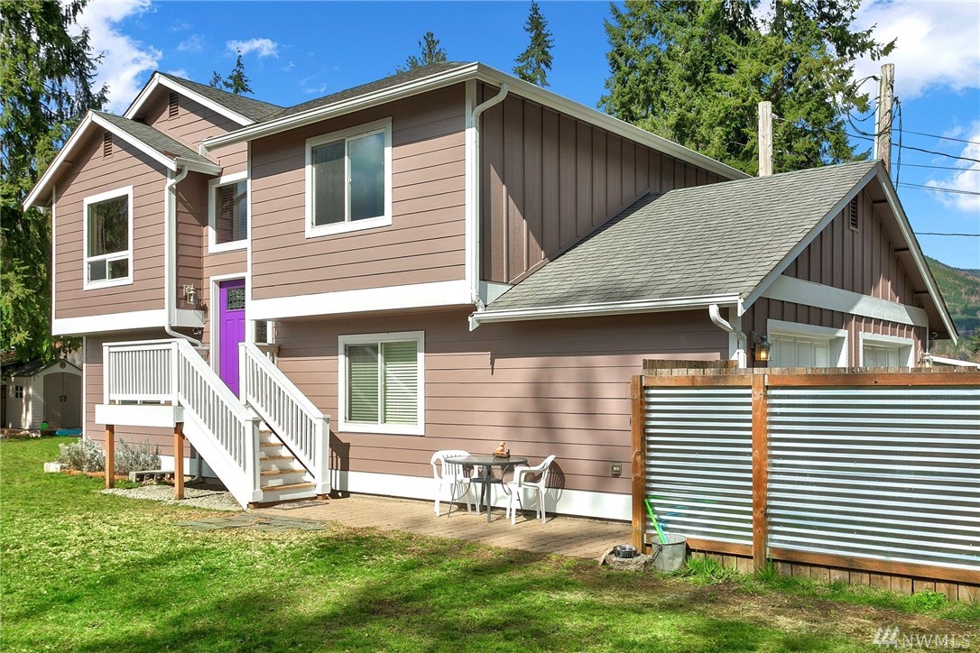 “This Attractive Well-Maintained Home is Move In Ready” w/3-bedroom, 1.75 bath, split entry home upstairs w/Open Living rm, Large Kitchen w/Dining area, enjoy natural lighting from large windows. Upstairs master w/ shared bath, 2nd Bedroom/Den. Lower-level Family room,3rd bedroom,¾ bath w/Laundry room & storage, door to 2 car garage w/storage & work area w/room for toys & street parking. Enjoy your Privacy in your fully fenced yard w/fire pit & freshly painted exterior. HOA includes Water, Clubhouse, pool, park area and more.(Park closed for renovations)This Home is just off the Mountain Loop Hwy, and the Gateway to the Cascades. Close to camping, fishing, hiking and more. Just minutes from shops and restaurants in downtown Granite Falls.